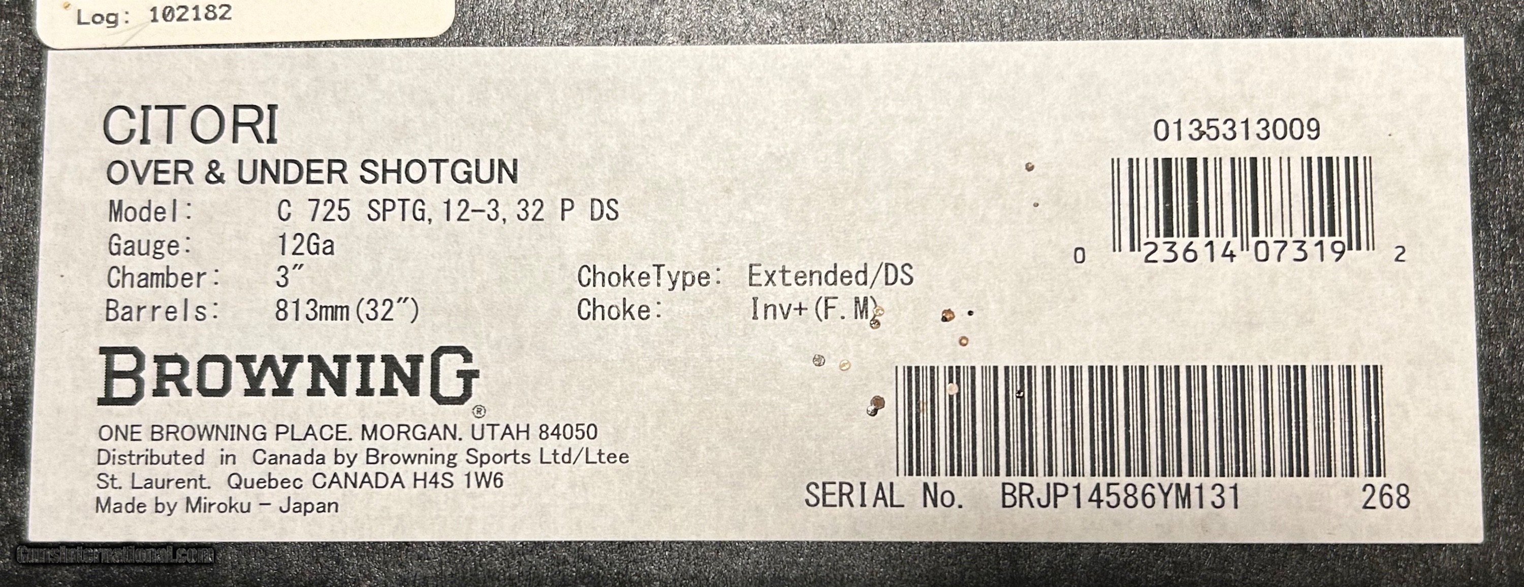 Description: Gently used two year old Browning 725 12 gauge, 32" barrels with a set of 5 Invector-DS extended chokes. Grade III/IV Walnut stock, ported barrels, triple trigger system with 3 trigger shoes. Weight 7lb 10oz. & 3" chambers. Well cared for shotgun in excellent condition comes in the original box with all included accessories (see photos) Buyer pays actual shipping costs. Will ship from FFL to your FFL. Will entertain offers. SOLD SOLD Shotgun Gauge: 12 Gauge Manufacturer: Browning Model: Citori 725 Barrel Length: 32” Bore: 12 Chambers: 3” Condition: Excellent |