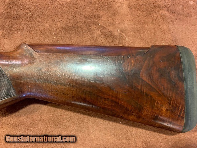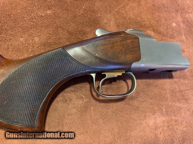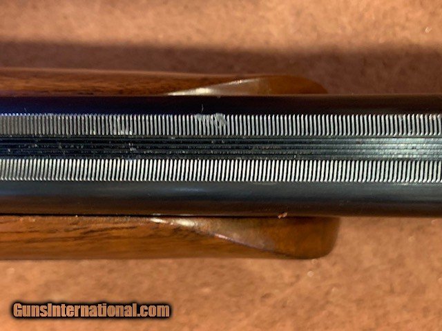 Description: Browning Citori 725 Sporting 12g 30" Good condition SN- 13443ZV131 7 3/4 lbs Aftermarket adjustable comb Comb 1 5/8" Heel 2 1/4" LOP 15" Cast 0 Ejectors Manual safety 30" bbls w/F M IC chokes Single adjustable trigger 3" chambers A solid sporting gun with plenty of life left, but certainly shot a good deal. Thoroughly cleaned and inspected by the Orvis Gunsmith. Stock is worn with nicks and bumps, but finish is good. Top rib is nicked up with a VERY slight dent close to the action. Ejectors were filed at some point- fully functioning with no issues closing. All blemishes and mentioned issues are captured in the photos. This would make a durable entry level sporting gun for the new shooter or as a loaner. Please call or email for additional informaton and photos. SOLD |