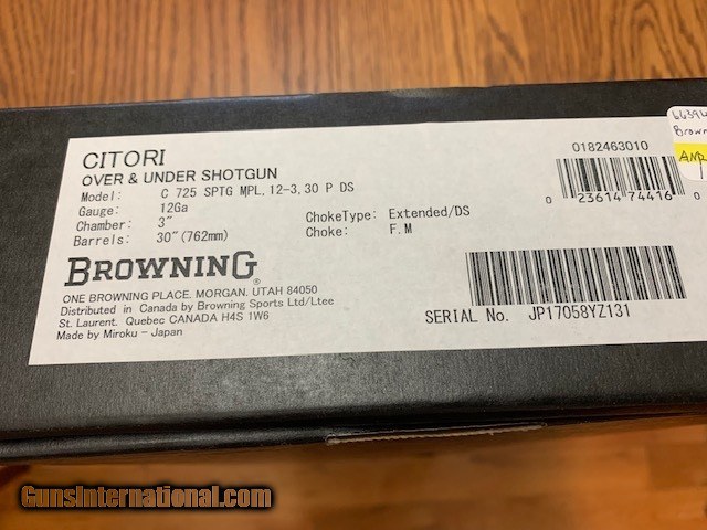 BROWNING CITORI 725 SPORTING MAPLE 12 GA. 30” BARRELS WITH EXTENDED CHOKE TUBES