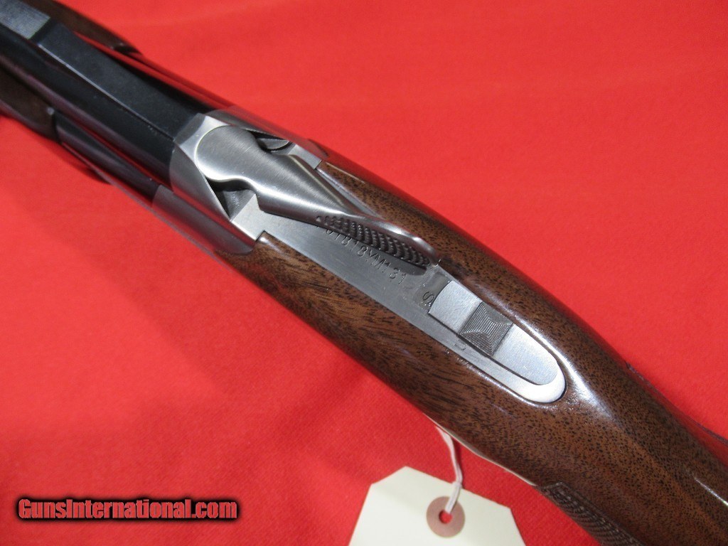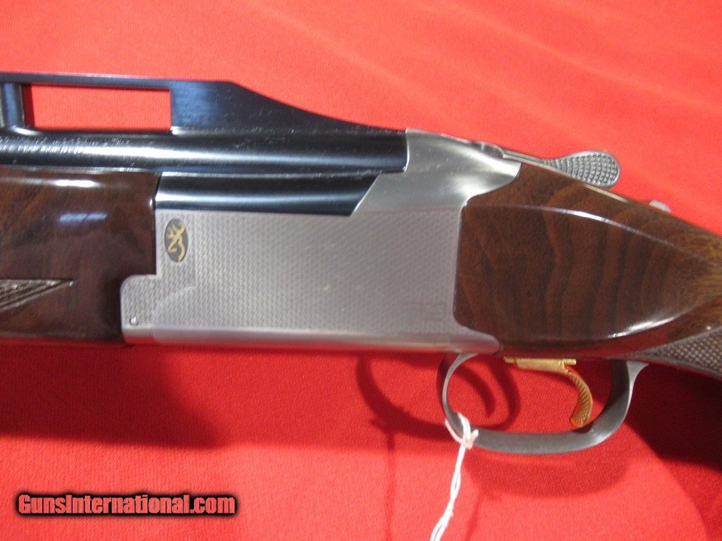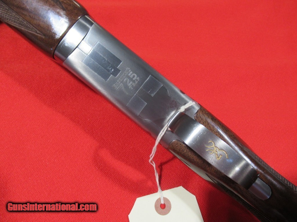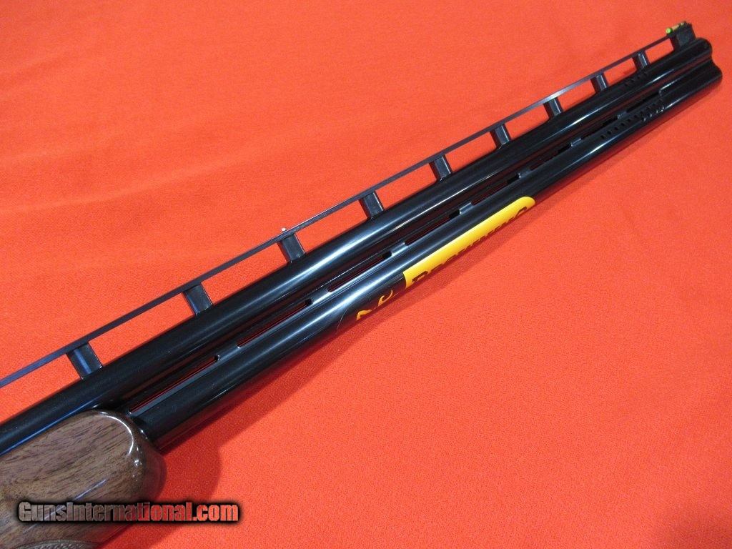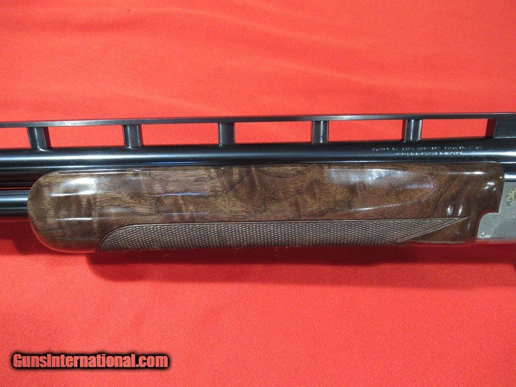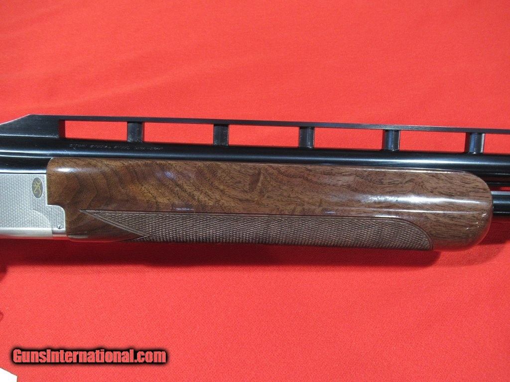 Description: 725 Trap from Browning. It has a slim profile stainless receiver with a silver nitride finish and highlighted with gold accents, vent rib, ported, mechanical triggers, grade III/IV gloss finished wood with adjustable comb, Hi-Vis competition sights, Vector Pro forcing cones, Invectos DS choke tubes and many more features. SOLD |