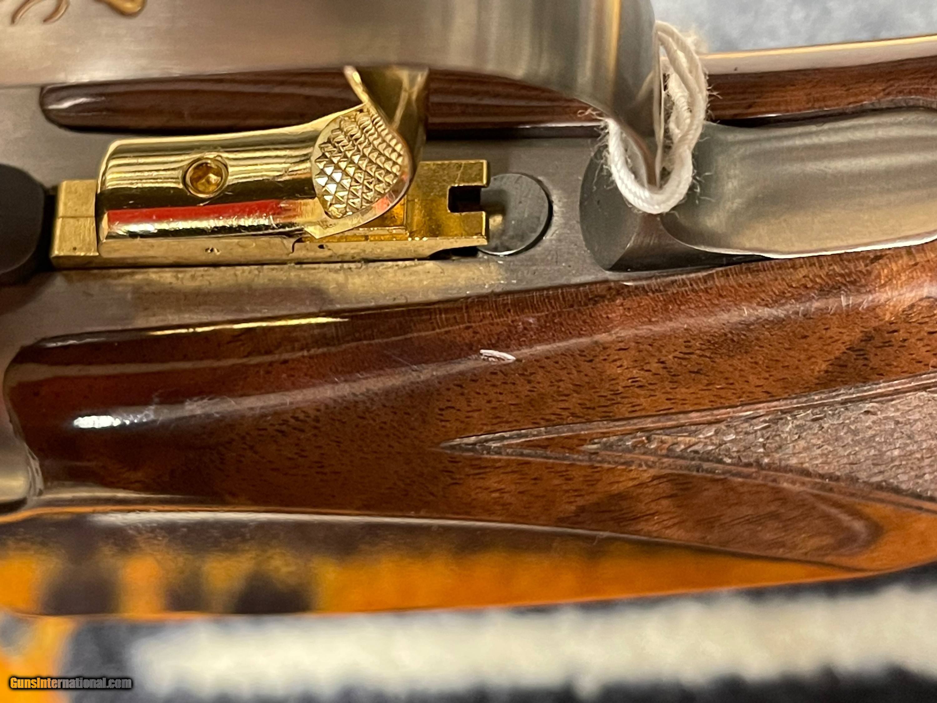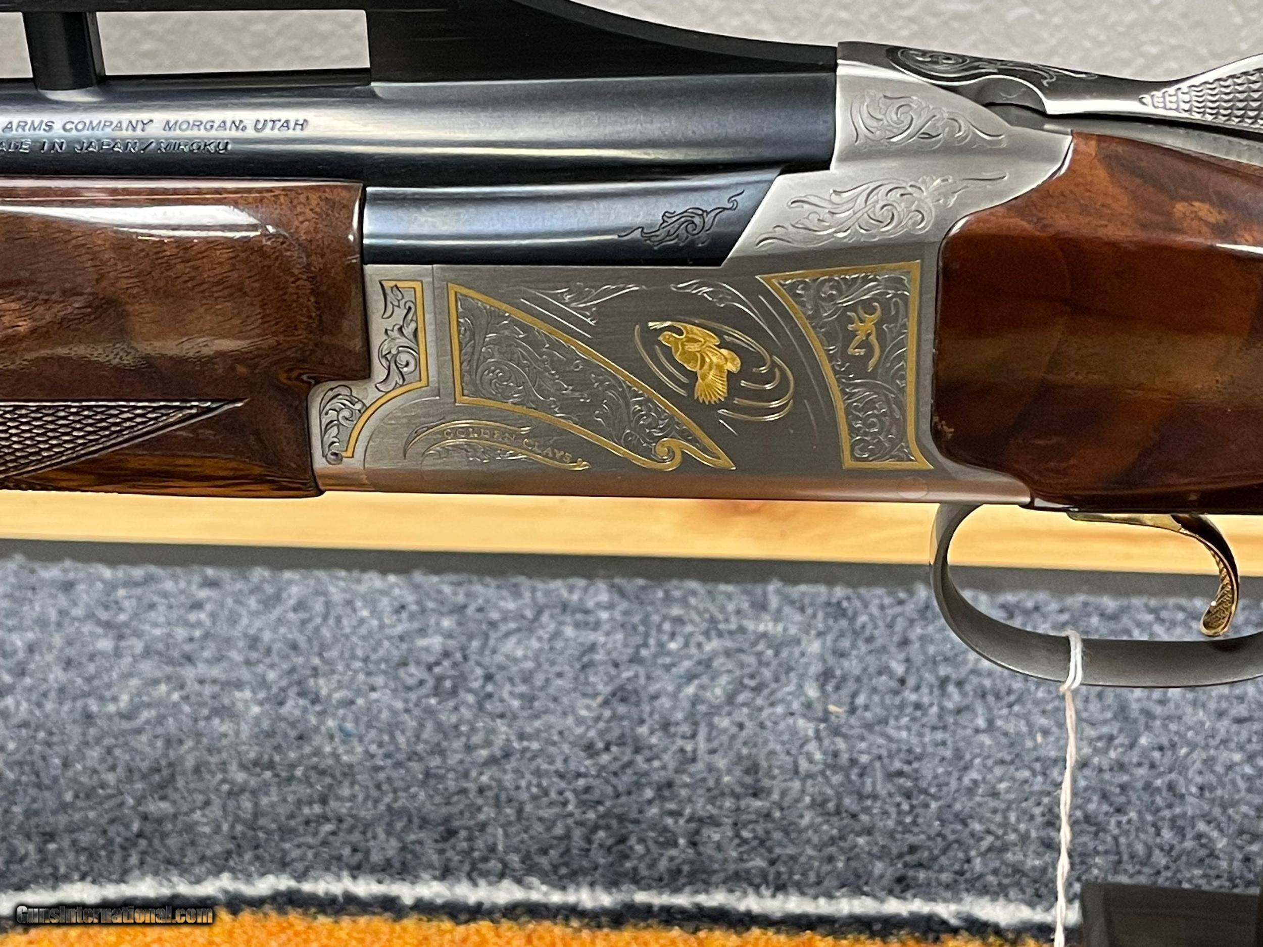Description: SOLD!!! This gun has less than 200 rounds thru it! In our opinion, you will not find a better value for such an impressive competition Trap shotgun... This Browning Citori 725 Trap Golden Clays just arrived on consignment from one of our best customers and it is in excellent condition. Purchased new in 2022! Only one very minor handling mark on the bottom of the pistol grip near the trigger guard (shown in pictures). The MSRP on these is $6,429.99... Our price on this like new 99% Golden Clays is $5,500.00 Overview Beautiful and full featured, the Citori 725 Trap Golden Clays offers demanding shooters a shotgun to satisfy both their need for performance and elegance. This model takes all the advantages that have made the Citori a key player at every trap shoot in the world, and combines it with the low profile "one with the gun" feel of the low-profile Citori 725 action. The steel receiver of the Citori 725 is a triumph of modern design, keeping the full-width hinge pin and tapered locking bolt design that makes a Citori superior to weaker trunnion designs without sacrificing traditional strength. The vertical grip makes it easy to achieve a consistent finger to trigger reach. Invector-DS choke tubes are longer than traditional chokes, allowing for a consistent barrel taper at the muzzle. The double seal keeps fouling gases out of the threads between the choke tube and the barrel. HiViz Pro-Comp fiber-optic front sight and ivory mid-bead sight for excellent target acquisition even in low-light conditions. The combination of the GraCoil Recoil Reduction System and Graco Adjustable comb and butt plate allow you to fine-tune the fit of the gun to meet your unique needs. Citori 725 Trap Exclusive Features