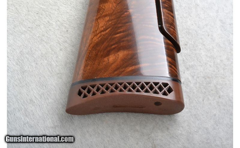 Description: This Browning Model Citori 725 Trap is a left hand Over & Under 12 Gauge shotgun. It has 32 inch ported ventilated rib barrels with ejectors and a high post top rib. With 2 3/4 inch chambers it has Invector DS Chokes. Along with a SST it comes with two extra interchangeable triggers. The butt stock is a checkered grip walnut pistol grip with an adjustable comb and left hand palm swell. The forearm is a checkered grip walnut with finger grooves. The stainless steel receiver sides are engraved. 12 Gauge SOLD Chambers: 2 3/4 inch. Metal Condition: Excellent. Wood Condition: Excellent. A few minor handling marks. Bore Condition: Bright and shiny. Barrels: 32 inch ported ventilated rib barrels with a high post top rib. Triggers: SST. Adjustable. Comes with 2 extra interchangeable triggers.. Stock Dimensions: LOP 14 3/8 inches. DAC is adjustable and at 1 3/8 inch. DAH 1 7/8 inch. Fore End: Checkered grip walnut pistol grip with finger grooves. Butt Pad: Browning brown rubber recoil pad. Weight: 8 lb. 12 oz. Sights: Front tube sight with interchangeable tubes. White bead middle Sight. Chokes: "Invector DS Choke. Comes with F, IM & M choke tubes. Item Location: Richfield, WI |