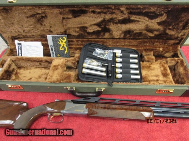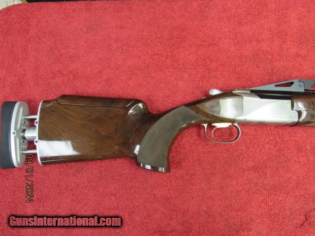 Description: Guns Listing ID: 1391348 PRE OWNED ONCE FIRED- EXCELLENT CONDITION INCLUDES ALL FACTORY ACCESSORIES AND CABELAS HARD CASE BROWNING CITIORI 725 TRAP MAX OVER UNDER SHOTGUN Citori 725 Trap Max Exclusive Features Graco adjustable Monte Carlo comb makes it easy to dial-in bead alignment Adjustable GraCoil® Recoil Reduction System increases shooting comfort and offers length of pull adjustment Graco butt pad plate adjusts for angle and location Adjustable rib offers POI adjustment from 50/50 to 90/10 Semi-beavertail forearm with finger grooves Gloss finish Grade V/VI walnut stock with vertical grip and palm swell Pachmayr® Decelerator® XLT recoil pad Triple Trigger System with three trigger shoes HiViz® Pro Comp sight and ivory mid-bead Five extended Invector-DS choke tubes Item Number 0181624010 UPC 023614736639 Gauge 12 Chamber Length 2 3/4\" Barrel Length 30\" Overall Length 47 3/4\" Length of Pull 14 3/8\" Adj Drop at Comb 1 13/16\" Adj Drop at Heel 2 3/16\" Adj Weight 9 lbs 0 oz Rib Width 5/16 - 7/16\" Barrel Finish Polished Blued Stock Finish Gloss Oil Wood Grade Grade V/VI Chokes Included Full, Light Full, Modified, Two Improved Modified Receiver Finish Silver Nitride Chamber Finish Chrome Plated Chamber Front Sight HiViz Pro-Comp Choke System Invector-DS Extended Barrel Material Steel Stock Material Black Walnut Recoil Pad Pachmayr XLT Trap Checkering Cut 20 LPI Sling Swivel Studs None Receiver Material Steel Trigger Finish Gold Plated Trigger Guard Finish Silver Nitride Trigger Material Alloy Trigger Guard Material Steel Trigger Guard Engraving Buck Mark in Gold Choke Wrench Included T-Wrench SOLD Manufacturer: BROWNING Model: CITORI 725 TRAP MAX Condition: Used - Non-Certified Barrels: 30 BARREL Gauge Info: 12 GA Finish: SILVER AND BLACK |