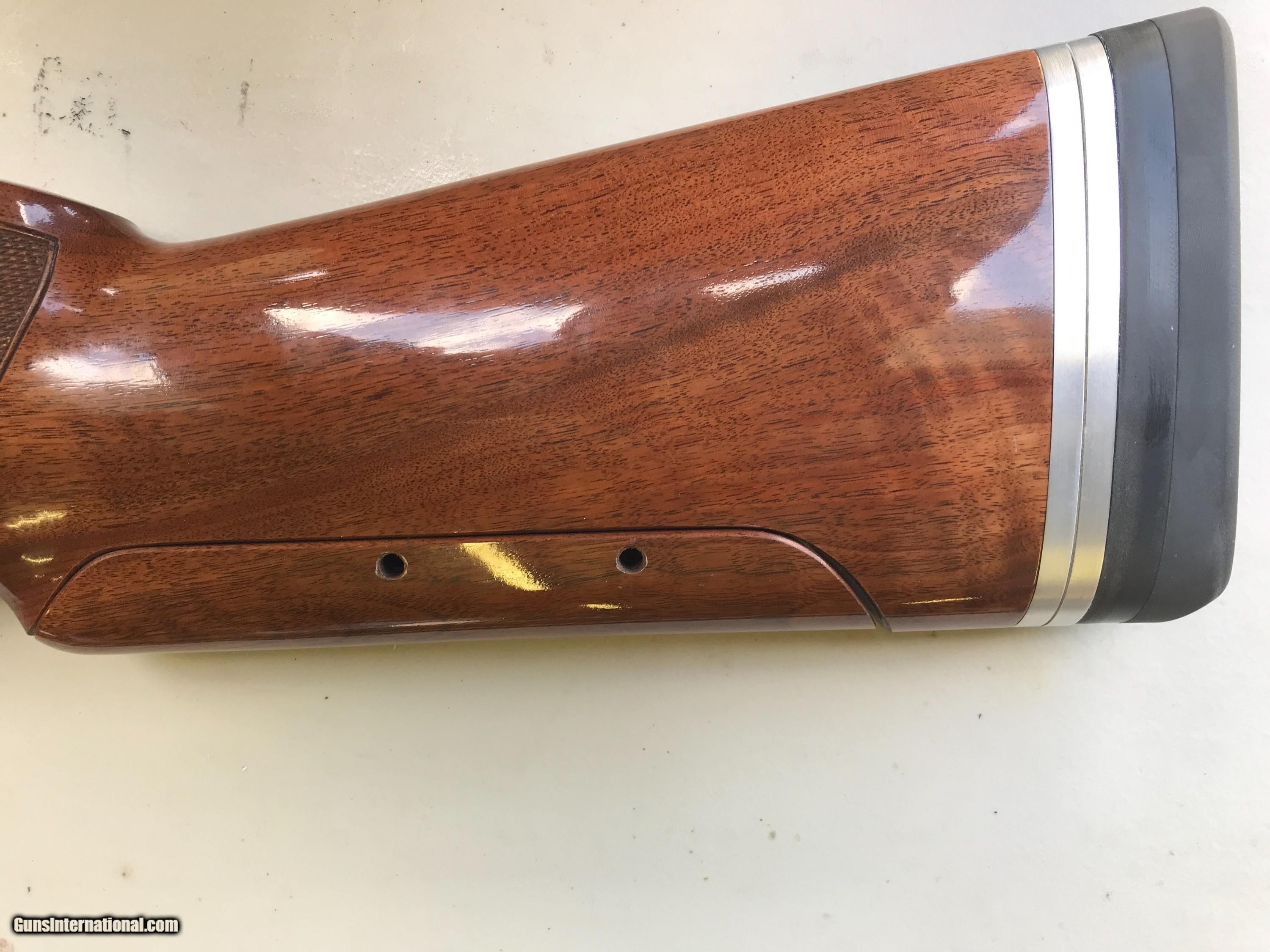 Description: Citori CX 30” barrels. Adjustable comb and butt plate installed by gunfitter Tod Nelson. LOP 15". Comes with 6 Midas chokes and choke tube case, extra trigger shoe. Used one year shooting sporting clays. SOLD Shotgun Gauge: 12 Gauge Manufacturer: Browning Model: Citori CX Barrel Length: 30” Condition: Pristine Metal Condition: Some blueing wear on forend latch Wood Condition: As new with very slight handling marks Bore Condition: Perfect LOP: 15” |