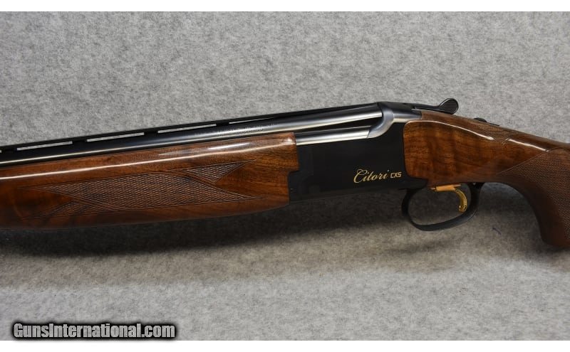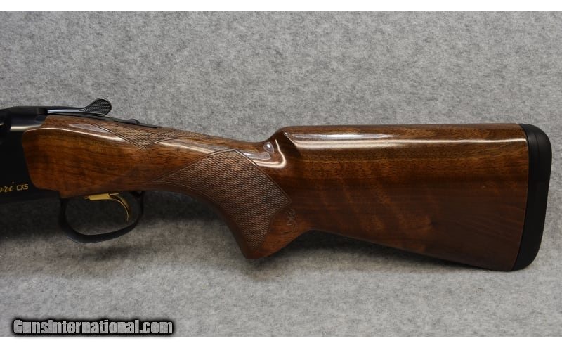 Description: This Browning Citori CXS 12 gauge is in outstanding condition. Made in Japan, there are no scratches or marks on this gun. It comes with an extra improved cylinder choke tube, manual, and factory box. Very nice looking gun at a fair price. 12 Gauge SOLD Chambers: 12 gauge Over/Under with 2 3/4" or 3" shell Metal Condition: Very Good Wood Condition: Very Good Bore Condition: Very good Barrels: 26" with ventilated Rib Triggers: LOP 13 1/4 Fore End: Wood Butt Pad: Rubber Weight: 7 Sights: Middle and Front Bead Chokes: Full and Modified Item Location: Kansas City, KS |