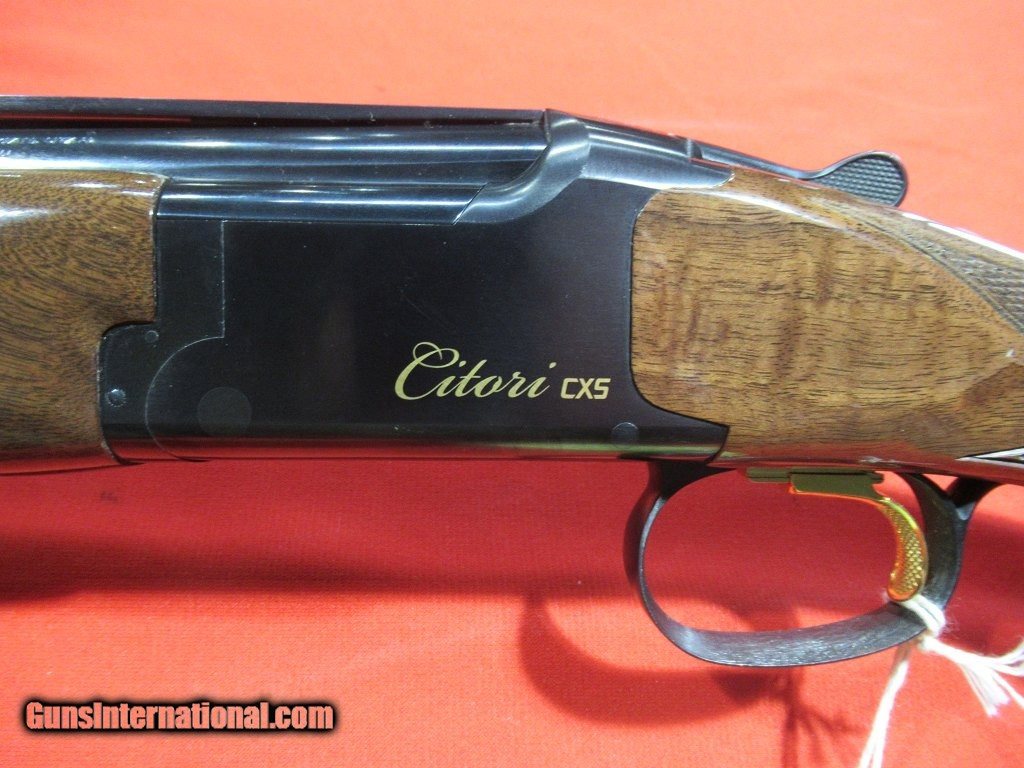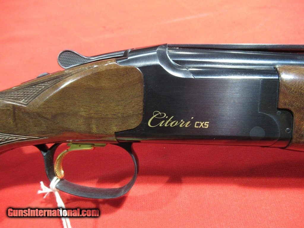 Description: Browning Citori CXS 20ga/30" INV PLUS -- The Citori CXS features a high polished blue receiver with "Citori CXS" in gold, flat vent rib designed to shoot a 50/50 POI, vented side ribs, none ported barrels threaded for Invector Plus choke tubes (extended Midas grade IC, Mod, and Full included), high gloss finish grade II American walnut stock and schnable forend, selective manual safety, Inflex recoil pad. Excellent condition overall having been well cared for by the original owner. Includes TWO additional Briley SKEET choke tubes. SOLD |