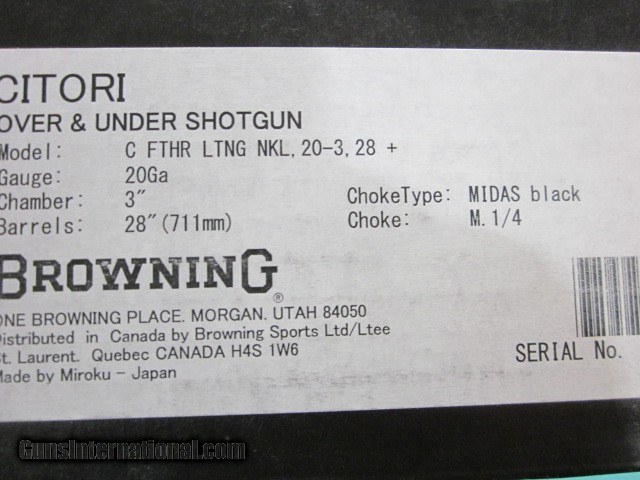 Browning Citori Feather Lightning 20ga. 28" 2019 Shot show NIB