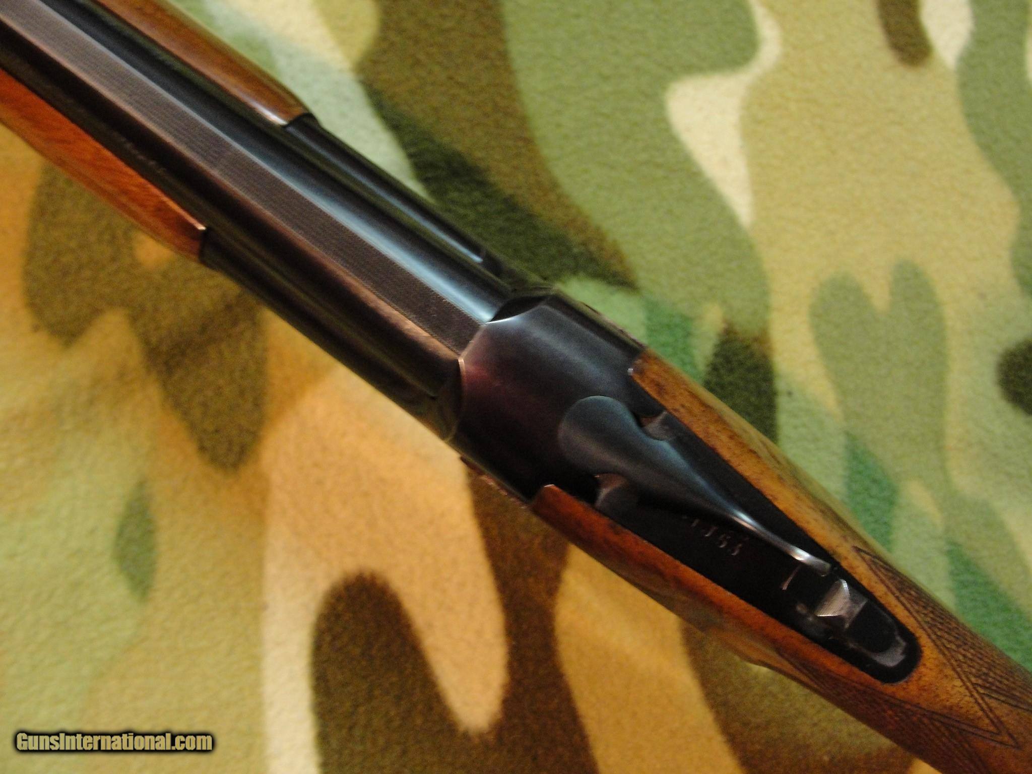 Description: *SOLD* Very nice Field Grade Citori with LOTS of life ahead of it. Super solid gun, with just a bit of blue wear on the bottom of the action, mild handling marks, and thats it. Balance of factory finished are beautiful, tight lock up, well timed ejectors, single selective trigger, attractive wood front and back. 28" barrels have 3" chambers, 0.730 bores and choked 0.015 bottom and 0.045 top, MOD/FULL, with proper breech markings of * and ** to match. 14-1/8" pull over the pad, with drops of 1-1/2" and 2-3/8" at the heel. Made in 1976. Interestingly, the serial number suffix, J53, is a bit of an oddity. As we understand it, this indicates it was one of 300 Citoris ordered by Lucky's Supermarkets, parent company of GEMCO stores. AT any rate, a fine, very usable shotgun, ready for a new home, priced to move. CA sales welcome. SOLD Shotgun Gauge: 12 Gauge |