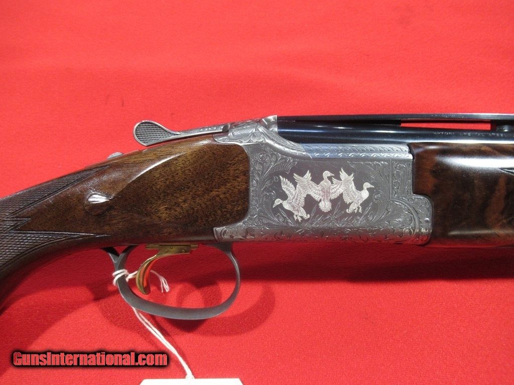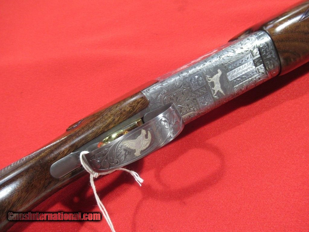 Description: Browning Citori Field/Sport Grade VII 28ga/30" Inv+ (NEW)-- Browning Citori Field/Sport Grade VII -- Extensive engraving with silver inlaid game scene engraving in scroll, Grade VI/VII walnut stock with gloss oil stock, Inflex recoil pad, triple trigger system, Hi-Viz Pro Comp sight, and five extended black Midas chokes. This is quite possibly of prettiest guns Browning has produced in years. John Browning Signature leather case included. SOLD |