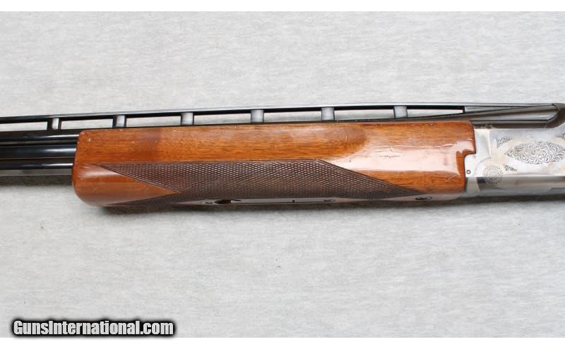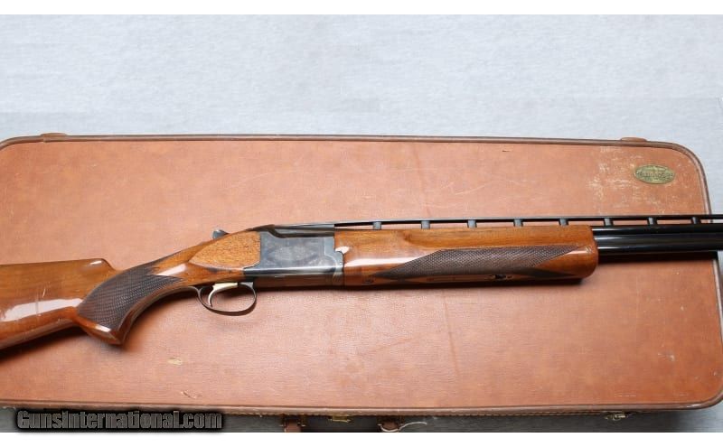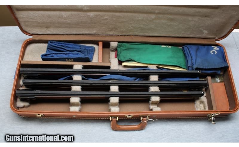Description: Browning Citori Skeet four-barrel set shotgun in 410,28, 20, and 12 Gauge. This set was made by Miroku in Japan for Browning. This set was manufactured in 1983. It is an Over/Under, Top Break Shotgun with Ejectors & Single Selective Trigger. The receiver has Grade I engraving with "BROWNING / Citori" on the bottom, a Browning Buck Mark on the trigger guard and "13050PX1B3" on the top tang. The barrel length for each barrel is 28 inches and the barrels are all choked Skeet. Each barrel set has a white bead in a base at the front of the rib with a smaller white mid-bead. The top of each rib is finely serrated in a wavy pattern to reduce glare. The stock is two-piece checkered walnut with beavertail forend, flat-bottom pistol grip, and an adjustable buttplate. The bores are bright. There is no erosion in the bores. A latch on the included case has been replaced and is not original. None SOLD Chambers: "2 1/2, 2 3/4 Metal Condition: Very Good Wood Condition: Good Bore Condition: Bright Barrels: 28 Inches Triggers: Single selectable Stock Dimensions: LOP 14 3/4 Inches Fore End: Checkered walnut Butt Pad: Adjustable Rubber Sights: White beads on ventilated rib Chokes: Skeet Item Location: Mitchell, SD |