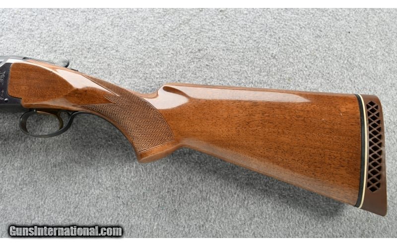 Description: Made in 1981, this Browning Citori has had good care and remains in very good condition 12 Gauge SOLD Chambers: 12 Gauge 3" chamber Metal Condition: "Very good, show very little wear Wood Condition: "Very good, with a few small field marks Bore Condition: Bright Barrels: 28" Vented Rib Auto ejectors Triggers: "Single selective at the top tang safety, inertia-driven Stock Dimensions: 14" LOP Fore End: Checkered walnut semi-beavertail with grasping grooves and Deeley style release Butt Pad: Browning vented rubber pad Weight: 8 Lbs. 2 Oz. Sights: Metallic bead front Chokes: Fixed Full and Modified Item Location: Grand Junction, CO |