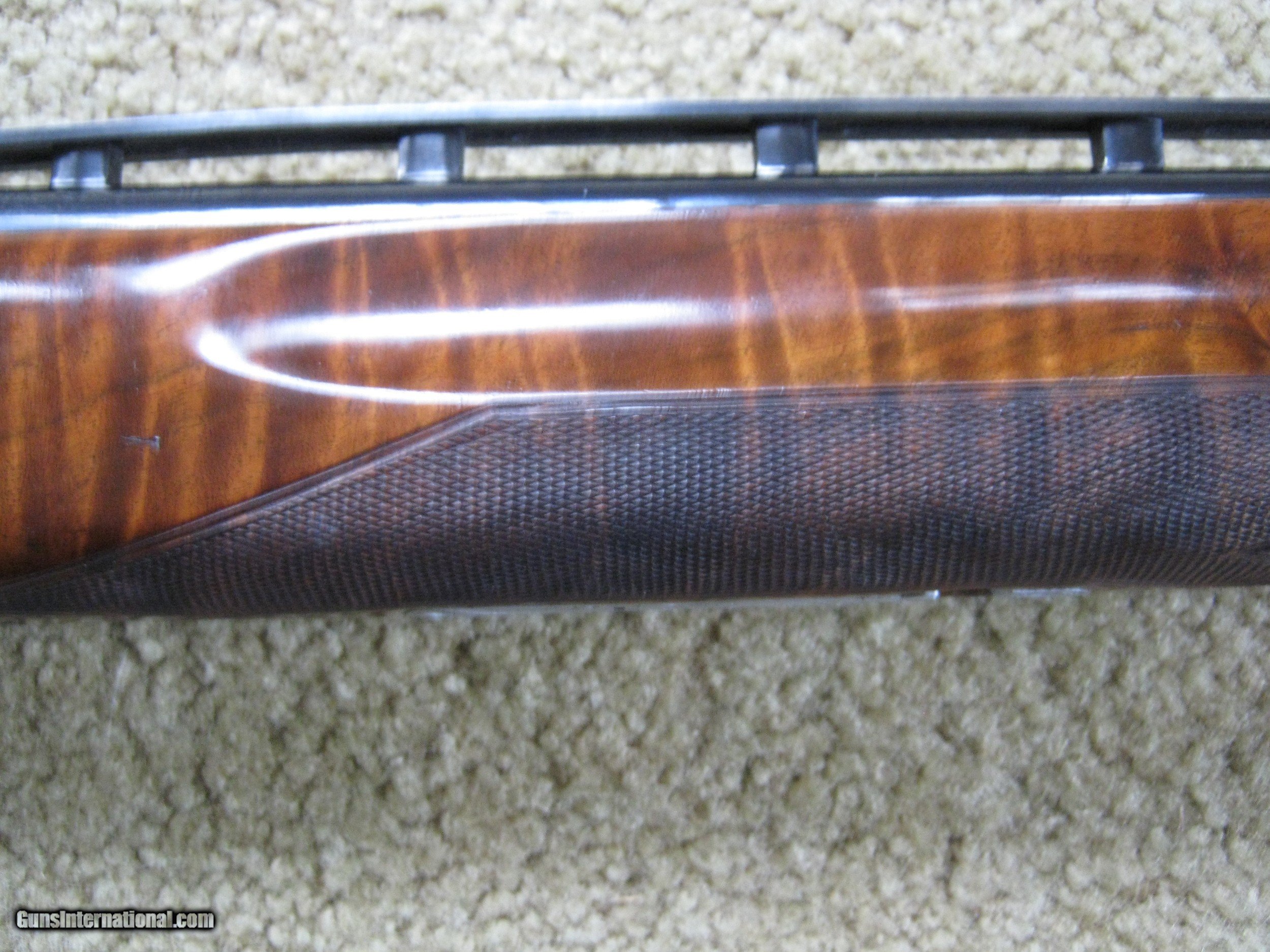 Description: TEMPORARILY OFF THE MARKET - This 1983 Citori was part of a limited run (1980 - 1984) of HAND ENGRAVED guns with deeply chisled foliate and game scenes. The engraving on these guns has been compared to that of the Browniing Superposed Diana Grade. The engraving is signed by the engraver, M. Nozaki. The gun has Grade V wood, a Monte Carlo Stock, a satin grey receiver, and 30" barrels. Included are 5 Briley screw in chokes; Full, IM, IC, and Skeet (2). The gun will work well for trap, skeet and sporting clays. Also included is Browning fitted hard case. These hand engraved Grade V guns are both functional and beautiful. SOLD Manufacturer: Browning Model: Citori Serial Number: 03278PX143 Bore: . Barrels: 30 Gauge Info: 12 ga Stock: Monte Carlo Stock Cast: None LOP: 14 3/8 Case: Browning hard case |