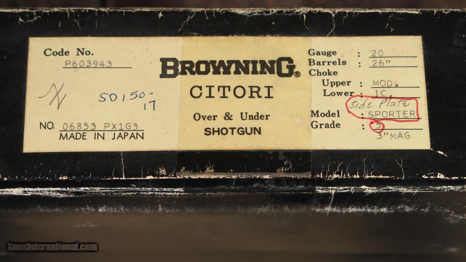 BROWNING CITORI GRADE V SIDEPLATE SPORTER 20 GAUGE