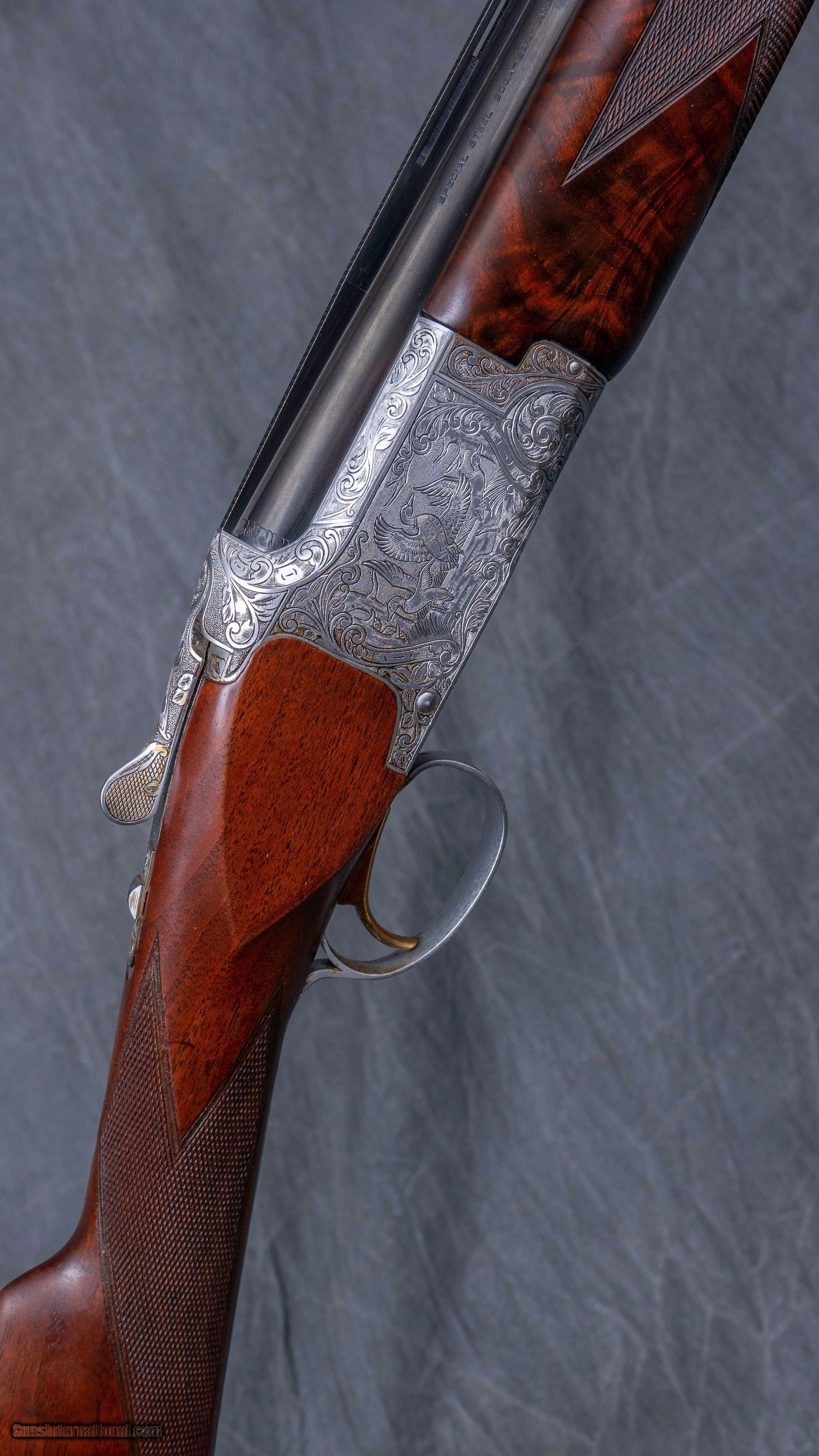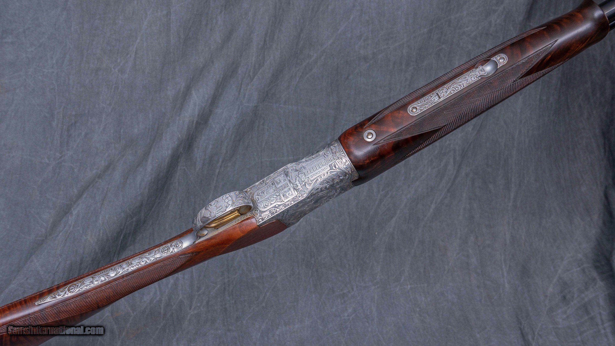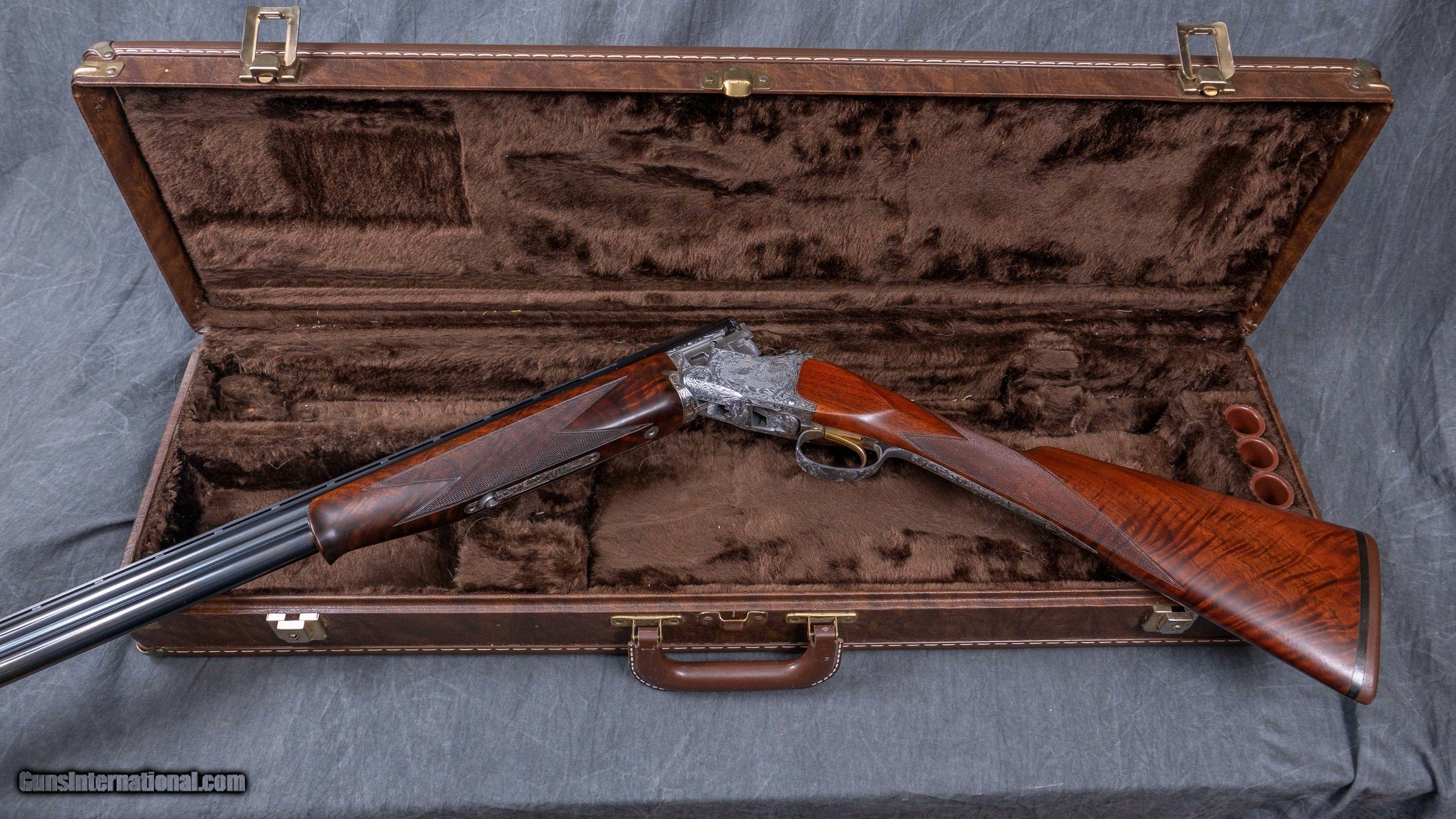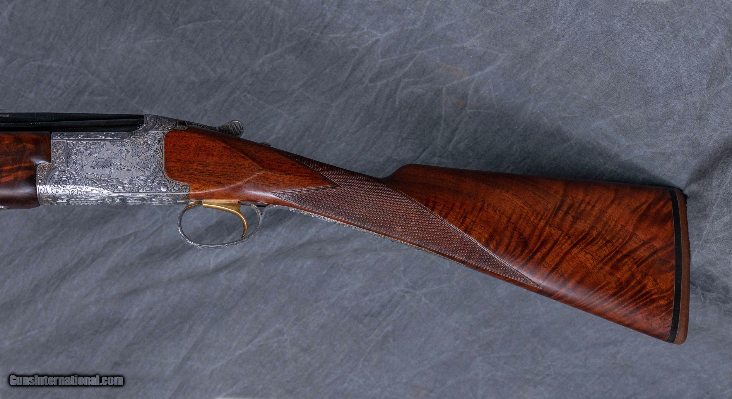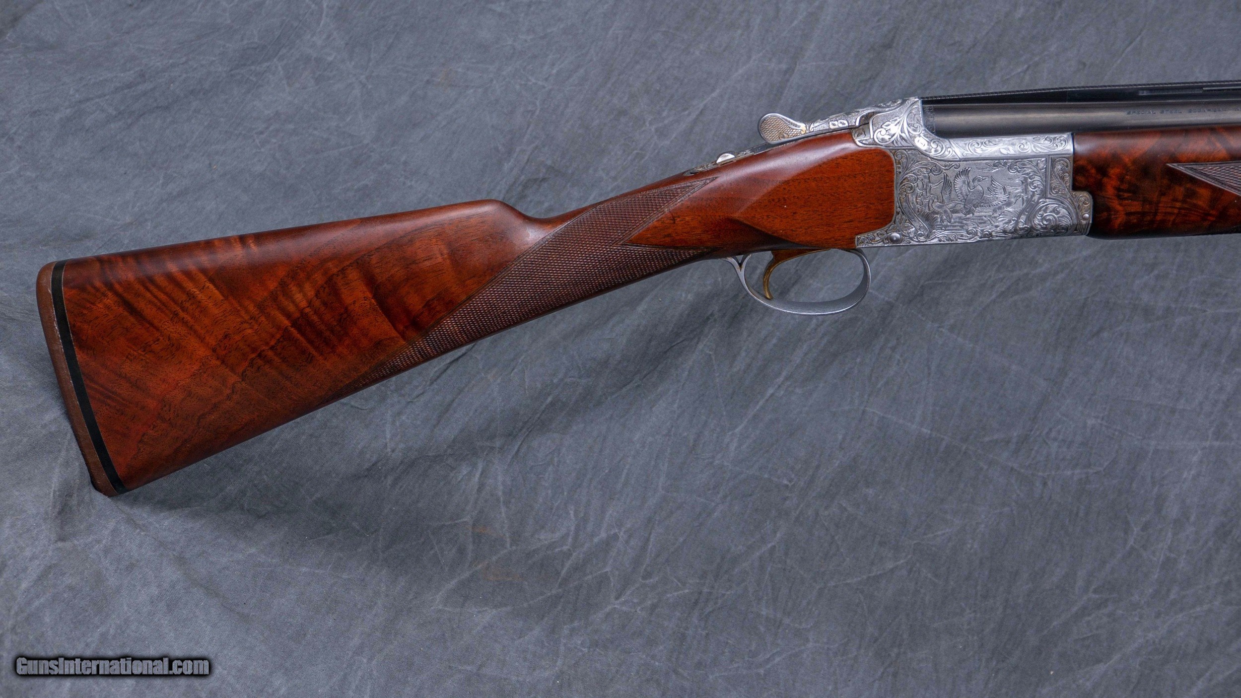 Description: BROWNING Citori Grade V Sporter 20 gauge O/U, Coin finished receiver hand engraved with game scenes, 26" bbls. w/ 3" chambers, Ventilated rib, Chokes: Bottom: ..621 / .005 / IC (**-) & Top: ..622 / .008 / M (**), Single selective trigger, Automatic Ejectors, Non-automatic safety, Well-figured straight grip stock w/ 1/2" Pachmayr Decelerator pad, Schnabel forearm, Stock Dimensions: DC 1 1/2" x DH 2 1/4" x Cast at heel 1/8 OFF" x LOP 13", Weight 6 lb. 7 oz. Condition: Excellent. Made in Japan circa 1980, Serial #08276PM163. (C7994) FIELDSPORT: $2495. To see & enjoy the entire inventory of fine shotguns, rifles and handguns in the FIELDSPORT Gun Room, we invite you to visit us at FIELDSPORTLTD SOLD |