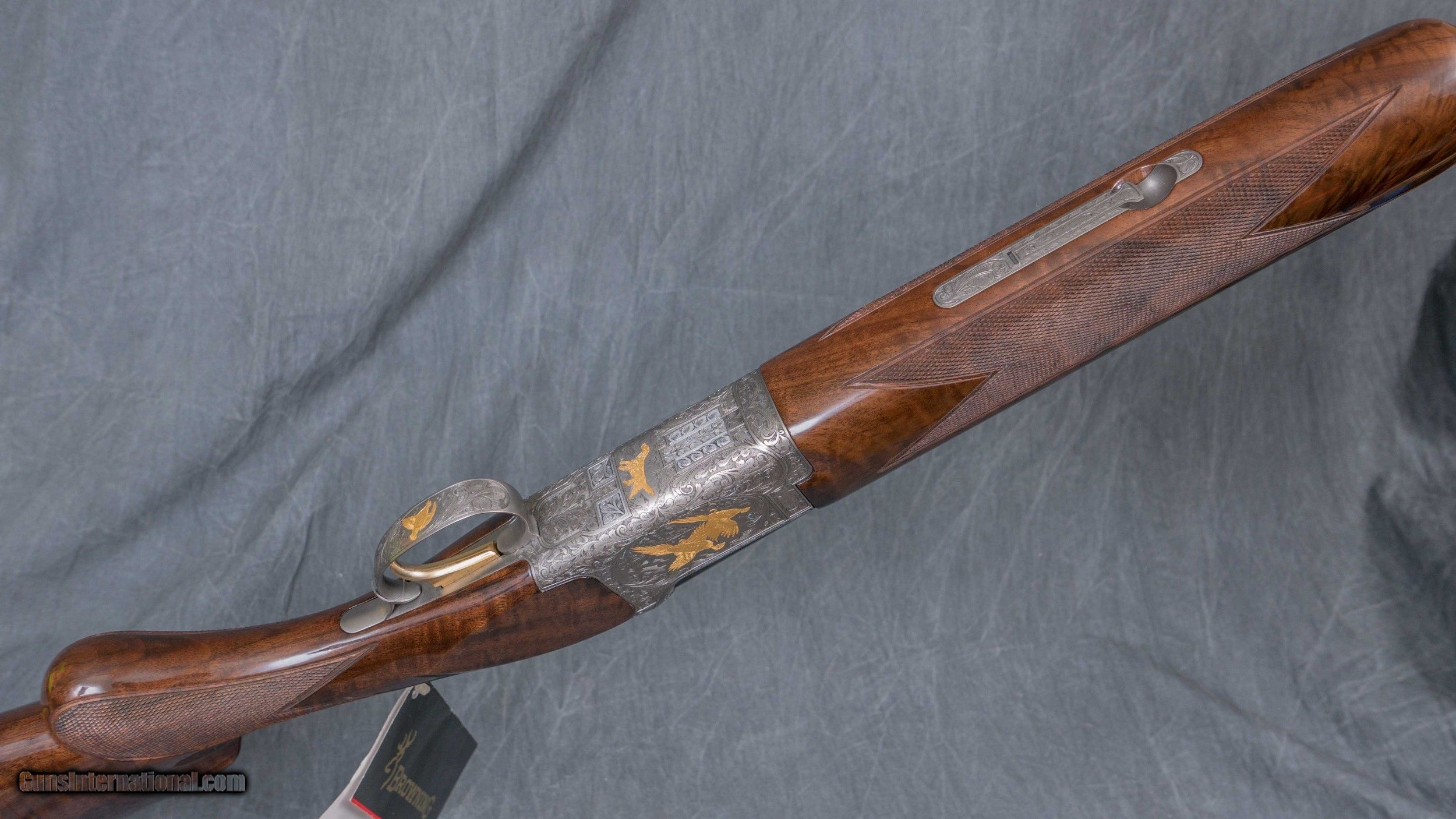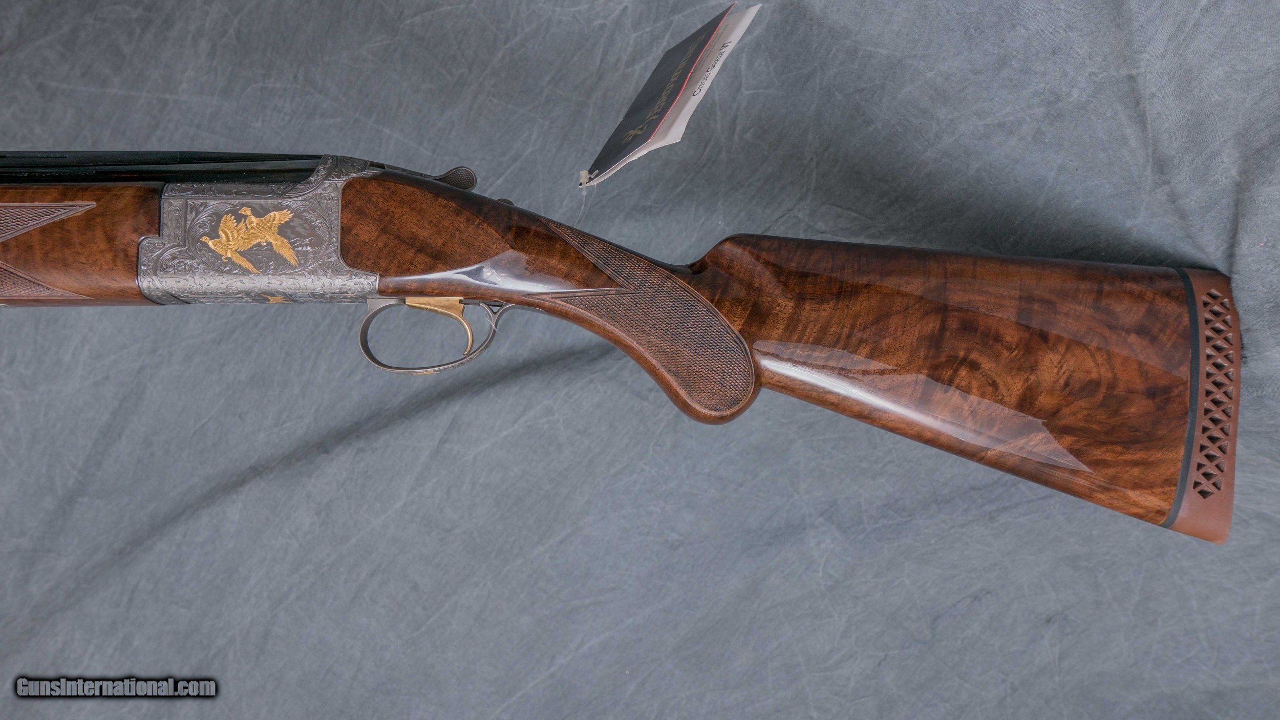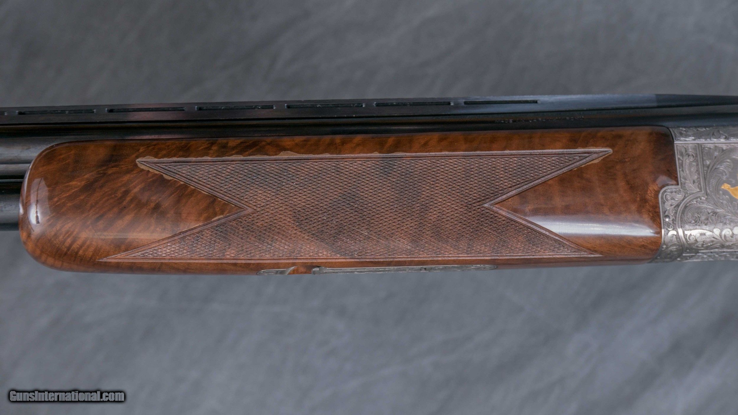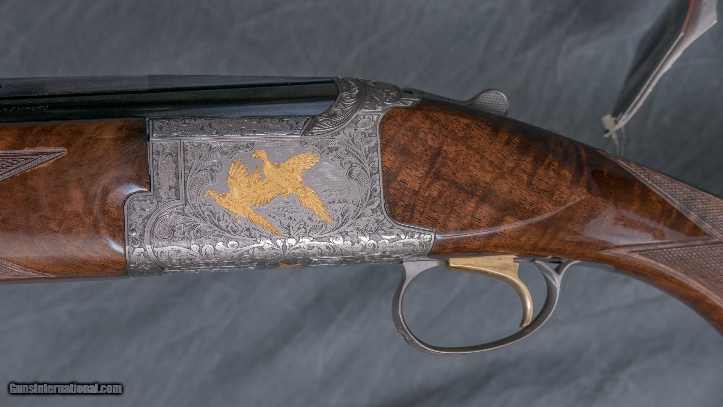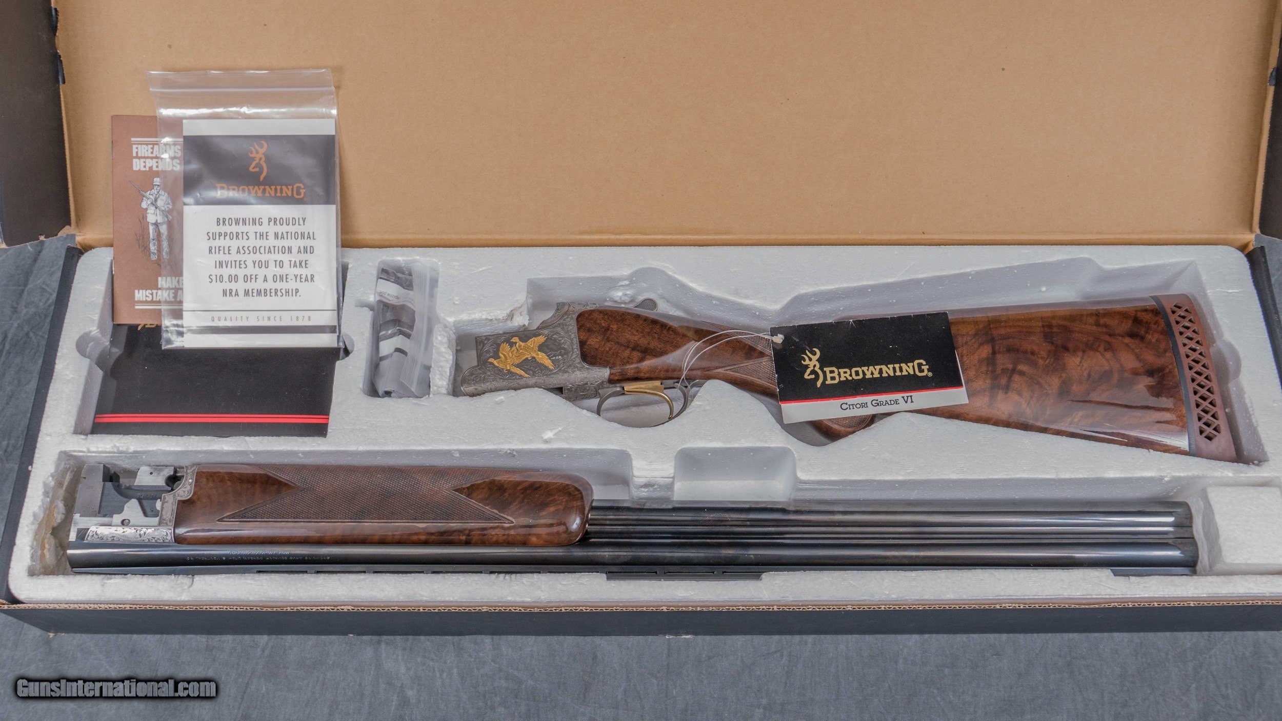 Description: BROWNING Citori Grade VI 12 gauge O&U, Greyed finish fully deep relief game scene engraved receiver w/ gold inlays, 28" bbls. w/ 2 3/4" & 3" ch., Ventilated rib, Invector Plus flush chokes: IC,M & F, Single selective trigger, Automatic ejectors, Non-automatic safety, Highly figured round knob semi-pistol grip stock w/ original Browning pad, Field-style forearm, Stock Dimensions: DC: 1 7/16" x DH: 2 1/4" x Cast: 0" at Heel x LOP: 14 1/4", Weight: 7 lb. 12 oz., Condition: Excellent w/ finish checking on left side of forearm (see photos) in original box, Made in Japan circa 2001, Serial #10152MZ131 (C7964) FIELDSPORT: $3995. To see and enjoy the entire inventory of fine shotguns, rifles and handguns on display in the Fieldsport Gun Room, please visit us at: FieldsportLTD SOLD |