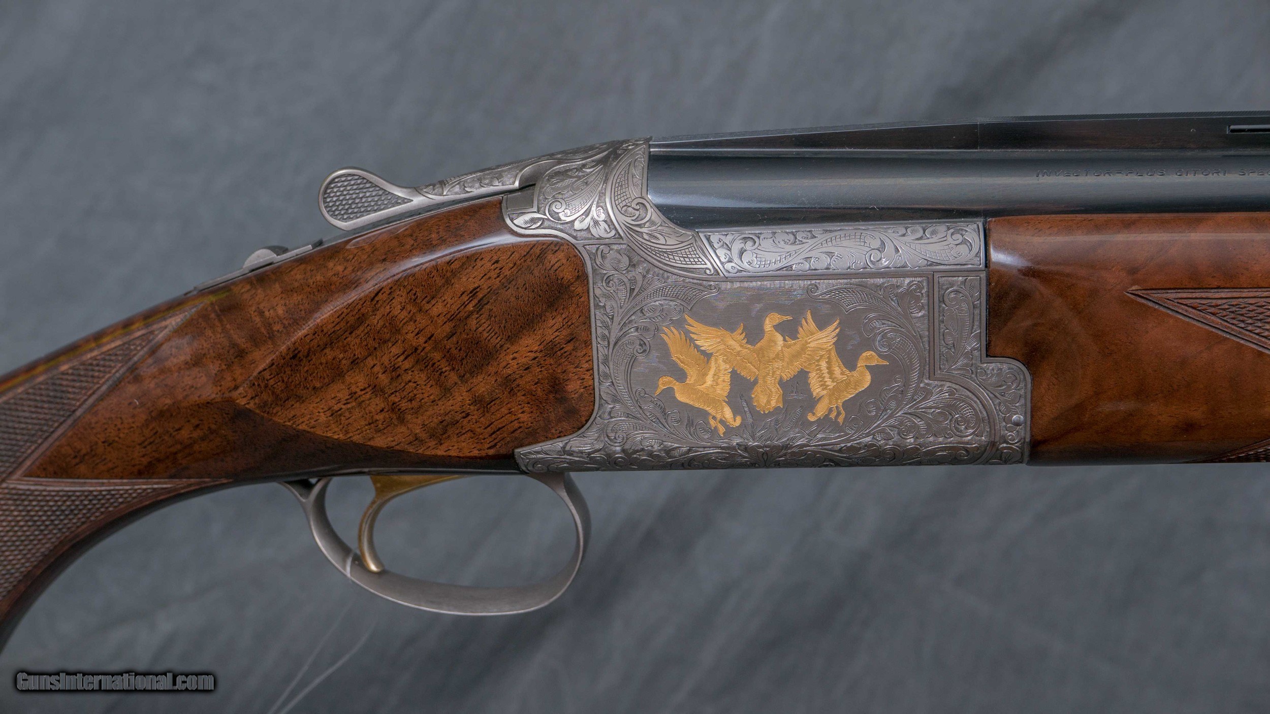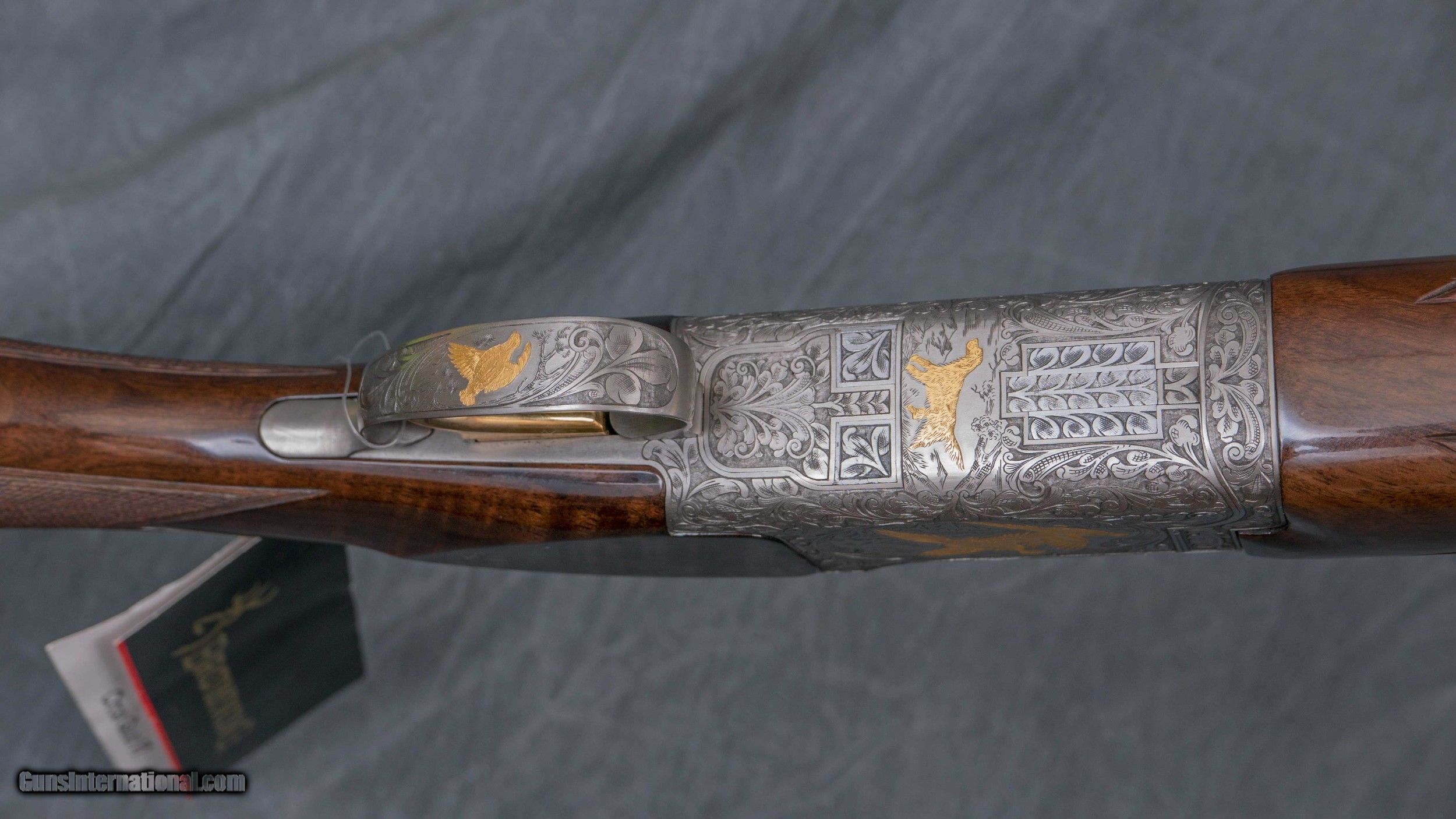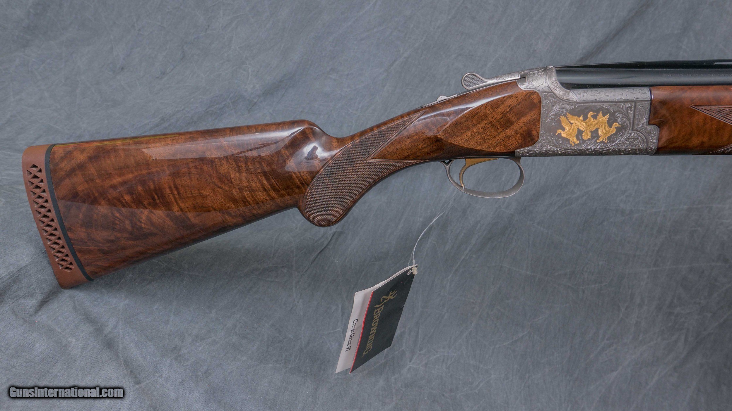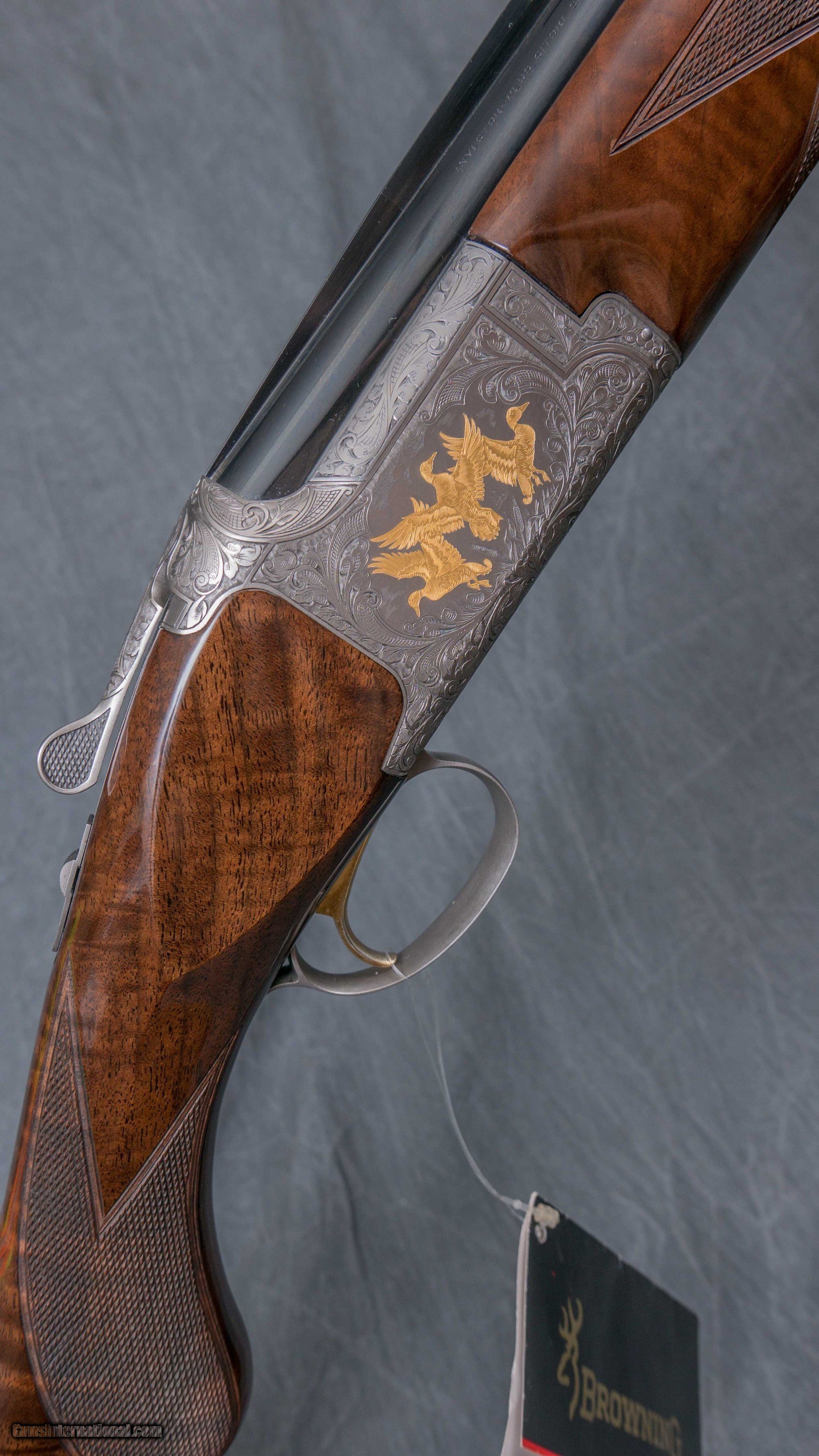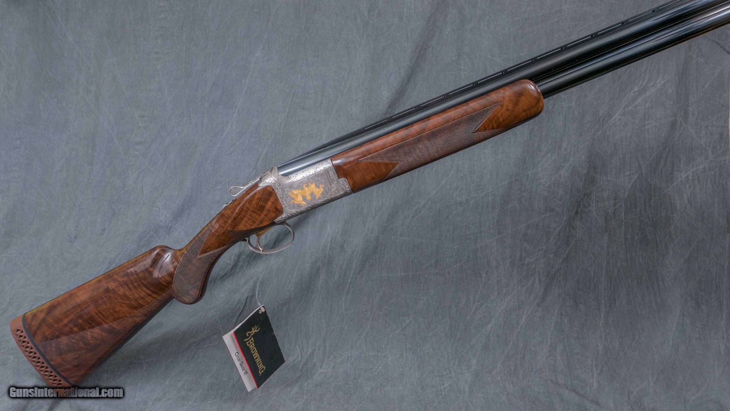 Description: BROWNING Citori Grade VI 12 gauge O&U, Greyed finish fully deep relief game scene engraved receiver w/ gold inlays, 28" bbls. w/ 2 3/4" & 3" ch., Ventilated rib, Invector Plus flush chokes: IC,M & F, Single selective trigger, Automatic ejectors, Non-automatic safety, Highly figured round knob semi-pistol grip stock w/ original Browning pad, Field-style forearm, Stock Dimensions: DC: 1 7/16" x DH: 2 1/4" x Cast: 0" at Heel x LOP: 14 1/4", Weight: 7 lb. 12 oz., Condition: Excellent w/ finish checking on left side of forearm (see photos) in original box, Made in Japan circa 2001, Serial #10152MZ131 (C7964) FIELDSPORT: $3995. To see and enjoy the entire inventory of fine shotguns, rifles and handguns on display in the Fieldsport Gun Room, please visit us at: FieldsportLTD SOLD |