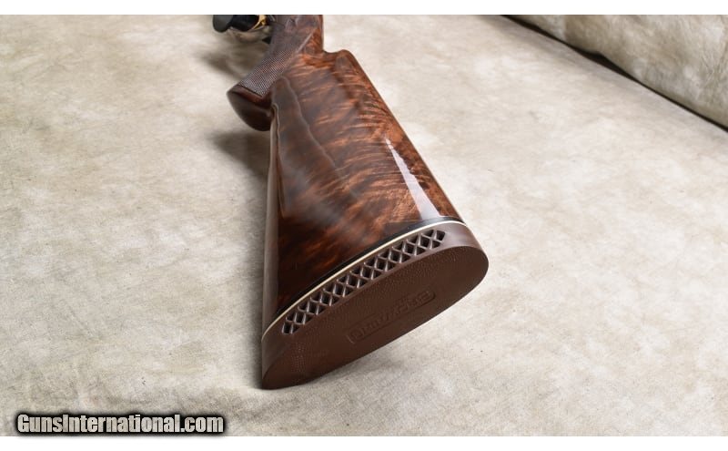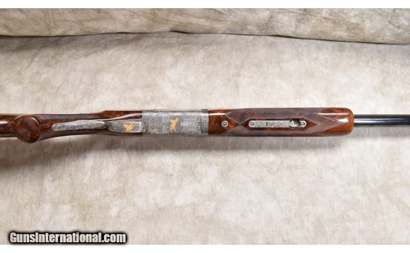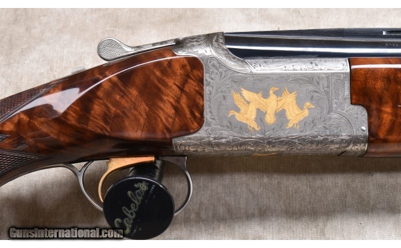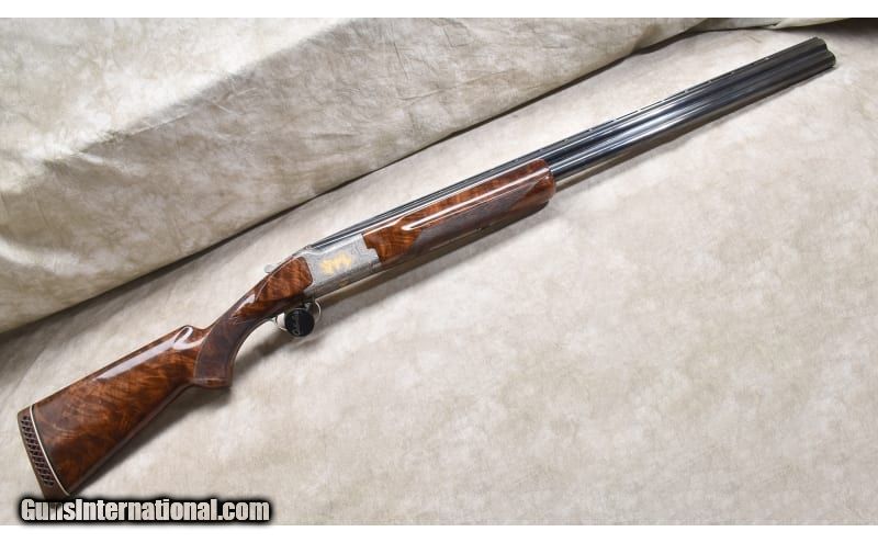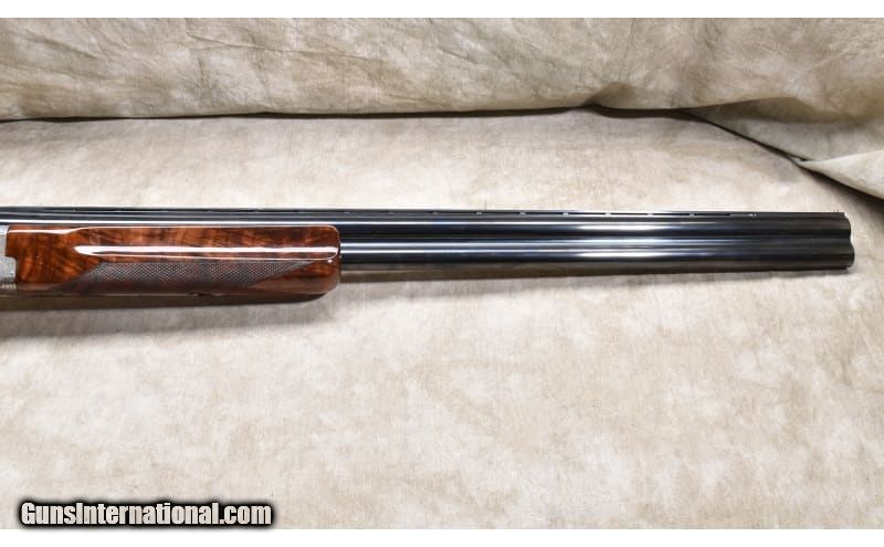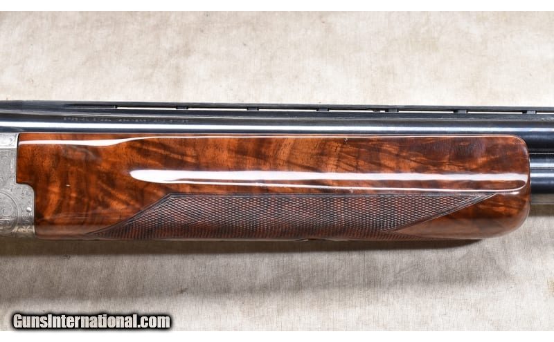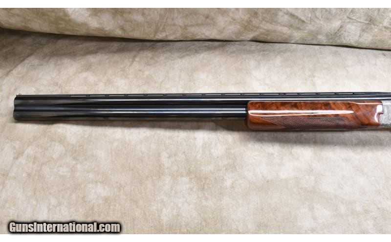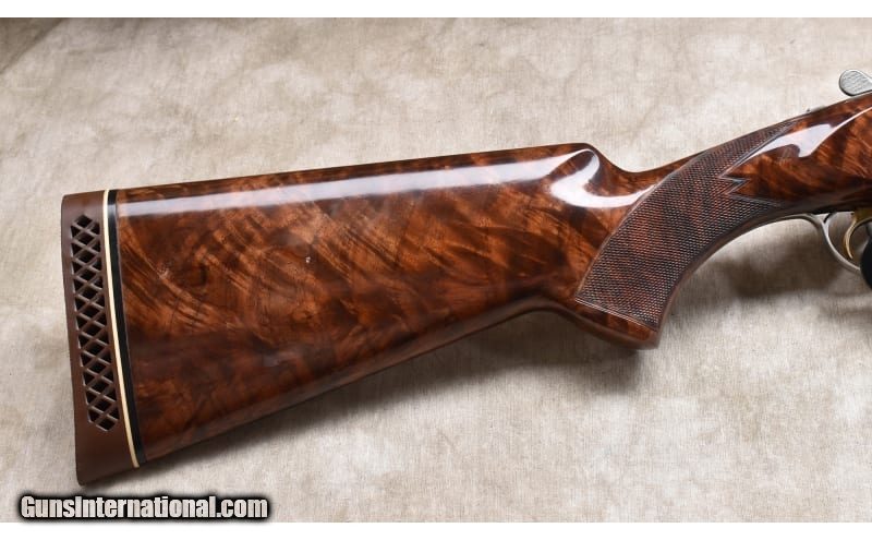 Description: Manufactured in 1985, this Citori has Grade VI wood with a lot of figure, sharp checkering, and only two minor handling marks. There is a little roughness along a sharp edge on the right side of the fore end, and a tiny "dig" on the right side of the stock. The metal shows no defects. It hasn't been used much if at all and is still a bit stiff on the hinge pin. The metal has nearly complete engraving coverage including Acanthus scroll work and gold game scenes. 12 Gauge SOLD Chambers: "2 rounds, 12 gauge, 3-inch Metal Condition: Excellent. Wood Condition: Excellent. Bore Condition: Shiny and bright. Barrels: 30 inches Triggers: Factory single selective trigger. Stock Dimensions: LOP: 14-1/8 inch; DAH: 2-3/8 inches; DAMC: 1-3/4 inches Fore End: Matching Grade VI walnut beavertail. Butt Pad: Ventilated rubber pad. Weight: 8 lb - 10 oz. Sights: Ventilated rib with gold bead. Chokes: Screw-in Modified and Full chokes Item Location: Rogers |