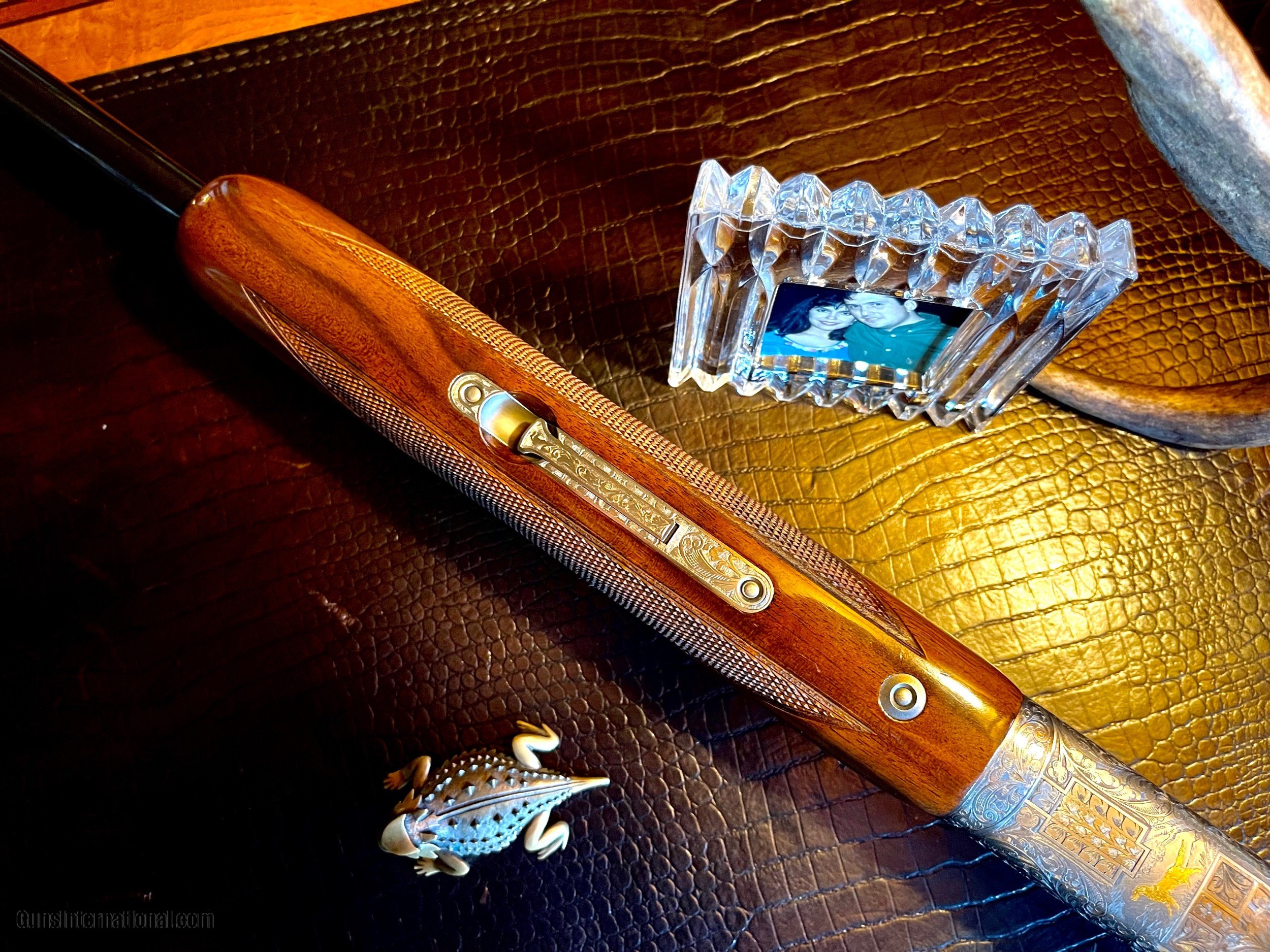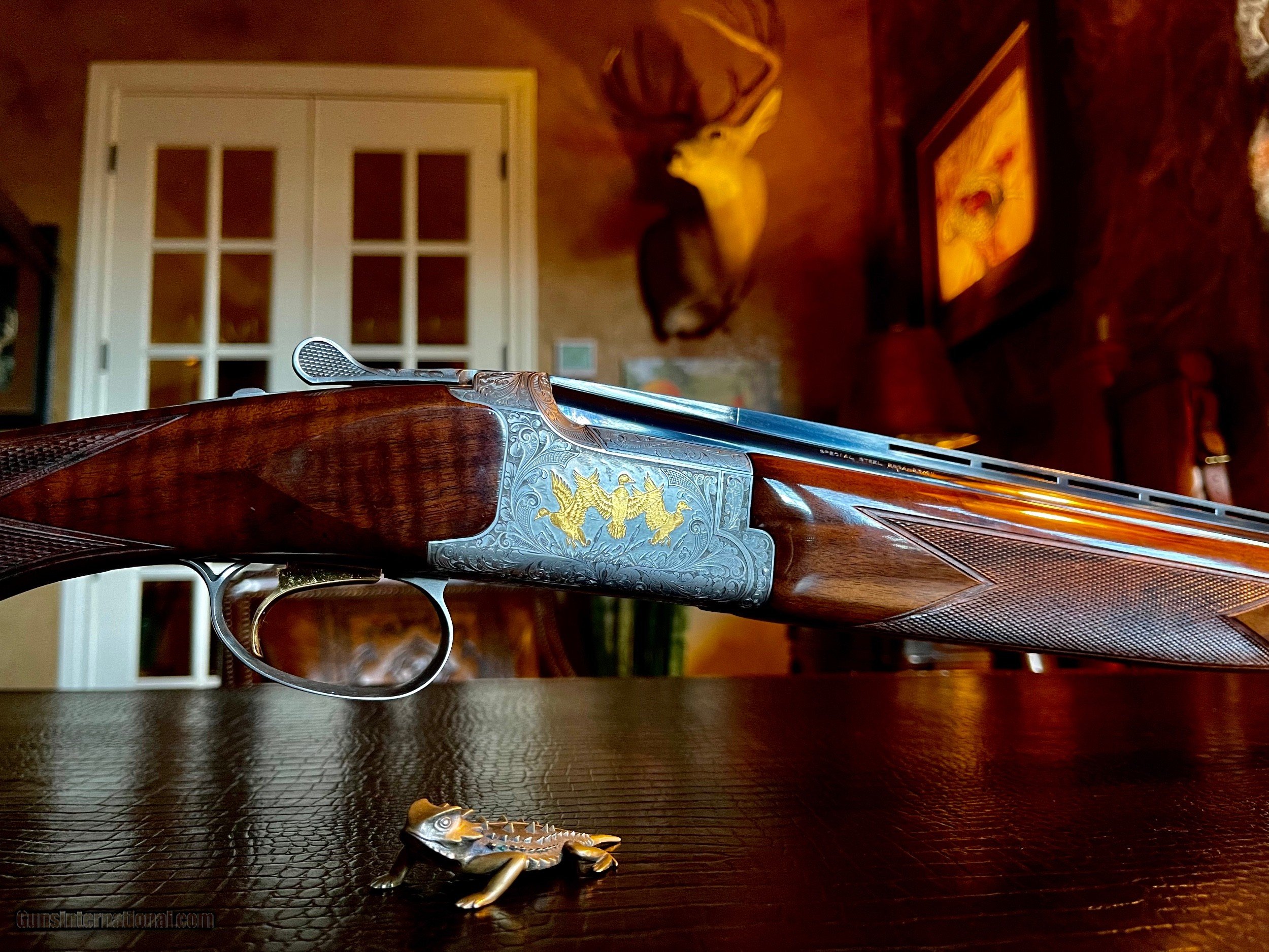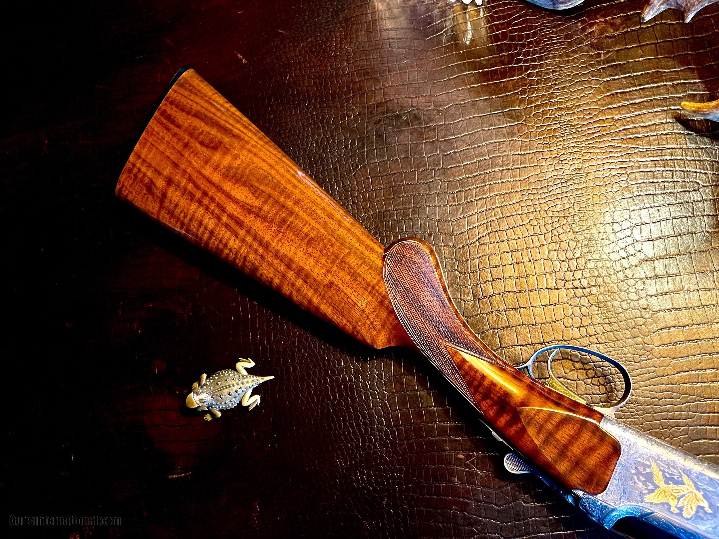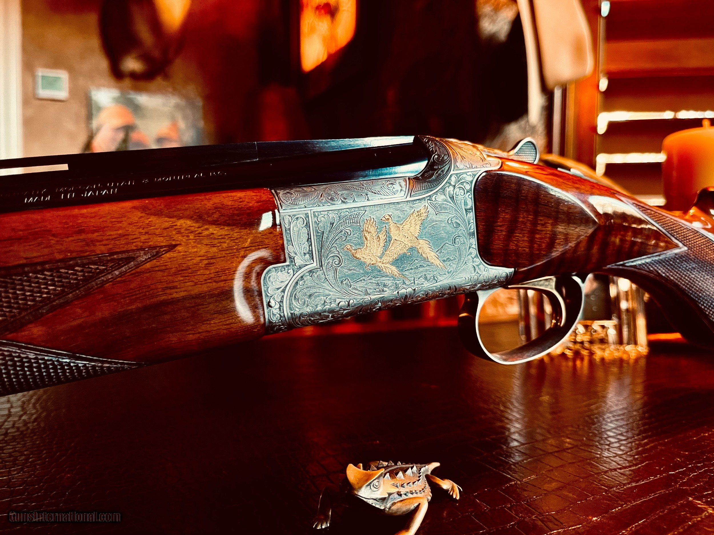 SOLD Shotgun Gauge: 28 Gauge Manufacturer: Browning Model: Citori Grade VI Serial Number: 29356NR973 Barrel Length: 26” Chambers: 2 3/4” Condition: 99% Metal Condition: 99% Wood Condition: 99% Bore Condition: 99% Stock Comb: 1 3/8” Stock Heel: 2 3/8” Stock Cast: Neutral Fore End: Field Butt Pad: Browning Buttplate LOP: 14 3/16 Rib: Ventilated Finish: Factory TruOil Weight: 6 lbs 7 ozs Manufacture Date: 1997 Chokes: Invector High Grade Choke Left: Original Factory IC M F Engraving: Gold Inlays |