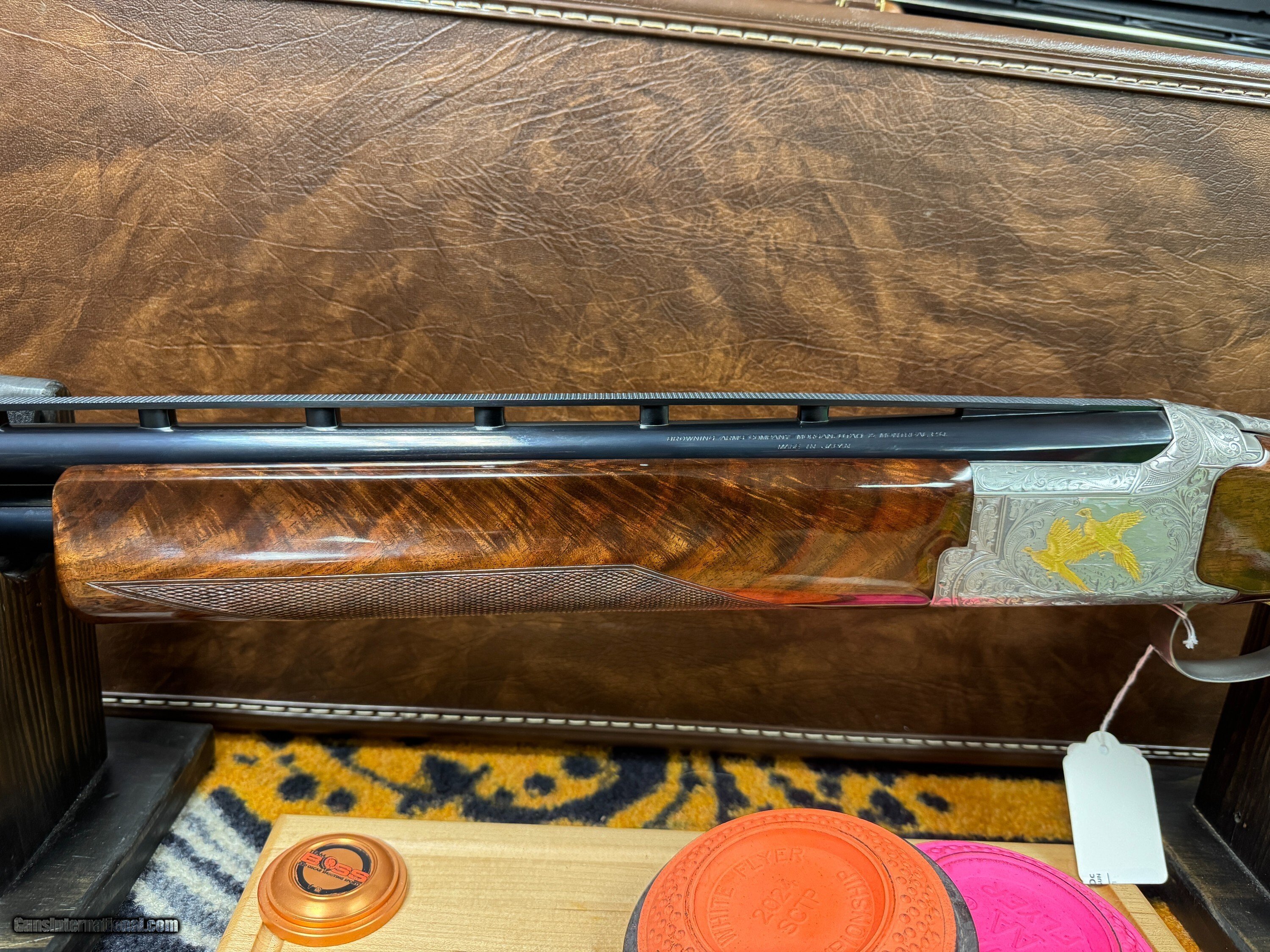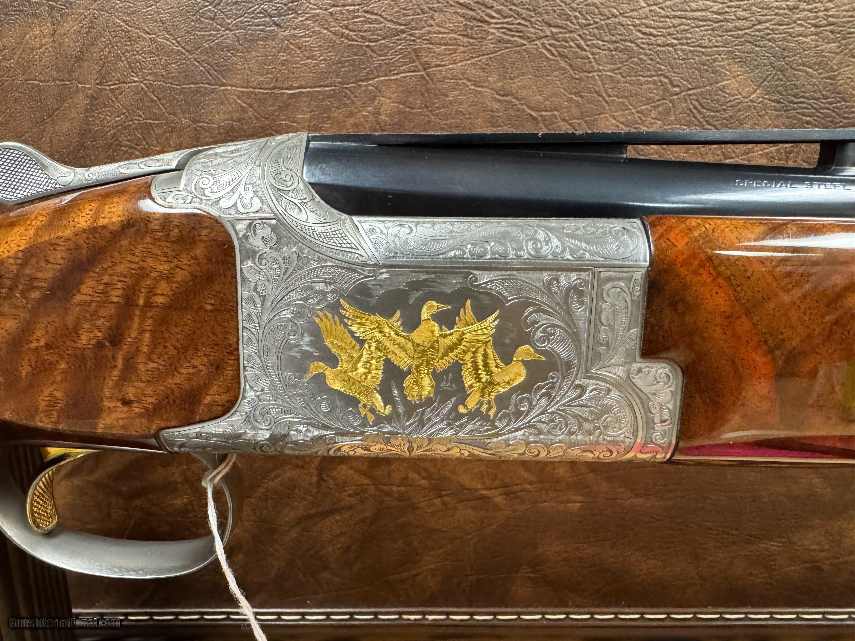 Description: For Sale on Consignment: 1987 Browning Citori Grade VI 4-Barrel Skeet Set A rare opportunity to own a pinnacle of Browning craftsmanship — this 1987 Browning Citori Grade VI Skeet Set is a collector-grade ensemble that blends timeless elegance with competition-ready performance. Make & Model: Browning Citori Grade VI Year of Manufacture: 1987 (Japan) Gauge Set: 12, 20, 28, .410 bore (4-barrel matched set) Barrel Length: 28" each, all with factory skeet chokes Chokes: Fixed Skeet/Skeet (all barrels) Stock: High-grade walnut with sharp, hand-cut checkering Engraving: Deep relief scroll with gold inlays — pheasants and ducks in flight Extras: Factory Browning takedown case Condition: