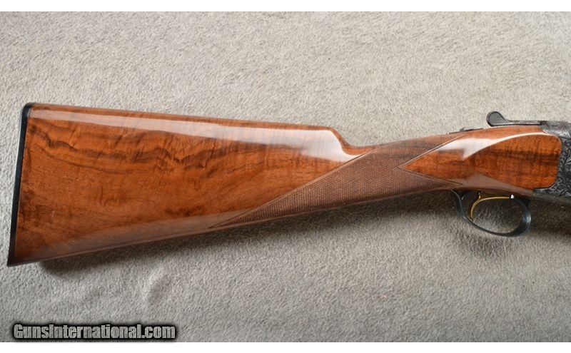 Description: This is a very nice and getting hard to find Browning Citori grade VI (6) 12 gauge shotgun. This nice shotgun has 26' gloss blue barrel with a vent rib and screw in chokes. The receiver is fully engraved and has 7 gold inlays. The grade VI walnut stock and forearm are in very nice condition with a few small field marks. The face is very clean and only very lightly marked. The shotgun looks to have been fired very little. This is a very attractive shotgun at a very attractive price. 12 Gauge SOLD Chambers: 2 3/4" Over/Under with ejectors. Metal Condition: Very good with a thin scuff on the left side of the receiver on the gold birds. The rest of the metal is like new. Wood Condition: Very good with small scattered dings. Bore Condition: Bright and shiny. Barrels: 26" Gloss blue with a vent rib. Triggers: Single gold color. Stock Dimensions: 14 1/4" LOP. Fore End: "Very nice high grade walnut with checkering, engraved release and a schnable. Butt Pad: Matching walnut with a checkered straight grip and a factory black butt plate. Weight: 6 Lbs. 14 Oz. Sights: Single silver color front bead on the vent rib. Chokes: "Screw in, comes with a MOD and IC. Item Location: Owatonna, MN |