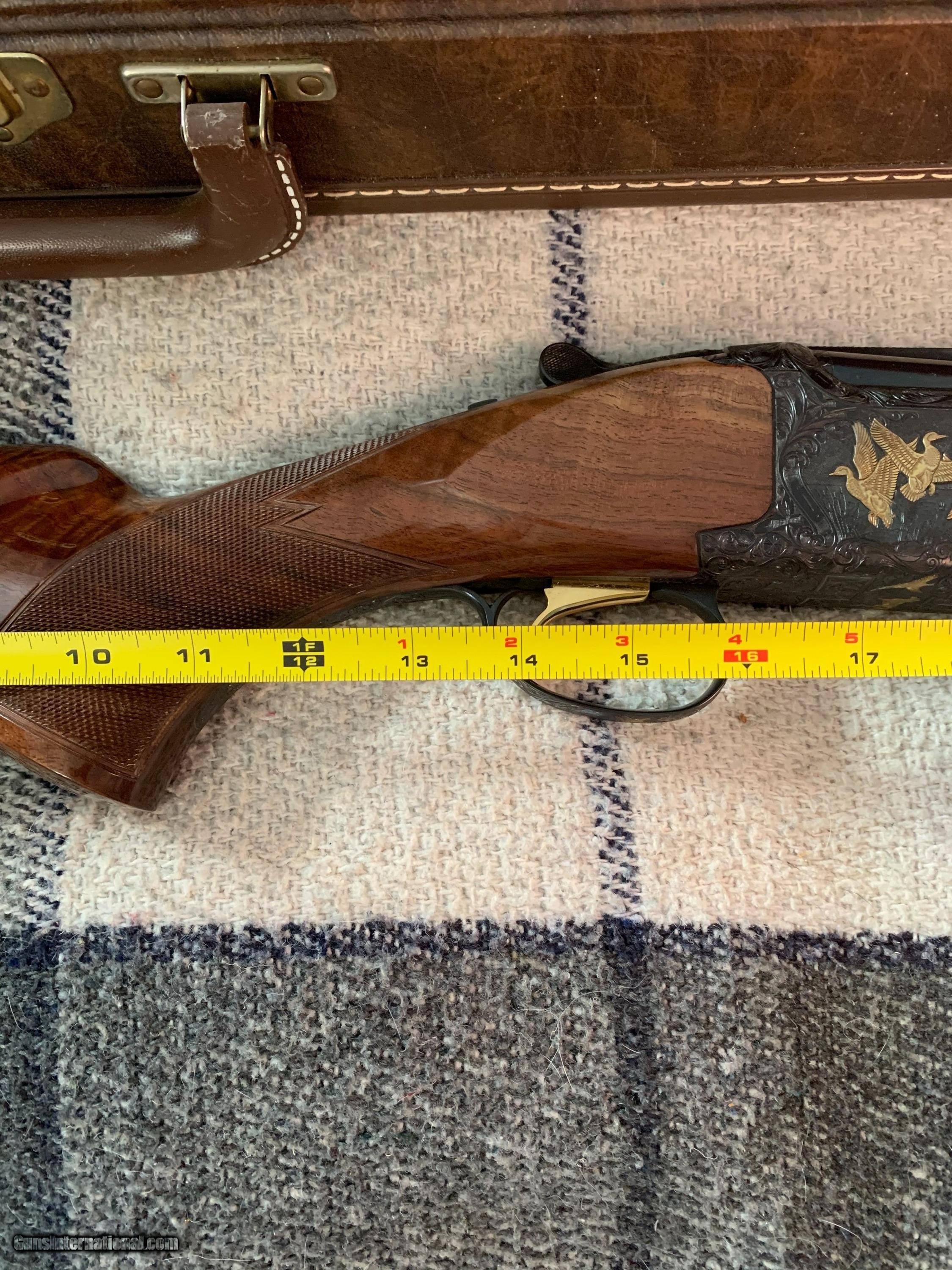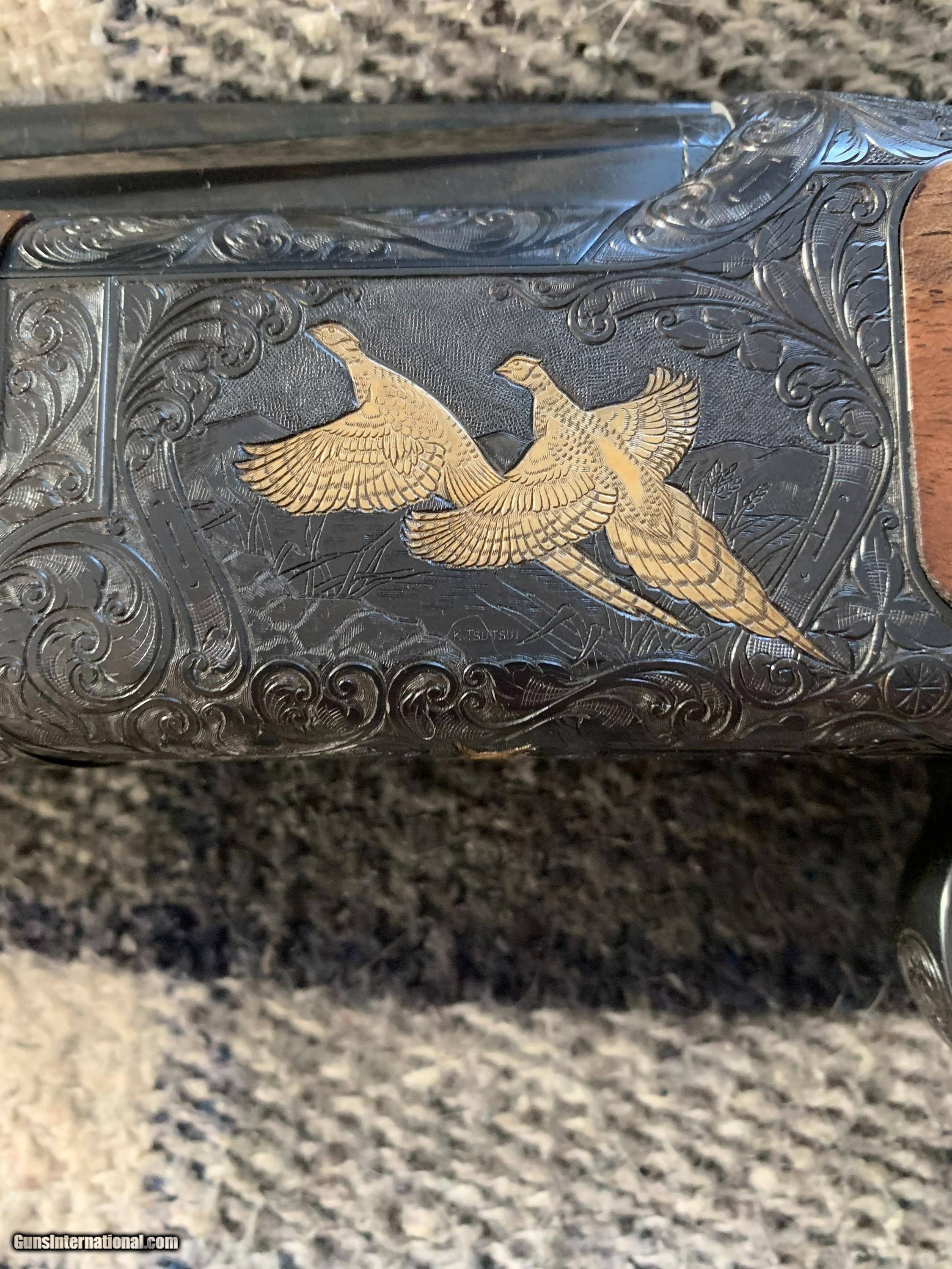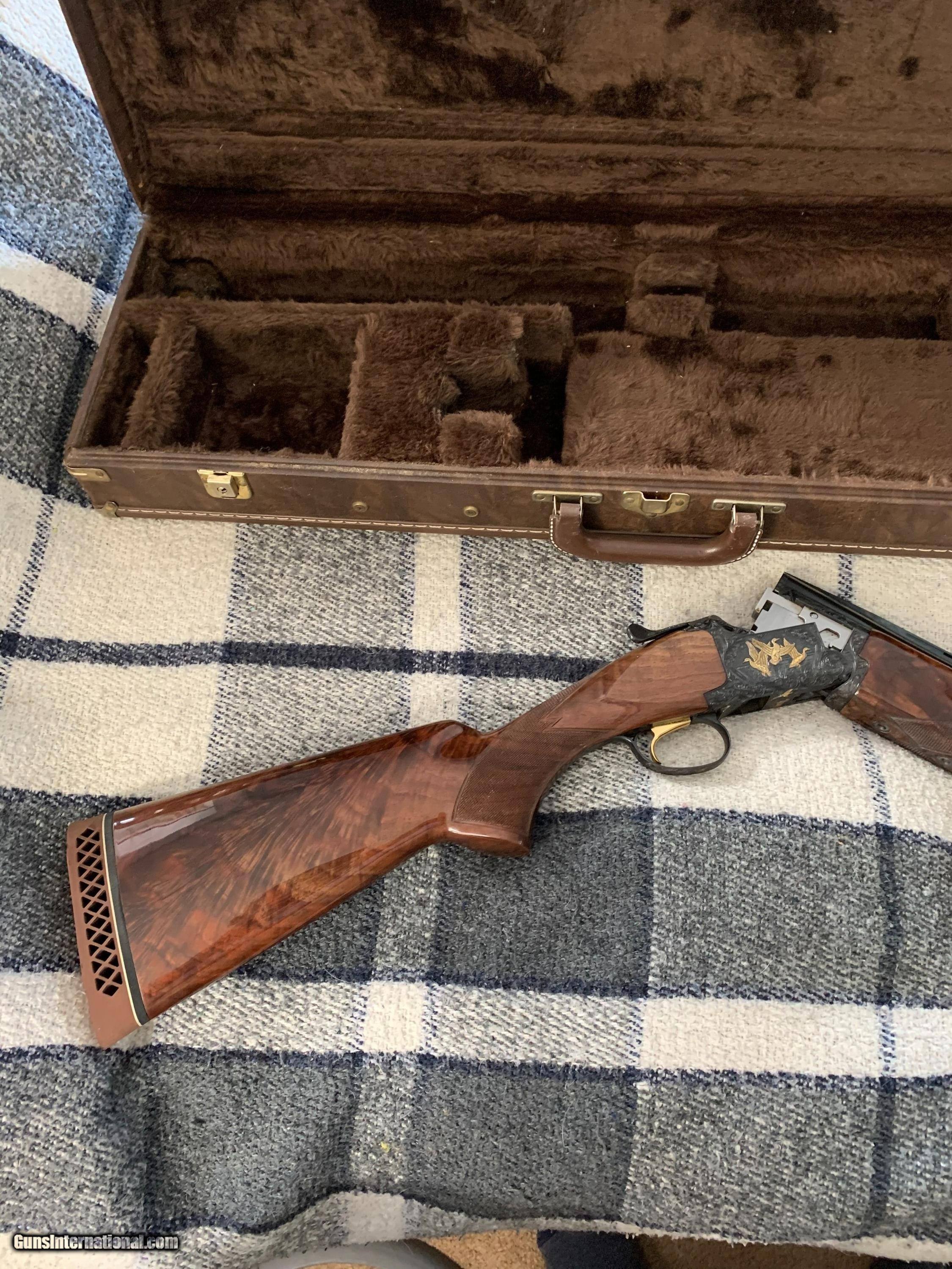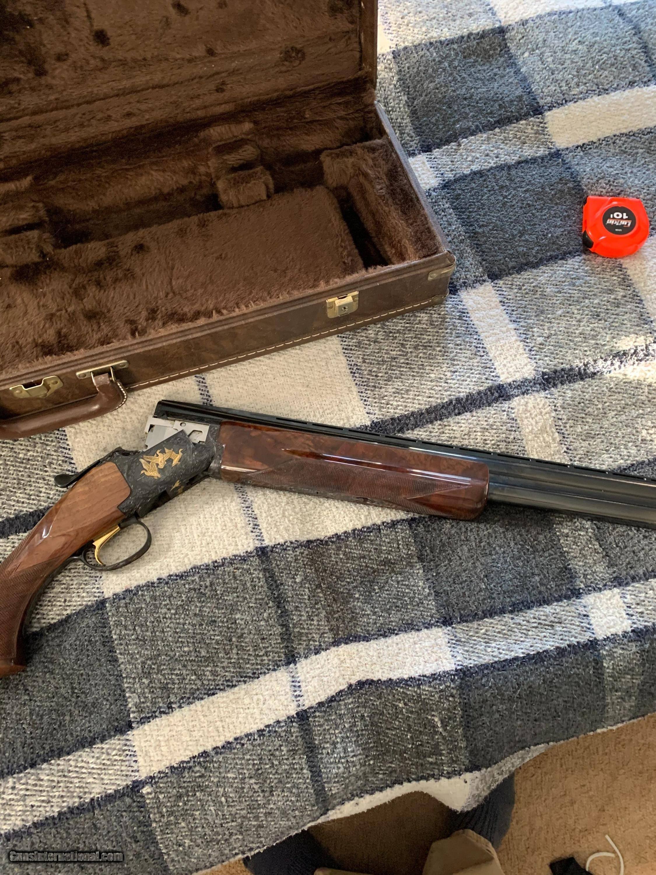 Description: ATTENTION Browning enthusiasts. Here is your opportunity to add a rare HAND ENGRAVED Browning Citori Grade VI to your collection. Hand engraved by master engraver K. Tsutsui (you can see his name in picture three by zooming in). It is in pristine condition and comes in the pictured browning hard case. If you are looking to take your collection to new heights or be the talk of the gun club this is the gun for you. 30 inch barrels and 14 inch length of pull. The end of the barrel has a few tiny specs of light surface rust that look much worse in the picture than in person. Without adding bright sunlight you can not even see them. SOLD Shotgun Gauge: 12 Gauge Manufacturer: Browning Model: Citori **Grade VI** Barrel Length: 30 Engraving: HAND ENGRAVED |