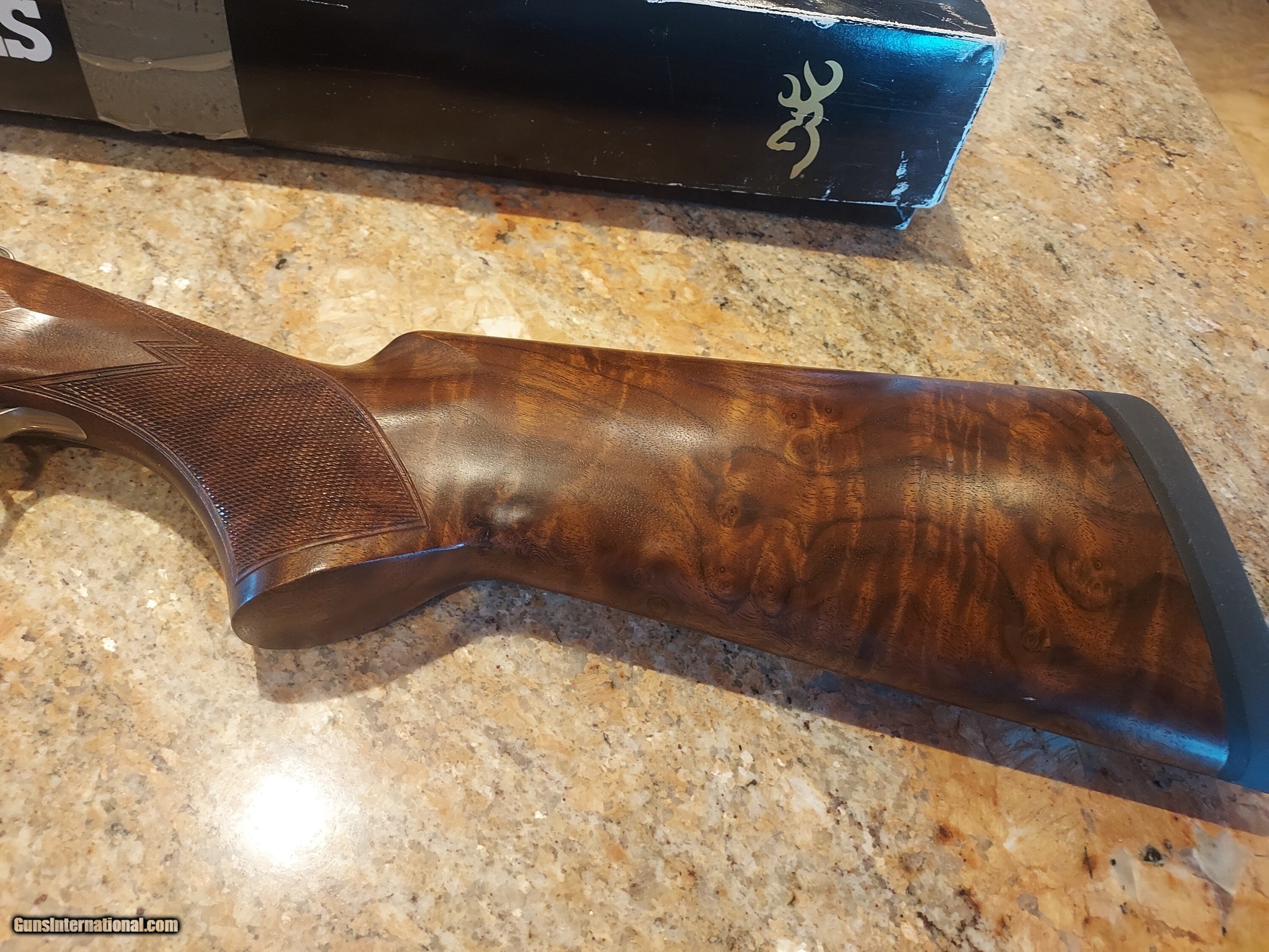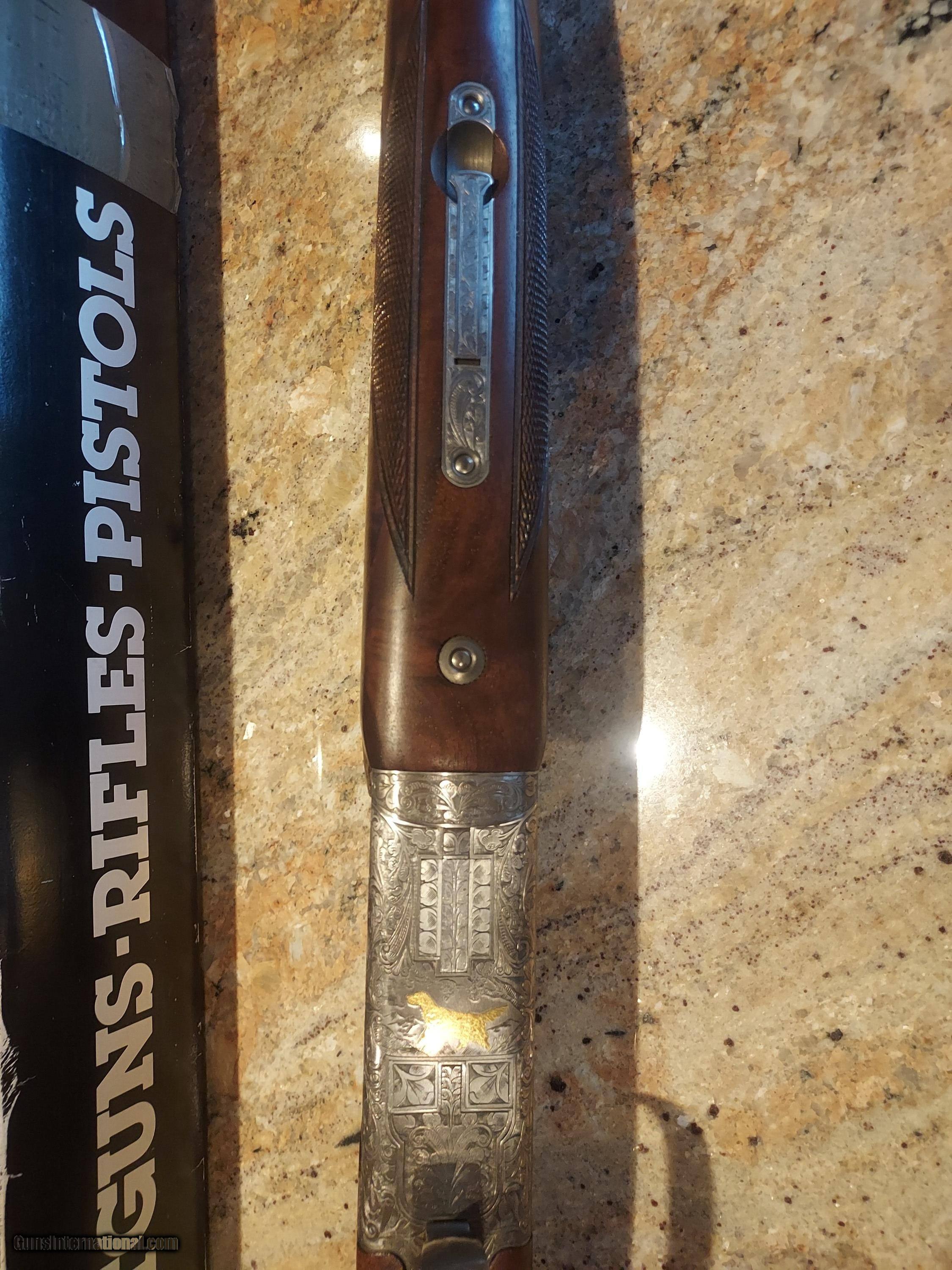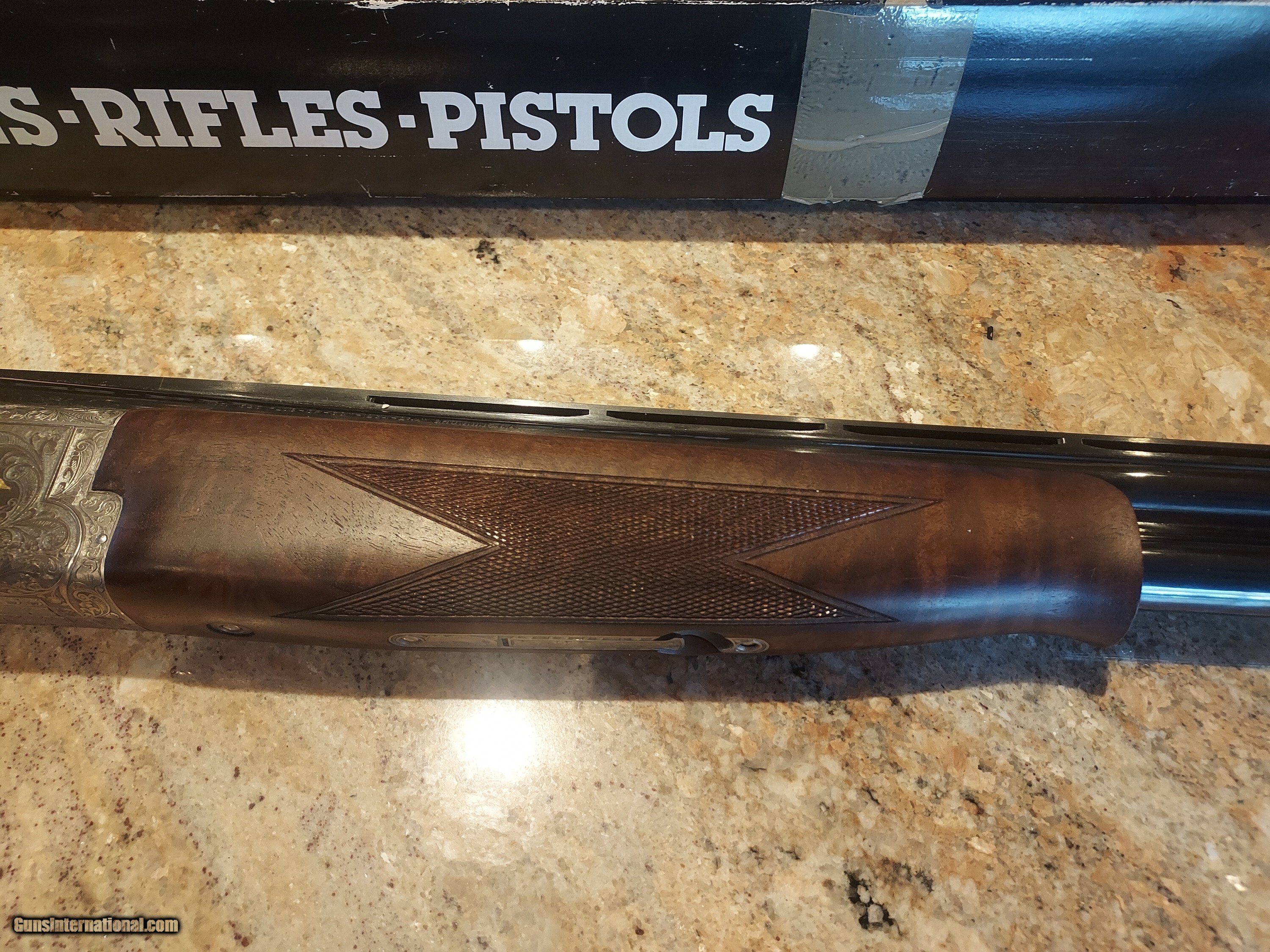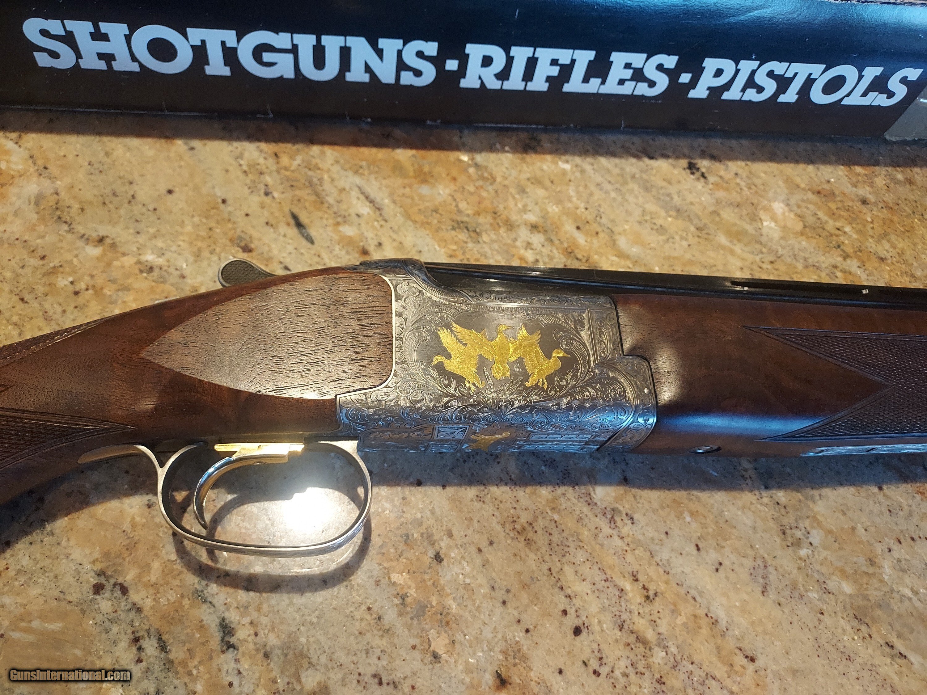 Description: This 1992 Grade VI 12 gauge appears unfired. It comes in the factory serial numbers' matching box with two invector chokes, two trigger shoes, choke wrench, Browning patch, window sticker, and even blinders for your shooting glasses. There are no marks on the metal or wood-a very unique, great find. Price: $4,475.00 Contact Seller |