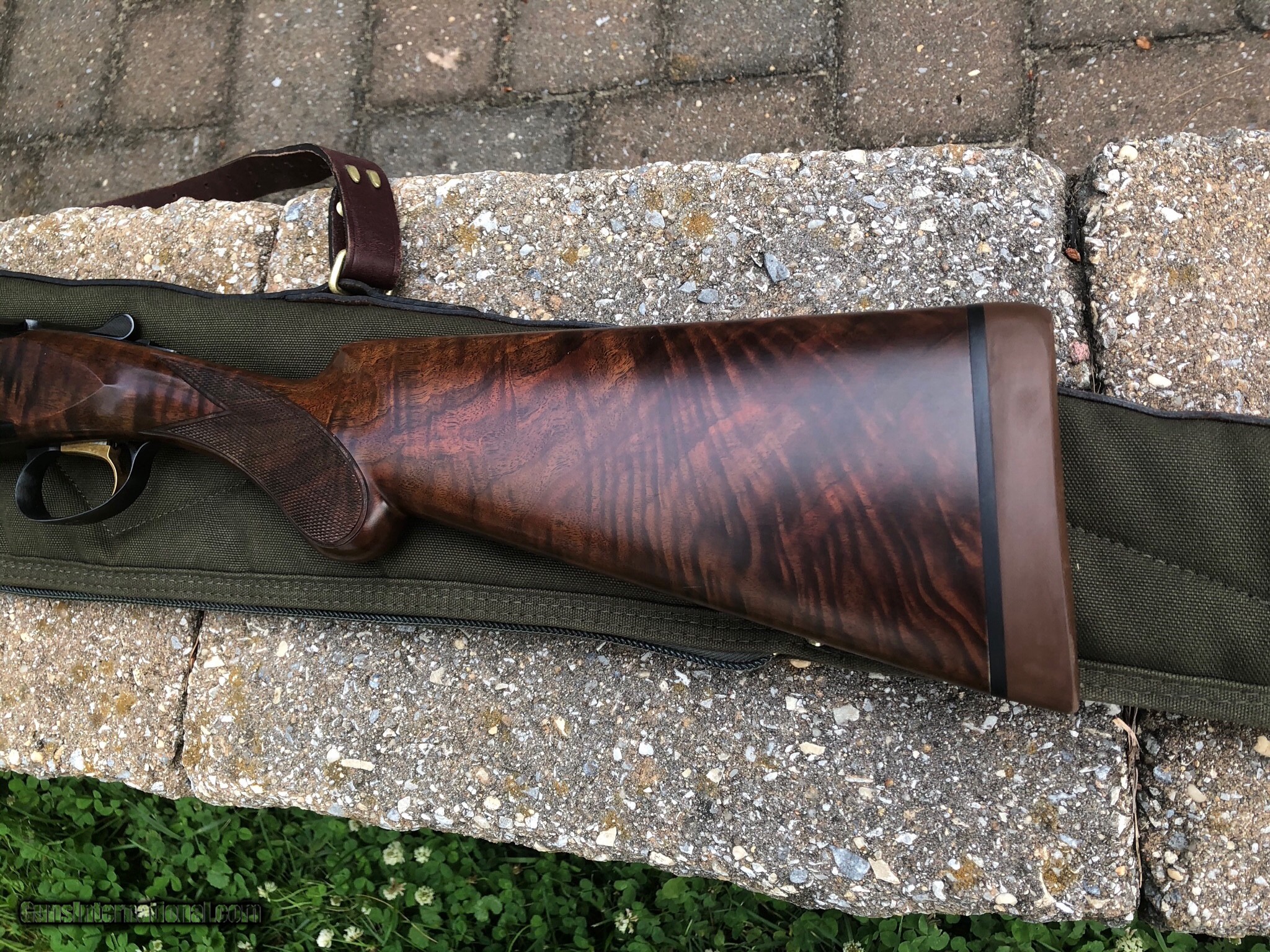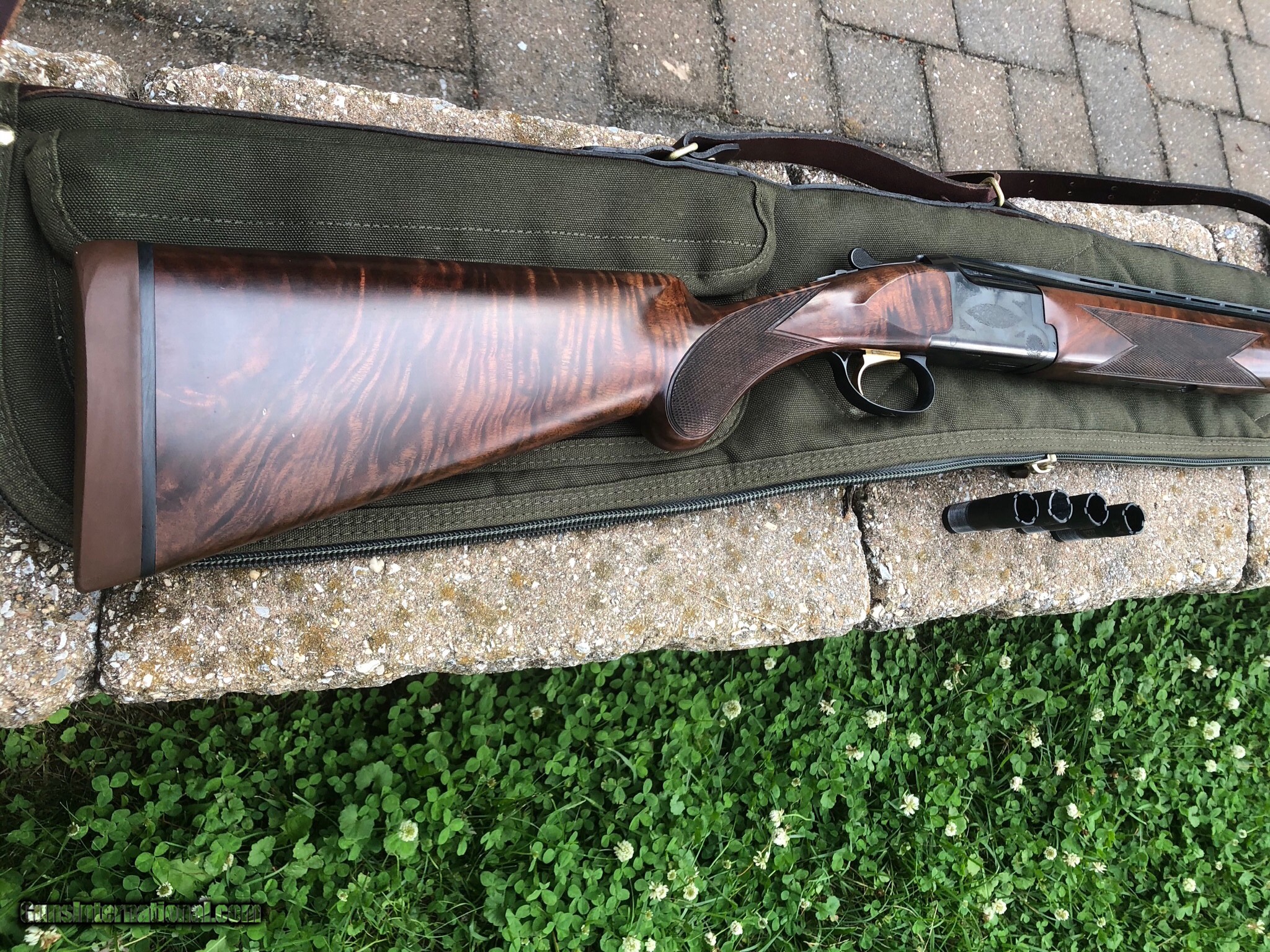 Description: As I continue to sell my personal guns, here’s a very nice one. A Browning Citori Gran Lightning 16 gauge with 28 inch barrels. It’s in terrific condition with just a few marks from very light use over the years. A 2001 gun, it’s as tight as new and features really nice wood that I selected from a number of them years ago. The LOP is 14 3/4 inches over a well fitted brown decelerator recoil pad. The gun comes with six extended black oxide choke tubes, in a variety of constrictions for all occasions. Lightly used in the field and for an occasional round of skeet, it’s an excellent choice for game or fun clays. You’ll be pleased with this beauty. Give it a good home and I’ll pay shipping and insurance to the lower 48. SOLD |