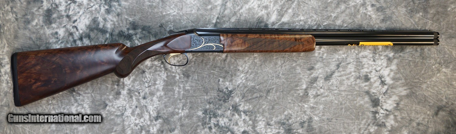 Description: New Browning Citori Gran Lightning Field 16GA with 28" extended Spectrum factory removable Invector Plus choke tubes. Blued action with scroll engraving and gold ribbons, factory Prince of Wales pistol grip stock and English field forearm. Includes factory box, chokes. SOLD Shotgun Gauge: 16 Gauge |