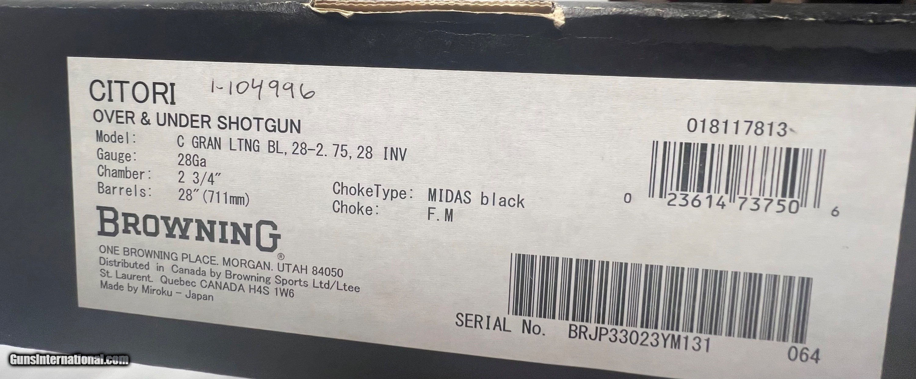 Browning Citori Grand Lightening 28 gauge over and under, NIB, Gold Inlays