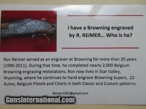 Description: Browning Citori Grand Lightning .16 Gauge , 28 " barrels , Invector Choke Tubes , engraved in the Custom Shop D5G Pattern by former Browning Master Engraver Ron Reimer . New in origional box . 7 pounds , 1 1/2 " x 2 3/8" x 14 1/4" . SOLD |
