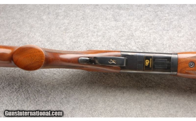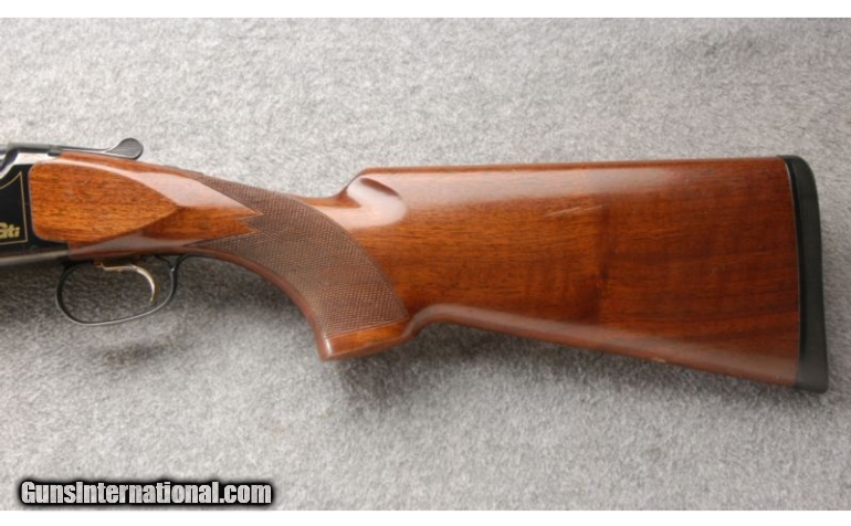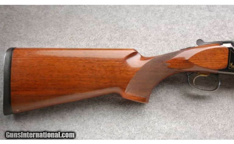 Description: This nice Browning has been used but not used up. The shotgun has minor dings and dents but nothing bad. If you are in the market for a nice sporting or field gun at a fair price this is it. SOLD Caliber Info: 12 Gauge. Chambers: 2 3/4 Inch Over-Under with ejectors. Metal Condition: Very good with a few very minor marks. Wood Condition: Excellent with a few tiny marks. Bore Condition: Bright and shiny. Barrels: 28 Inch Over-Under with porting and a vern rib. Triggers: Single Gold color. Stock: Nice grade I-II walnut with a checkered pistol grip. Stock Dimensions: 14 3/8 Inch LOP. There is adjustment in the LOP with the trigger. Fore End: Matching walnut with checkering and finger grooves. Butt Pad: Black rubber butt pad. Weight: 8 LBS 2 OZ. Sights: White front bead on a wide rib. Mid bead has been removed. Chokes: Screw in, Comes with a Mod and IC. Item Location: Owatonna, MN |