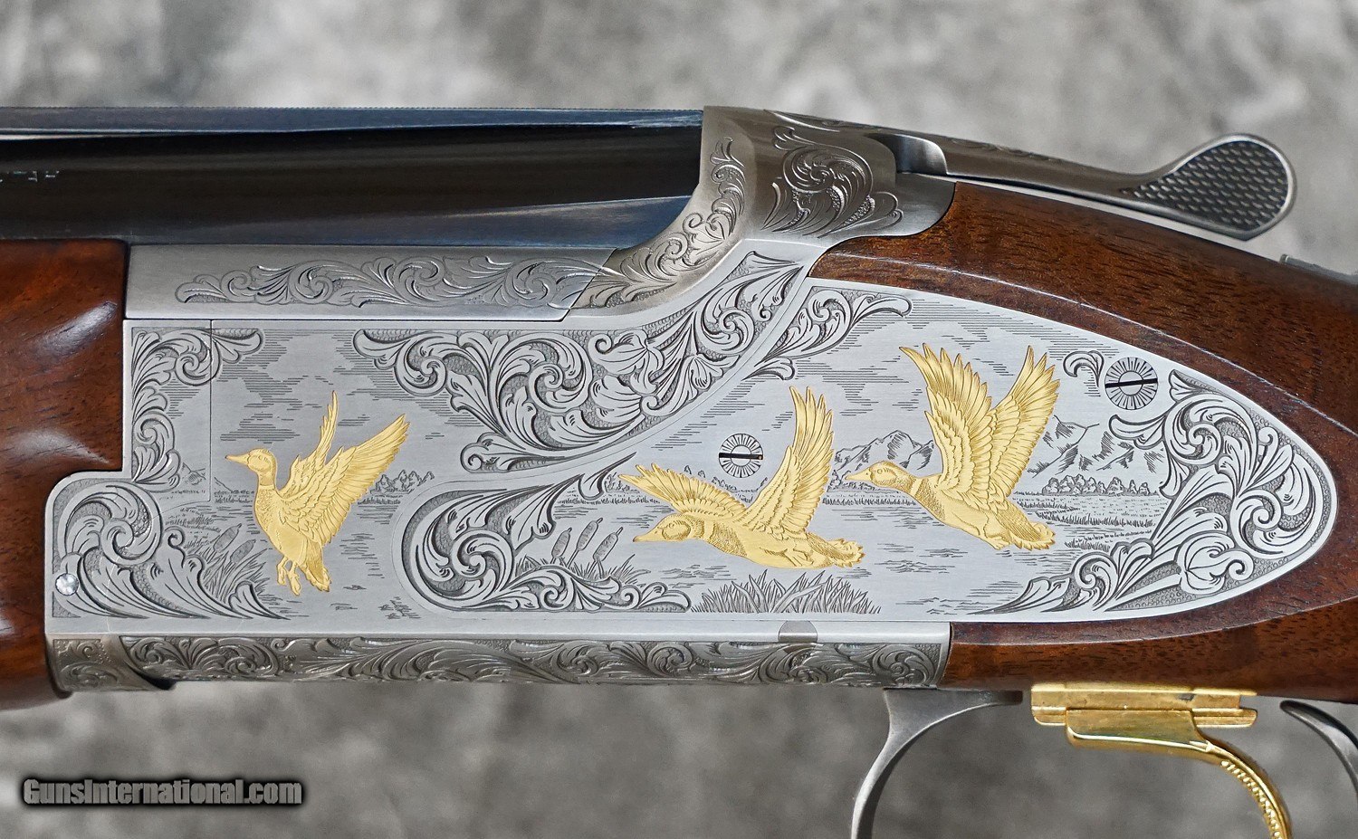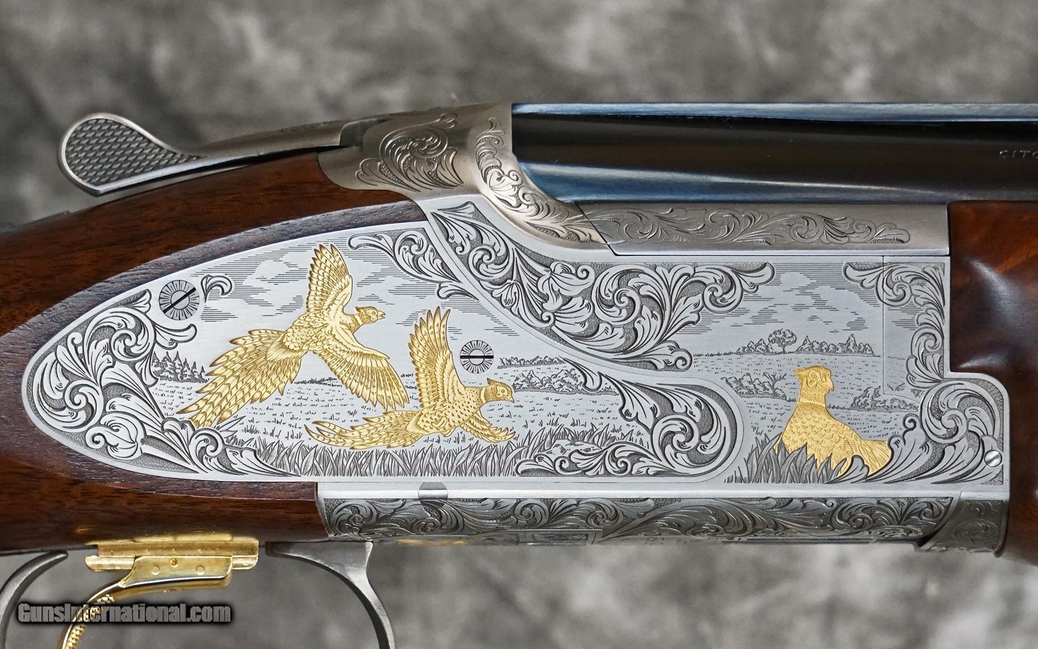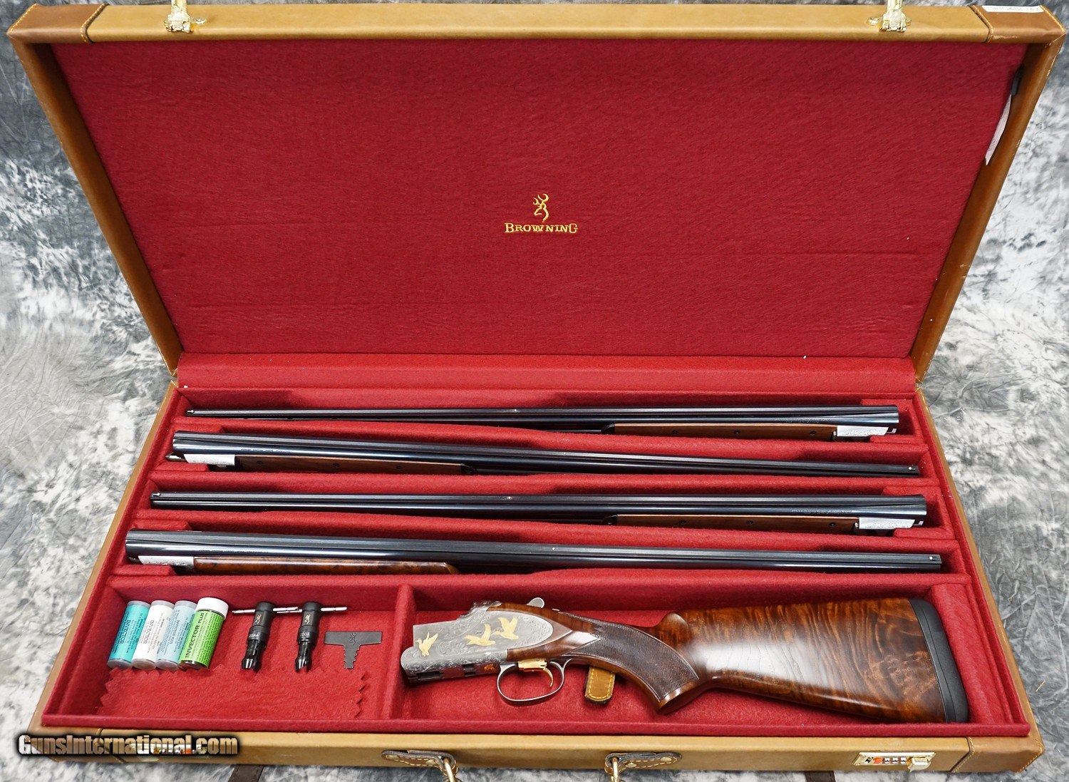 Description: Pre-Owned Browning Citori High Grade 4 Barrel Sporting Set 12GA 20GA 28GA .410 Bore with Invector Plus chokes, 32" non-ported barrels. Factory nitride finished action with side-plates featuring scroll engraving, upland game scenes inlaid in gold. Highly figured pistol grip sporting stock with Tulip style forearm. Gun is in outstanding condition, very minor signs of use. Includes original factory 4 barrel case, overall 95%++ condition. SOLD Shotgun Gauge: 12 Gauge, 20 Gauge, 28 Gauge, .410 Gauge |