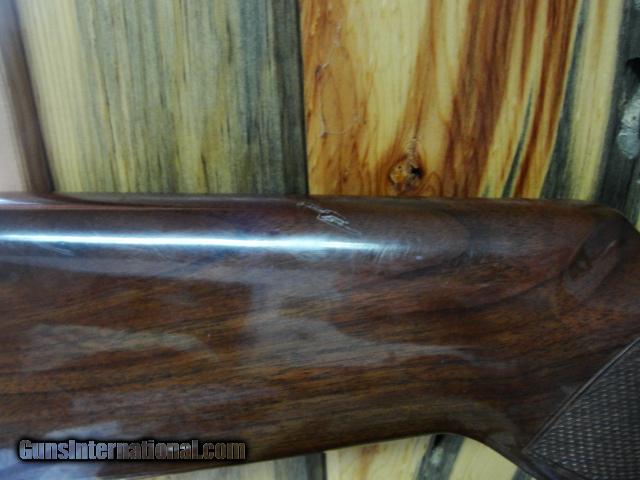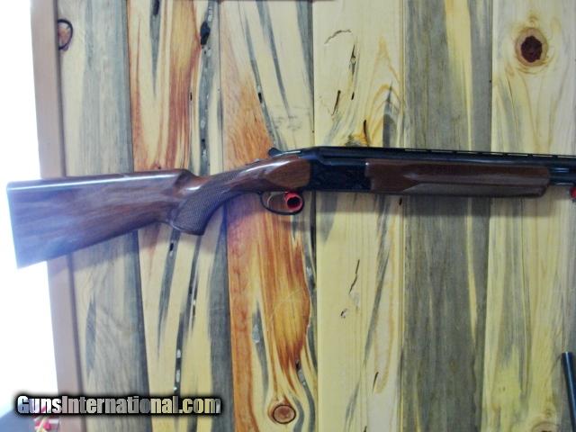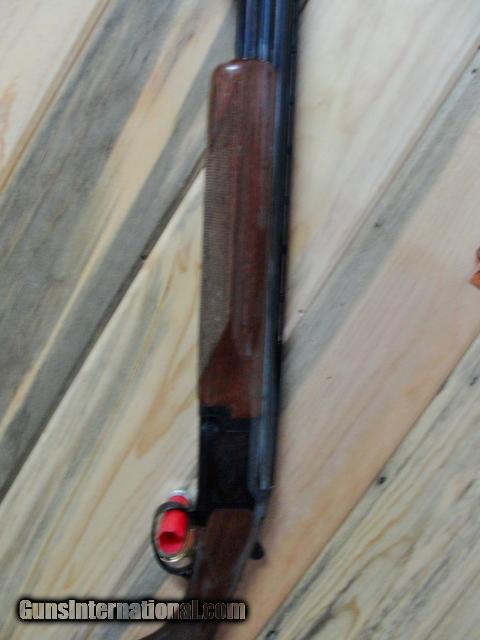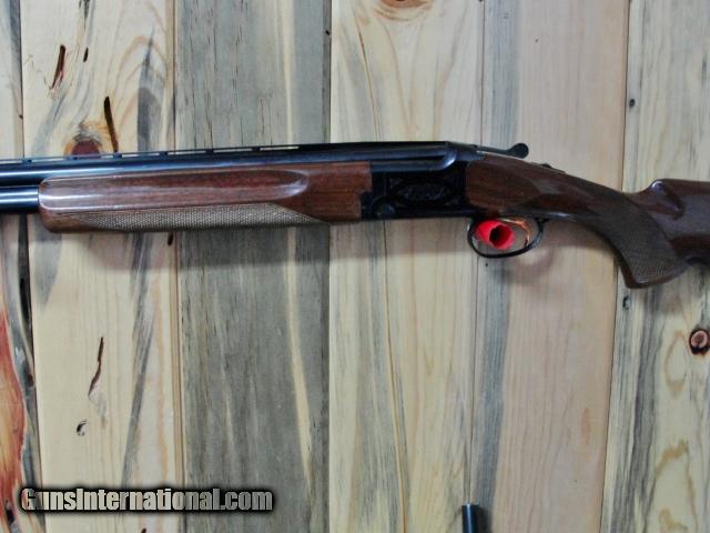 Description: Browning Citori HUNTER MODEL 20 gauge over under. 28" invector choked barrels, 3" chamber. Comes with imp/cyl, mod, and improved modified chokes. Wood has a couple of dings, metal is good overall condition, but has a couple of rust spots on front of barrel, mechanically excellent. Top lever is well right of center. SOLD |