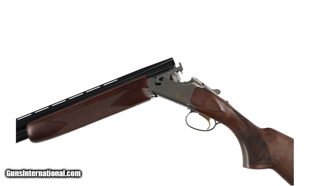 Description: Reliable over and under shotgun with gloss finish metalwork and gold enhancement on receiver. Satin finish Grade I American walnut stock with Inflex recoil pad, silver bead front sight, three flush choke tubes included. Manufactured in: Japan Hand: Right Hand Action Finish: Coin Barrel Length: 28 Inches Barrel Condition: New Stock Finish: Original Stock Condition: New Type of Butt: Factory Pad Thickness: 1/2" Grip: Pistol Forend: Checkered Cast Amount: 1/8" Extra Barrels: No. SOLD Manufacturer: Browning Model: Hunter Chambers: 3 Inches Ejectors: Yes Condition: New Metal Condition: New Action: Boxlock Triggers: Single Gauge Info: 20 Gauge Stock Comb: 1 5/8 Stock Heel: 2 3/8 Stock Cast: Off Fore End: Checkered Butt Pad: 1/2 LOP: 14 1/4 Rib: Ventilated Chokes: 3 Factory Chokes Extras: No. Case: Factory Box |
