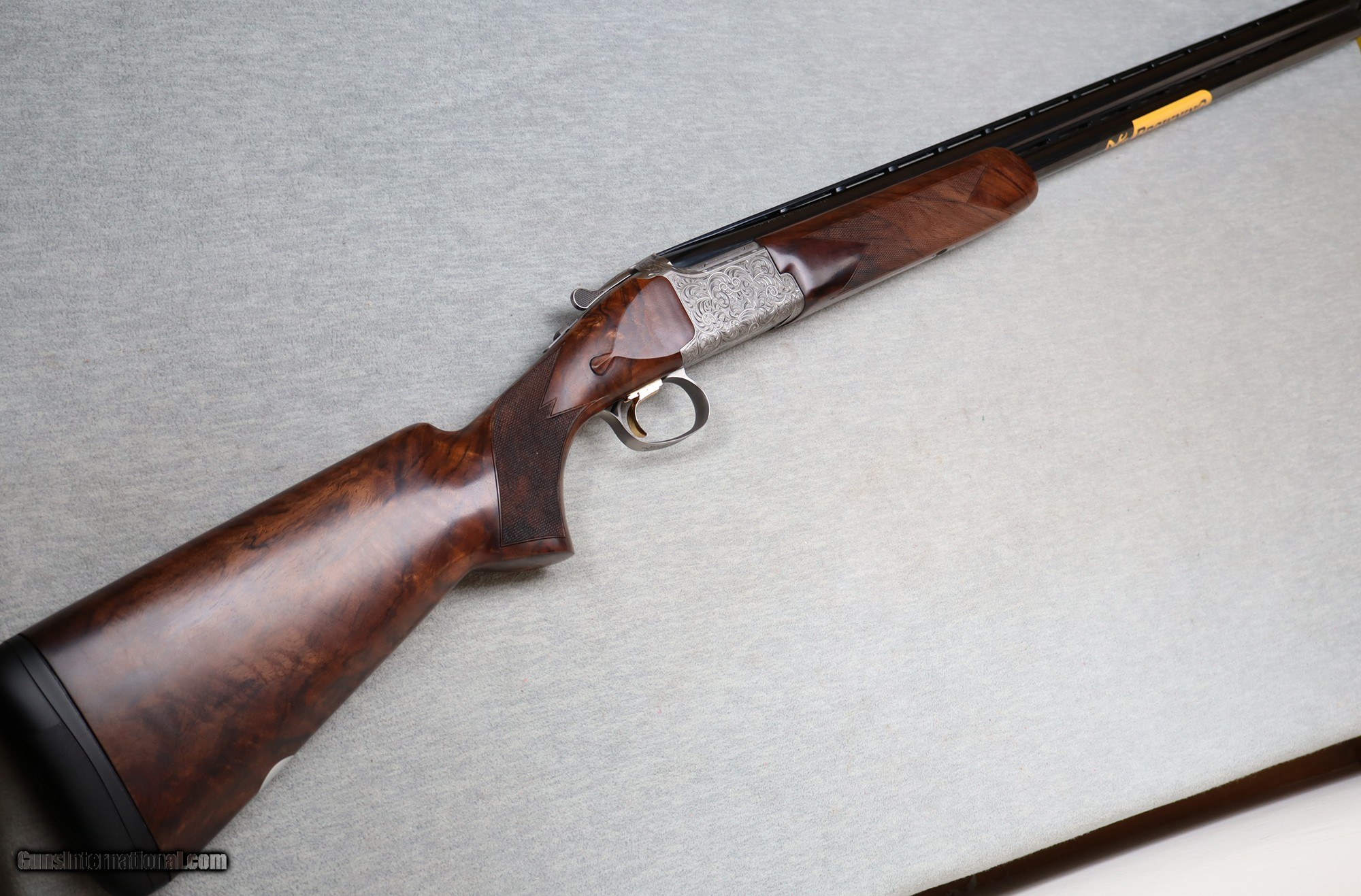 Description: The Laredo Sporting is a limited edition, high grade over and under shotgun built for sporting clays, skeet, and upland bird hunting. Beautifully built with time-honored technology and techniques, the limited edition Citori Laredo Sporting is an over and under shotgun worthy of high praise and high scores on the range. This exclusive offering is an exquisite example of the legendary Citori. As the name Laredo implies, the receiver is extensively decorated with a western motif. The intricate laser-engraving is hand retouched to add depth and contrast. Silver enhancements further highlight this one-of-a-kind design. Additional engraving covers the trigger guard and forearm lever. The top lever is also engraved and features a lucky horseshoe surrounded by a lariat hoop. At each end of the receiver is finely finished and expertly fitted Grade IV Turkish walnut. This beautiful wood is protected by a premium, proprietary gloss oil finish that accentuates the strikingly contrasting wood grain. Fine-line checkering is added to the stock and forearm. A right-hand palm swell and nameplate inlay are also present on the stock. A comfortable Inflex II recoil pad takes the sting of felt recoil. The rest of the Laredo is all Citori, with its roots readily traceable back to John M. Browning's original Superposed over and under shotgun. Present is the rugged and long-lasting full-width hinge pin and tapered locking lug design that keeps the action tight. The finish of the steel receiver is a durable silver nitride that looks great and resists corrosion. Browning technology also goes into the high-quality barrels with the addition of Total Barrel Dynamics. This three-pronged approach combines Vector Pro lengthened forcing cones, back-boring, and the Invector-Plus choke tube system to produce denser, more predictable shot patterns from full to skeet. This example is factory new in box. 12 Gauge Chambers: 3" Chrome Plated Chamber Metal Condition: Polished blue steel barrel; Silver Nitride Steel receiver; Excellent condition Wood Condition: Grade IV Gloss Oil Turkish Walnut; Excellent condition Bore Condition: "as new, bright Barrels: 32" ribbed barrels with ejectors Triggers: "Gold plated alloy, single trigger Stock Dimensions: 14 3/4" LOP; 1 1/2" DAC; 1 1/4" DAH; Turkish Walnut Fore End: checkered wood Cut 20 LPI; Turkish Walnut Butt Pad: "Inflex 2, Large Weight: 7 lbs. 12 oz. Sights: Front sight is HiViz Pro-Comp Chokes: "Invector-Plus Midas; Full, Improved Modified, Modified, Improved Cylinder, Skeet Item Location: La Vista, NE Price: $8,149.99 Contact Seller |