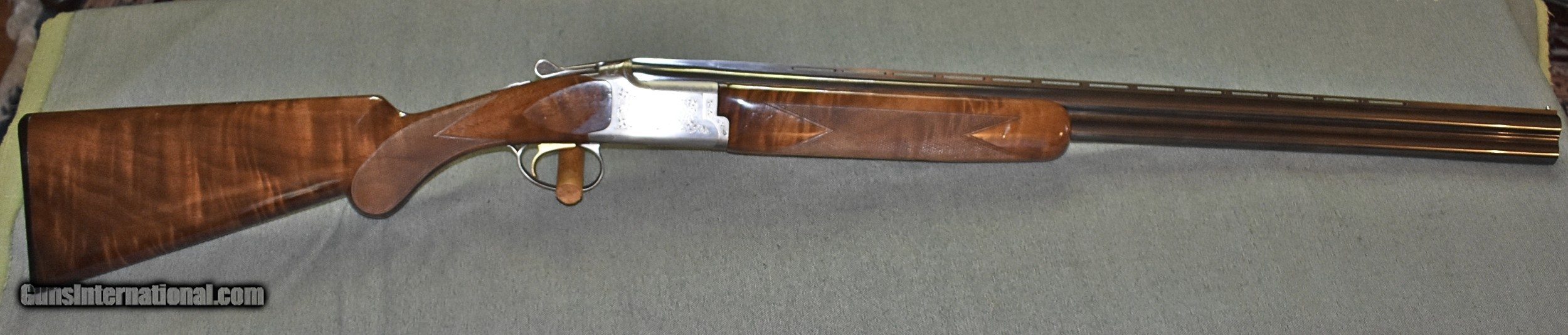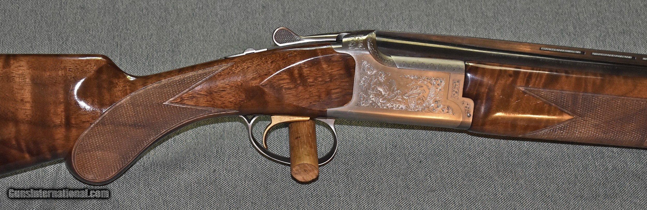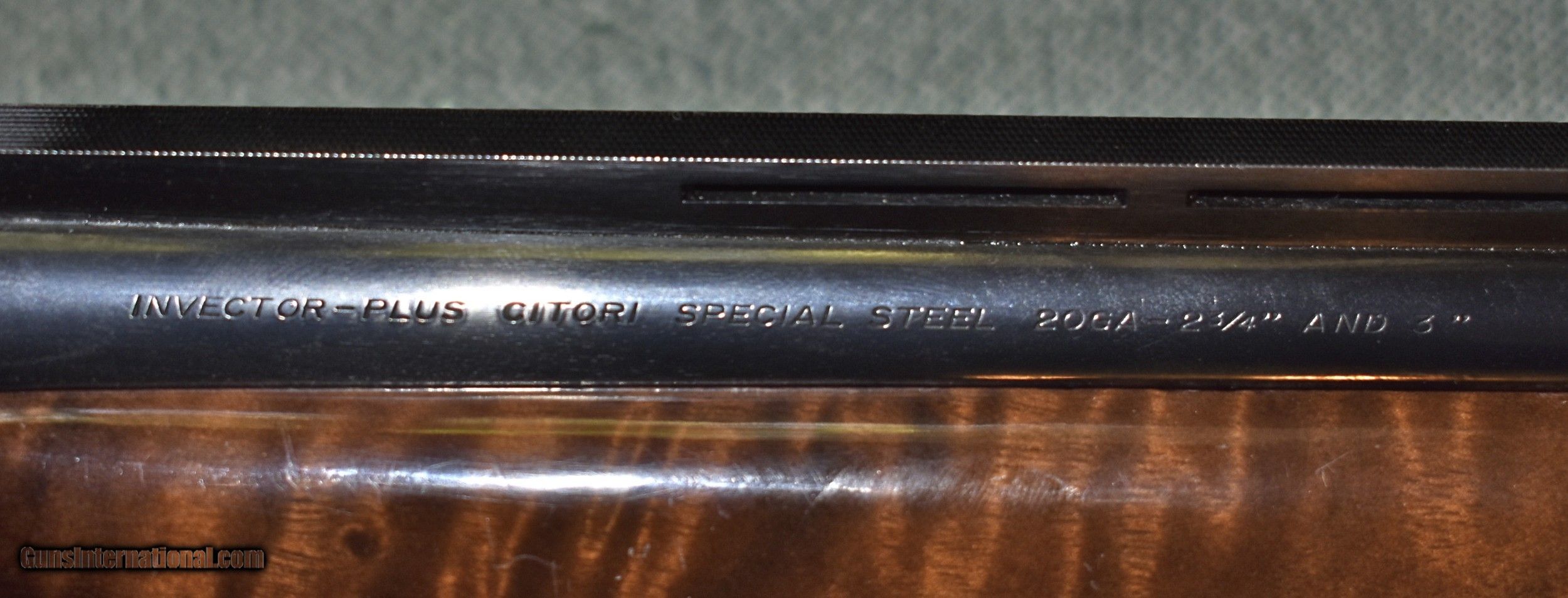 Description: Browning 20 gauge grade III lightening. Built in 1995,this gun has 28" vent rib barrel with invector plus chokes. The gun is in excellent original condition retaining 98% of the original blue and wood finish. The stock and forend are highly figured and the stock retains the original buttplate. This gun has been fired very little and remains tight and on face. A great gun for doves,pheasants, or just fun clays. The coin finished receiver is game scene engraved. SOLD Shotgun Gauge: 20 Gauge Manufacturer: Browning (Japan) Model: Citori Grade III Serial Number: 36017NV863 Barrel Length: 28 Chambers: 23/4" & 3 Ejectors: yes Condition: excellent Metal Condition: excellent Wood Condition: excellent Bore Condition: mint Barrel Type: Browning Special Steel Action: over under Triggers: single selective Stock Dimensions: 141/8"x11/2"x21/2 Butt Pad: factory buttplate Rib: ventilated Manufacture Date: 1995 Chokes: Invector Plus Engraving: grade III game scene |