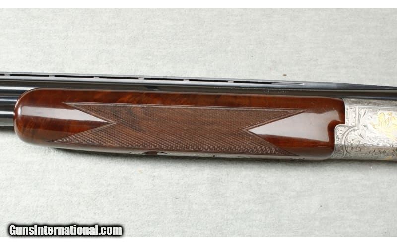 Description: Browning Lightning Grade VI shotgun in 20 Gauge. This Over and Under shotgun has a single trigger with a rear tang selector switch. It has 28" barrels with 3" chambers and a ventilated rib. It has removable chokes. It has fine scroll engraving on both sides and bottom of the frame. It has a quality high gloss walnut round knob stock with a 14 1/4" LOP and a Browning plastic pad. This is a Japanese manufactured shotgun made in 1992. Includes a Browning case. 20 Gauge SOLD Chambers: 3 Inches Metal Condition: Excellent Wood Condition: Excellent Bore Condition: Bright Barrels: 28 INCHES Triggers: Factory gold Stock Dimensions: 14 1/4 Inches Fore End: Checkered walnut Butt Pad: Browing pad Sights: Silver bead on ventilated rib Chokes: Removable chokes Item Location: La Vista, NE |