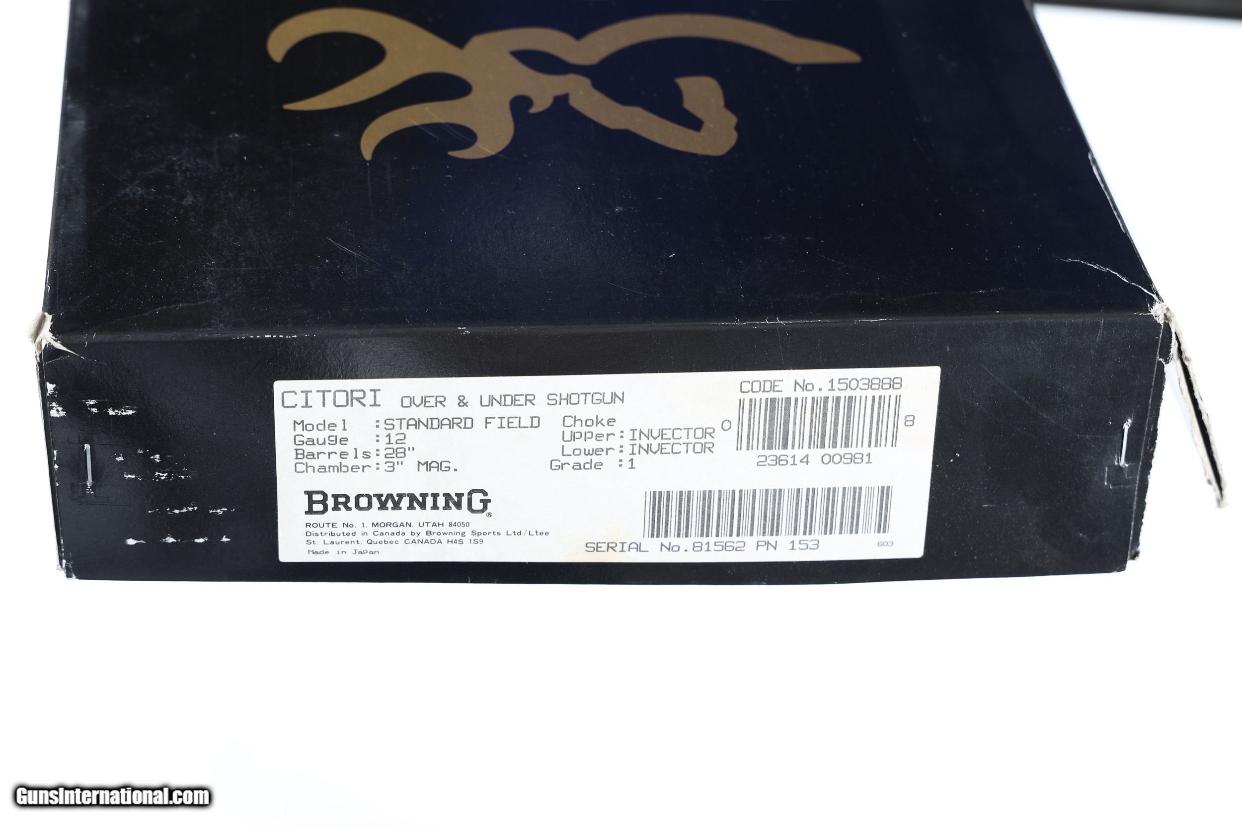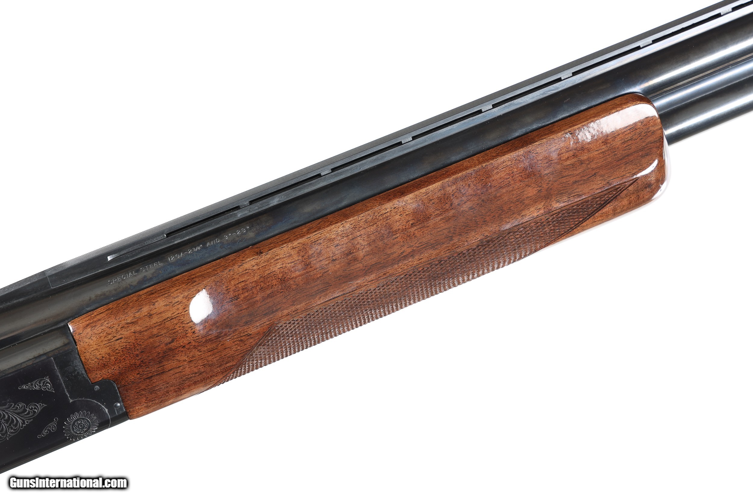 Description: Excellent plus overall condition, screw in chokes, LOP 14 1/4" with ejectors. Action ultra tight, possibly unfired. With factory box numbered to gun. Made in Japan. Mfd 1989. Free Shipping, No Credit Card Fees! SOLD Shotgun Gauge: 12 Gauge Manufacturer: Browning Model: Citori Serial Number: 81562PN153 Barrel Length: 28 Ejectors: Yes Condition: Excellent plus overall condition. LOP: 14 1/4 Manufacture Date: 1989 Chokes: Screw in chokes. |