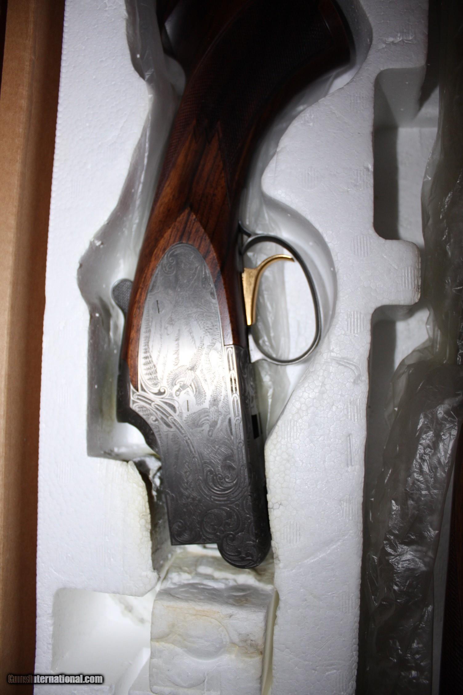 Description: Browning Citori Privilege Superposed 12 Gauge Ejector, 28 inch Barrels, 3 inch Chambers, Single Selective Gold Washed Trigger. Side Plate Fully Engraved Game Scene, Right Side a Pair of Woodcocks and the Left Side English Pointer and Two Ringneck Pheasants. Beautiful black streaked walnut, blank oval in the stock and rubber recoil pad with a LOP of 14 1/4". The gun originally came with a Full and Modified set of invector chokes. I ordered three additional choke tubes from Carlson that include Skeet, Improved Cylinder and Improved Modified. I have owned the gun for 4 or 5 years and have never shot it. The gun is essentially new with the original Browning box with the owners manual. This model is not encountered very often and was discontinued by Browning some years ago. SOLD Manufacturer: Browning Model: Privilege Serial Number: 07838MZ131 |