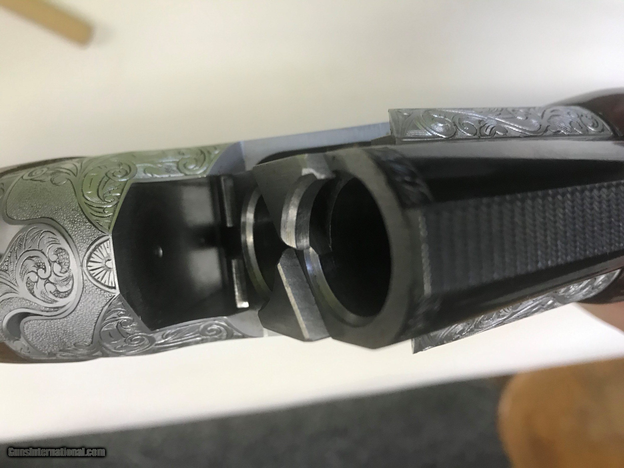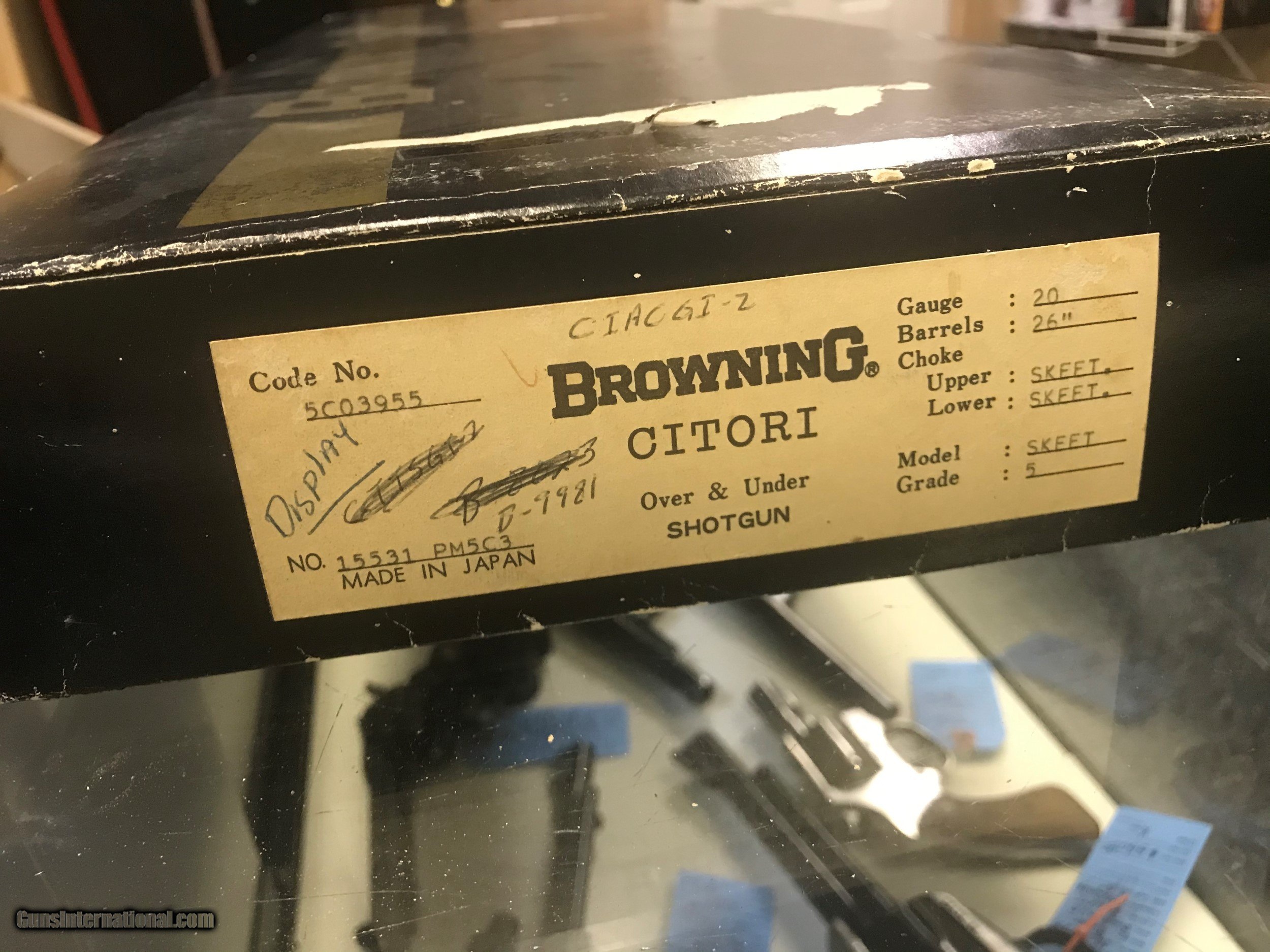 Description: Amazing 1980 Browning Citori grade 5 20 Ga.skeet model in original box S/N ****PM5C3. Cannot say its never been fired but does not appear that it has ever been fired. Only flaws that I can find are some very very light scratches and one chip all located near the muzzle end of the forearm, and one very very light mark on the left side of the stock right above the trigger all are in the clear coat only and can be buffed to perfection. Ship to lower 48 only, shipping $80.00 including insurance, no California sales, Arkansas residence pay 7.75% tax, check your local and state laws prior to purchasing. Gun will only be shipped to verified FFL, buyer to provide FFL for receipt and transfer of firearm. SOLD Manufacturer: Browning Model: Citori Grade 5 Skeet Serial Number: *****PM5C3 Bore: 100% Chambers: 100% Ejectors: 100% Condition: 98 + Metal Condition: 100% Wood Condition: 99% Bore Condition: 100% Barrels: 26 Barrel Type: O/U Action: Break open Triggers: Single Gauge Info: 20 Ga. Stock: Flat knob pistol grip Stock Comb: 1 1/4 Stock Heel: 1 3/4 Stock Cast: Right hand Fore End: Skeet competition Butt Pad: original Browning LOP: 14 3/8 Rib: 5/16 Finish: High Gloss Weight: 7.5# Sights: Front and Center white Manufacture Date: 1980 Chokes: Skeet/Skeet fixed Engraving: Highly engraved factory Extras: Original box and instruction manual |