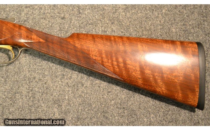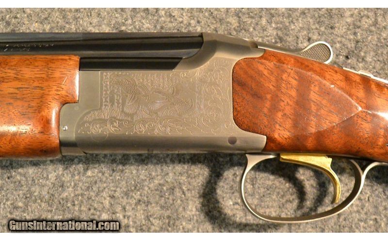 Description: Browning and Citori are synonymous with excellence. This Browning Citori Special is a limited edition 75th Anniversary of the Kittery Trading Post. Adorned with depictions of upland game birds on each side of the receiver and picturesque wood grain, a gorgeous example of a field ready shotgun. 20 Gauge SOLD Chambers: 2 Metal Condition: "Very Good; lightly scratched floorplate, worn finish on trigger Wood Condition: Excellent; very shallow indentations on stock Bore Condition: Excellent Barrels: 28" O/U Triggers: Single Select Stock Dimensions: 14.5" LOP Fore End: Textured Wood Butt Pad: Rubber by Pachmayr Weight: 6.5 lbs Sights: Front Bead Chokes: Modified - Over; Improved Cylinder - Under Item Location: Thornton, CO |