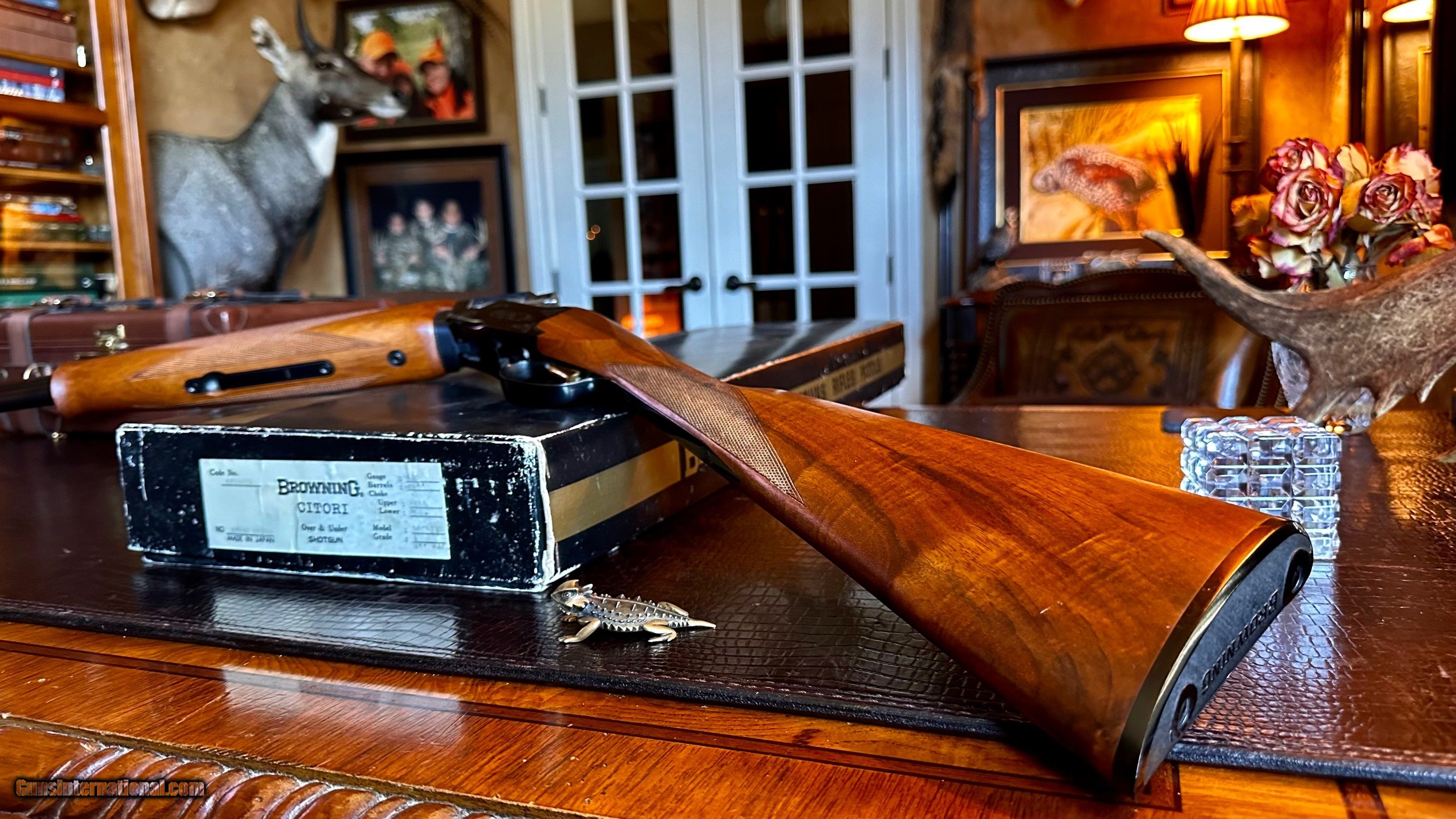 Description: Browning Citori Sporter Superlight 410ga - 3” Shells - 26” - NEAR NEW IN BOX - Straight Grip - Fast Action Shotgun for Quail and Grouse condition: wood needs some timberluxe - comes with a free bottle minor handling marks on wood that will disappear with timberluxe application No slide marks on block or inside frame from assembly and disassembly... RARE
