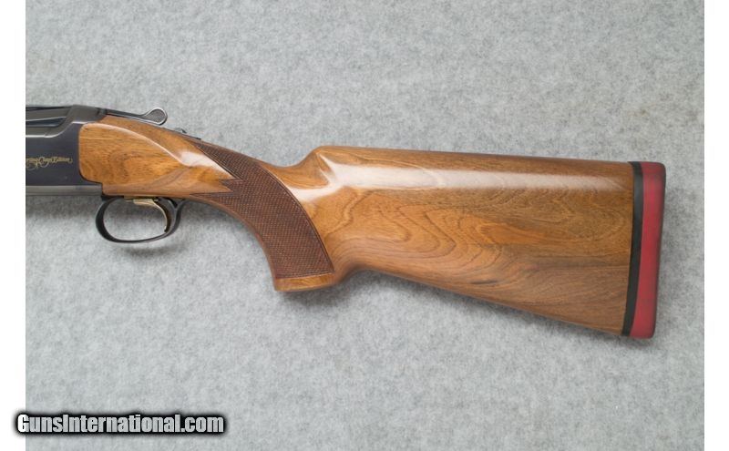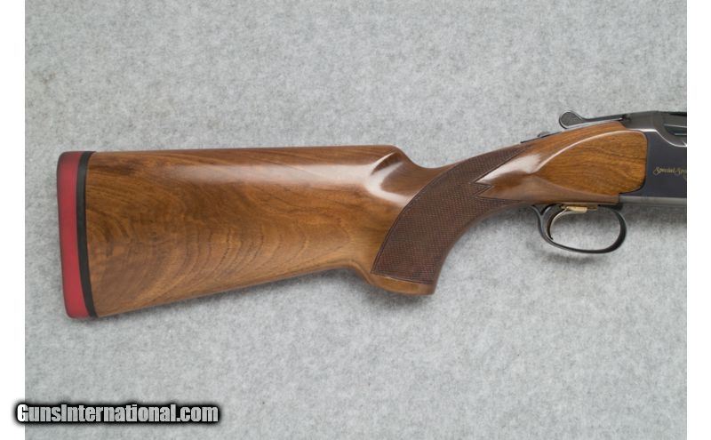 Description: Used. "Special Sporting Clays Edition". SOLD Caliber Info: 12 Ga. Chambers: 2 3/4 Metal Condition: Excellent Wood Condition: Very good; appears re-finished Bore Condition: Clean and bright Barrels: 30 Triggers: Checkered, gold plated Stock: Checkered pistol grip walnut Stock Dimensions: LOP - 13 7/8 Fore End: Checkered walnut Butt Pad: Red rubber pad Weight: 8 lbs. 3 oz. Sights: White fiber-optic front; white mid bead Chokes: Choke tubes Extras: (4) choke tubes. Item Location: Sun Prairie, WI |