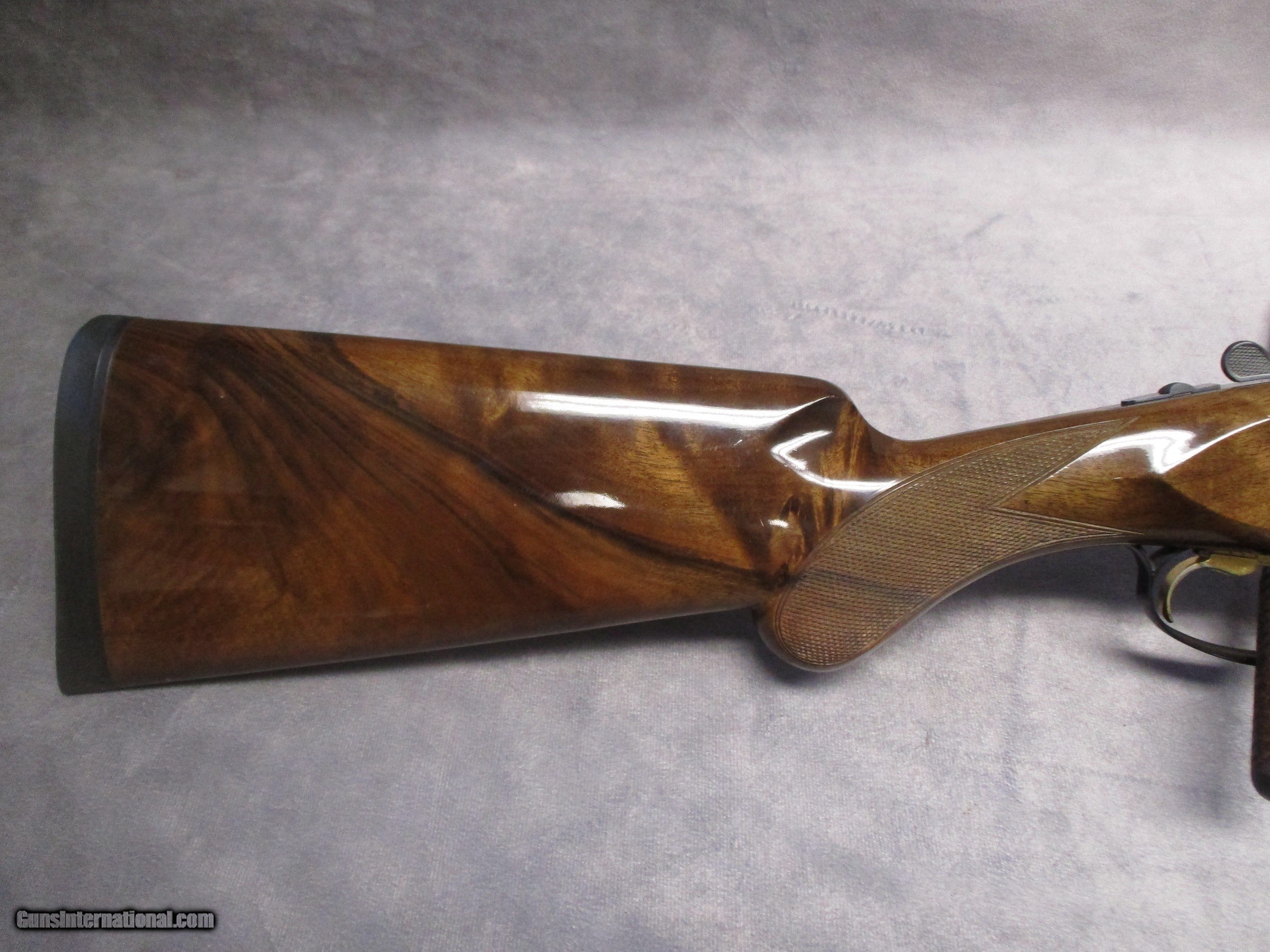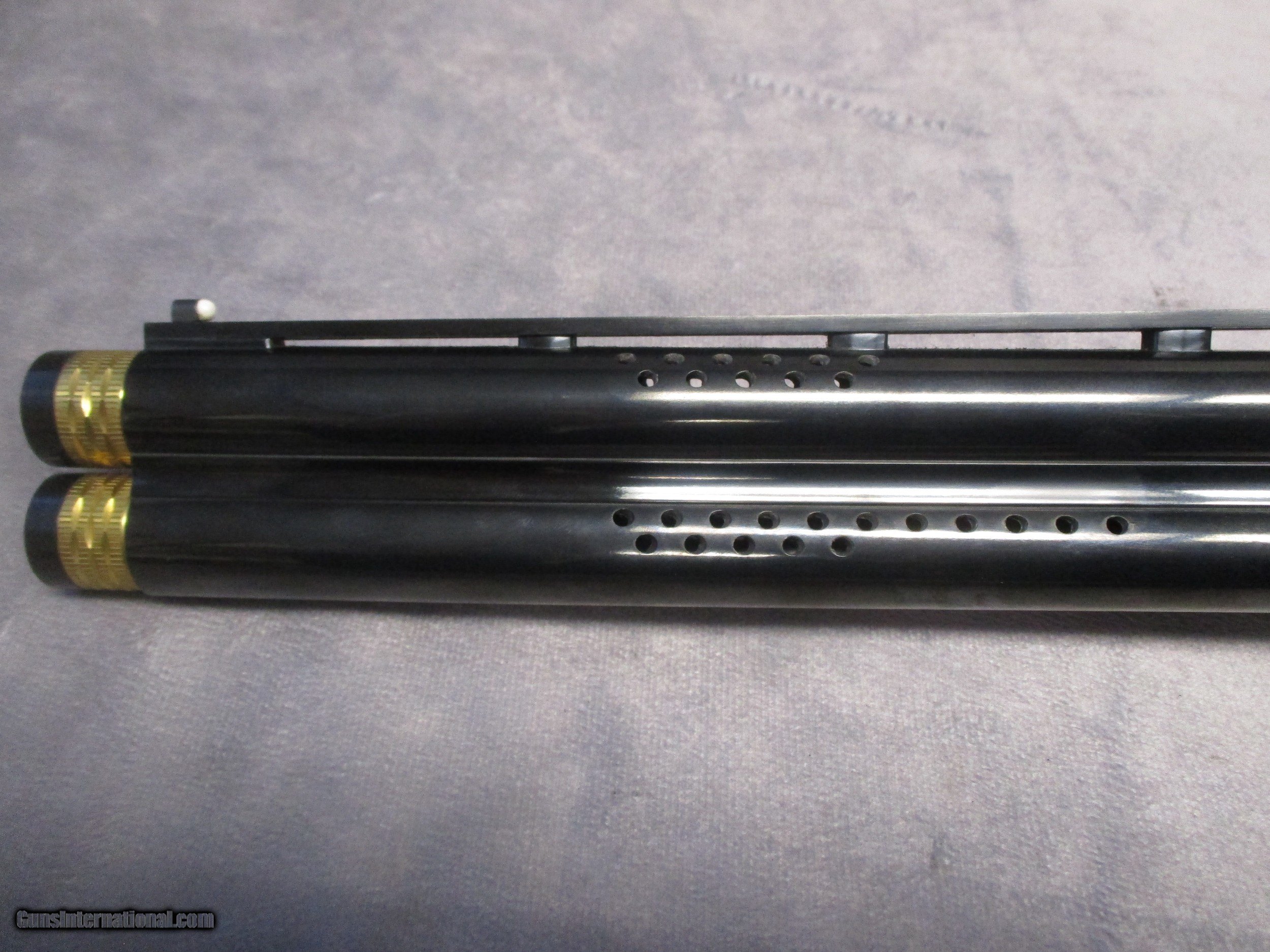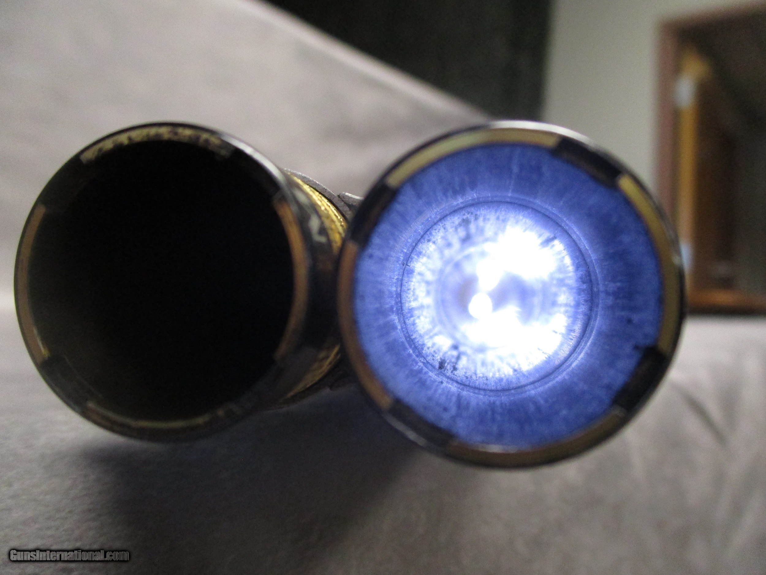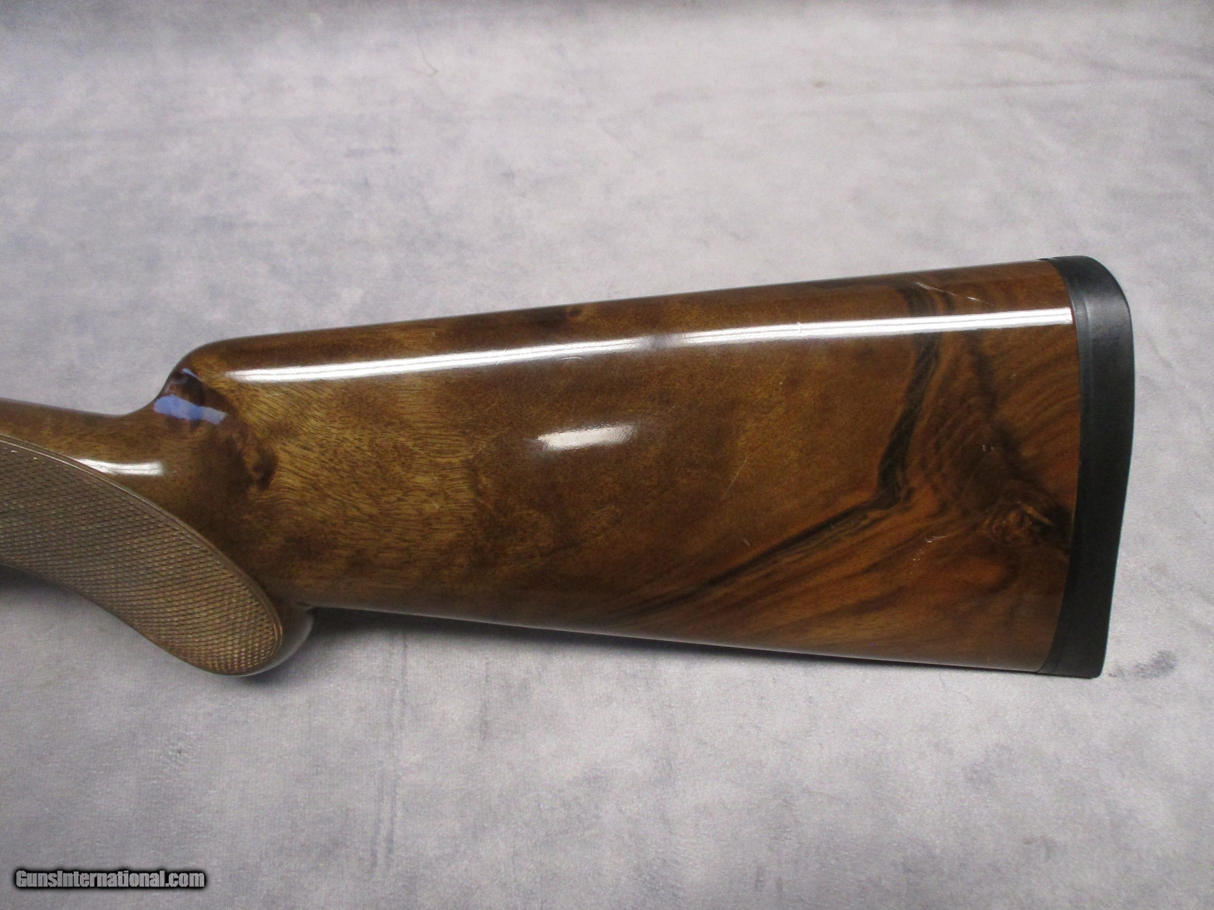 Description: According to the serial number, this example was built in 1992. The “W53” in the serial number, according to the Browning , indicates this is a “Lightning” model; however it does not say this anywhere on the Citori. It features a walnut fore end and pistol grip stock with a high gloss finish. The barrels are 28 inches long and feature a ventilated, high post rib. Both are ported. The receiver features gold line accents. Unlike most high-grade shotguns, this appears to have been used for its intended purpose to a limited extent rather than spending most of its time in a safe. The walnut fore end exhibits most of the wear. One the left side a chip of wood broke off and then was glued back on. The repair is still visible. One the right side there are two gouges in the wood near the top, and a small dent on the lower side. The latter could probably be steamed out. The stock has some scratches on the left side but is good shape on the right. The Citori retains virtually all of the original bluing. The only noticeable spot is underneath the safety. There is light rust present on the fore end takedown latch. The trigger has lost some of the gold coloring to it. There are two spare gold triggers that come with the shotgun. The bore is in extremely good condition with no rust or pitting, though the chokes exhibit some fouling. The Pigeon Grade uses Invector Plus chokes and is currently equipped with an extended Modified choke in the over barrel and an extended Improved Modified choke in the under-barrel. There are six spare choke tubes in the case, all of which are standard length. These include 3 Full Chokes, 2 Skeets, and 1 Modified. The case is a little worn but is in good shape. SOLD Shotgun Gauge: 12 Gauge Manufacturer: Browning Arms Co. Model: Citori Sporting Clays Pigeon Grade Serial Number: 32648NYW53 Bore: Smoothbore Chambers: 3.0 and 2.75 inches (76 and 70mm) Ejectors: Auto-ejection Condition: Good to Excellent Barrels: O/U Barrel Type: Ported Action: Box-lock Triggers: SST Stock: Walnut, pistol grip Stock Comb: 1.5 inches (38 mm) Stock Heel: 2.0 inches (51 mm) Fore End: Walnut Butt Pad: Rubber pad LOP: 14.25 inches (362mm) Rib: Vent, high post, 0.375 inch (9.5 mm) wide Finish: Blued Sights: White, round bead, mid and front Chokes: Invector-Plus type, O: Modified Extended, U: Improved Modified Extended, spares are standard length and include 3 Full Chokes, 1 Mod., and 2 Skeet Engraving: Gold line receiver accents Extras: See description Case: Browning hard case |