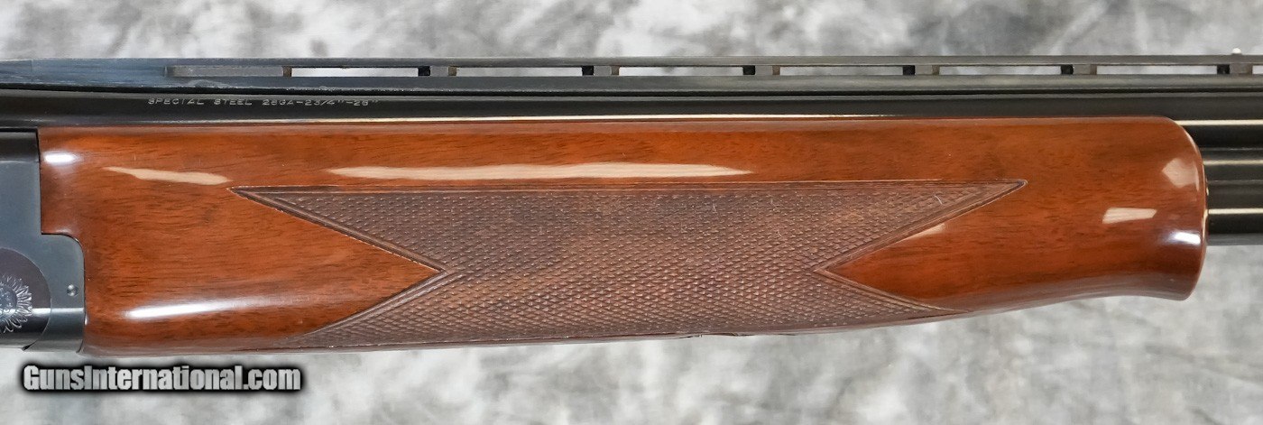Description: Pre-Owned Browning Citori Superlight Field 28GA with 26" fixed choke (IC/M) barrels, ventilated parallel game rib. Blued action with simple scroll engraving, very minor bluing wear on action/trigger guard and very minor wear near muzzle. Factory English straight-hand stock to factory butt plate and tulip forearm, overall very good condition with only very minor scuffs/scratches. Includes factory box. SOLD Shotgun Gauge: 28 Gauge |