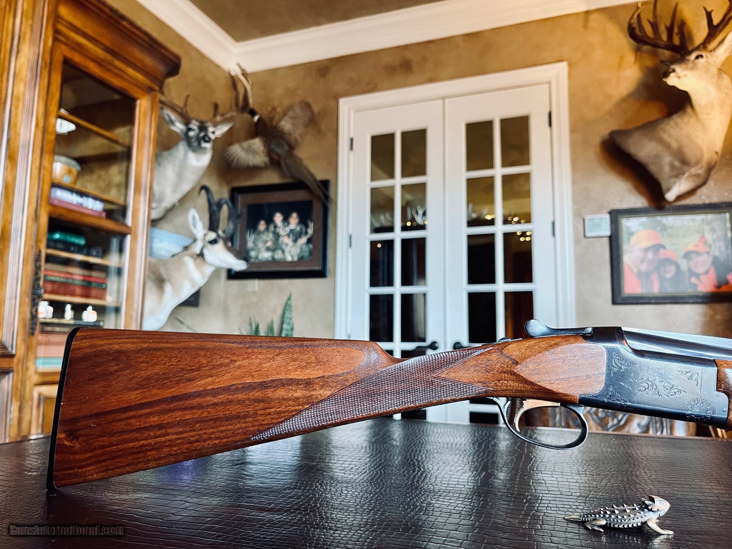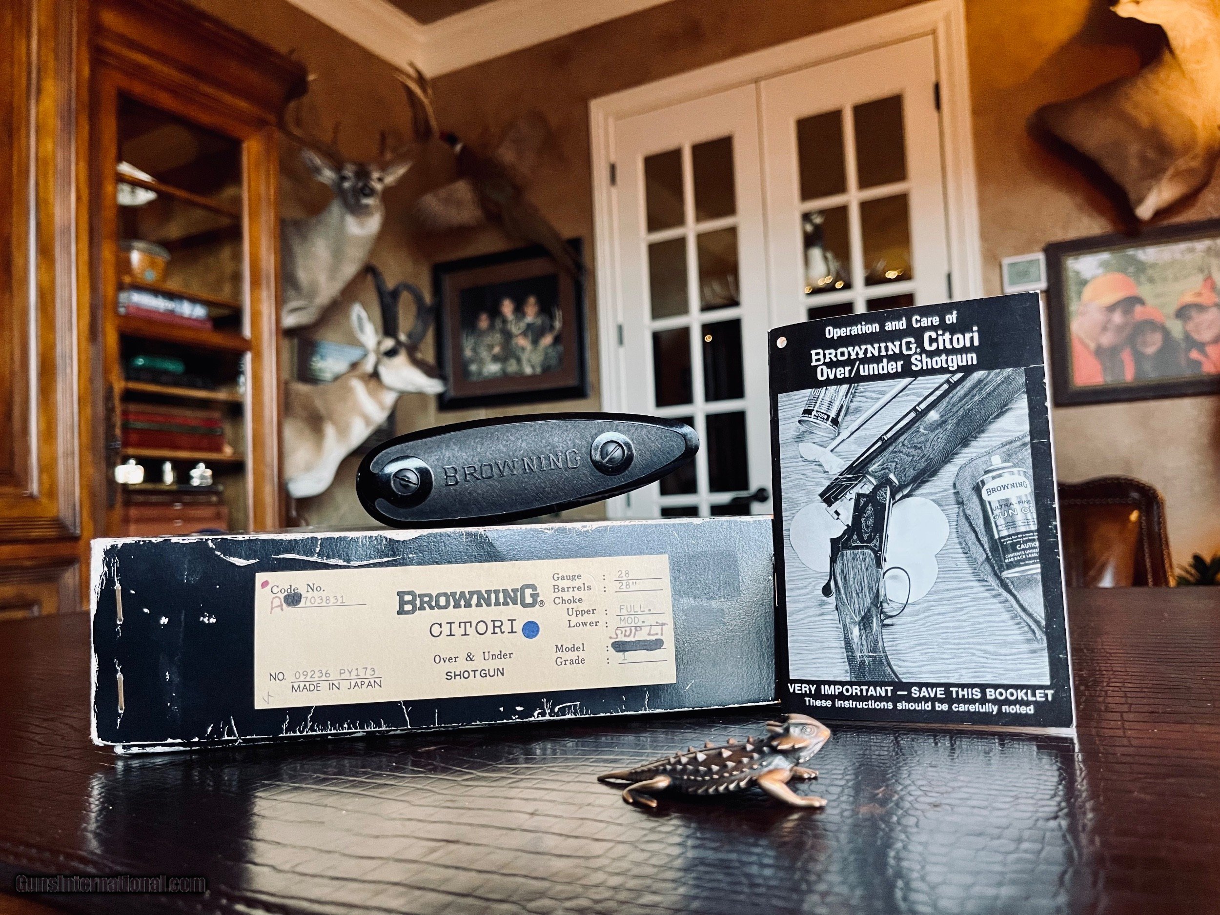 Description: Browning Citori Superlight 28ga - 28” Barrels - M/F - ca. 1982 - New In Box - Stiff Like Never Assembled - Cosmoline Still Present - TIGHT!! First things first - THIS IS A 28" Superlight... there were very few made in 28" and this is the first of which I've ever listed for sale - most superlight guns had 26.5" barrels - I put a coat of TimberLuxe on the wood because it sat in its box since 1982 - I also wrestled with the cosmoline a bit when assembling trying the action - it needs to be shot and then oiled again - then another coat of TimberLuxe and repeat - super tight action - there are products on the market that will remove the cosmoline without much adieu - love the 28" barrels, the MF chokes and the NIB condition. Facts: 1. 28" Superlight barrels are RARE 2. 1982 Shotguns NIB without flaw are RARE 3. This is one the the original waves of sub gauge Superlight guns to the market ********SCROLL DOWN FOR SPECS******** Quillen-Worfe Fine Gun Collection & Consignments *****Please read prior to making a purchase*****: