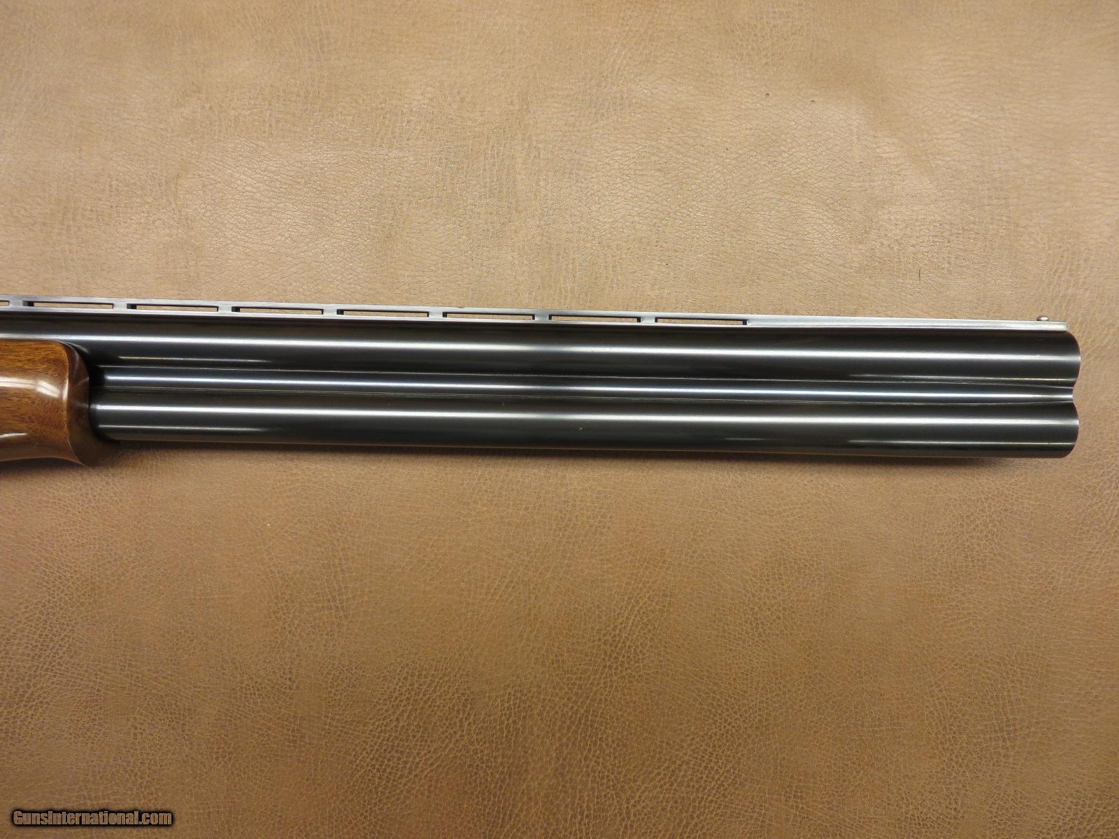 Description: 12 ga. 2 3/4 inch has 26 inch vent rib barrels with Invector choke tubes. Engraved receiver has gold single selective trigger and automatic ejectors. High gloss checkered walnut stock with original butt plate and schnabel forend. Blue and forend finish are 99%. The stock is 95% due to some light marks in the finish only on the left side. Comes with 3 choke tubes, wrench, and owners manual. SOLD |