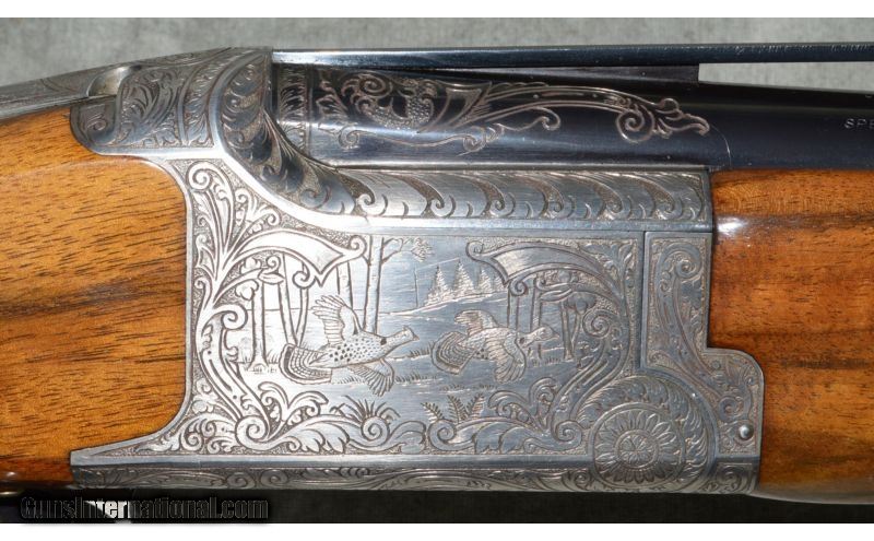 Description: A beautiful piece of gun art... Citori Trap with Monte Carlo stock, Adjustible comb and butt pad. Engraved with game scenes and scrollwork, and signed by R. W. WASHBURN ENGR SOLD Manufacturer: 1991 based upon the code NZ143 Caliber Info: 12 Gauge Chambers: 2 - 3/4 Inch Metal Condition: Excellent Wood Condition: Excellent Bore Condition: Bright and shiny Barrels: 30 Inch Triggers: Gold trigger Stock: Checkered round knob walnut with striking grain. Adjustable Monte Carlo comb. Stock Dimensions: 14 - 7/8 Inches LOP as shown. Fore End: Matching high grade walnut Butt Pad: Adjustable rubber plate Weight: 8 lb. - 13 oz. Sights: Ventilated trap rib with white and gold beads Chokes: Extended screw-in Briley chokes. Item Location: Rogers,, MN |