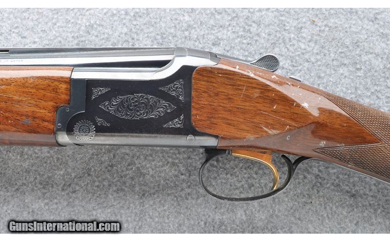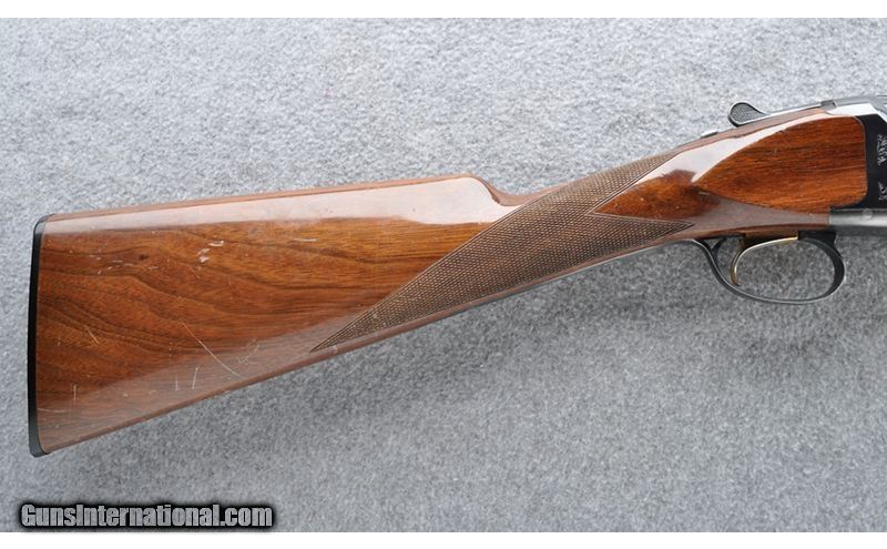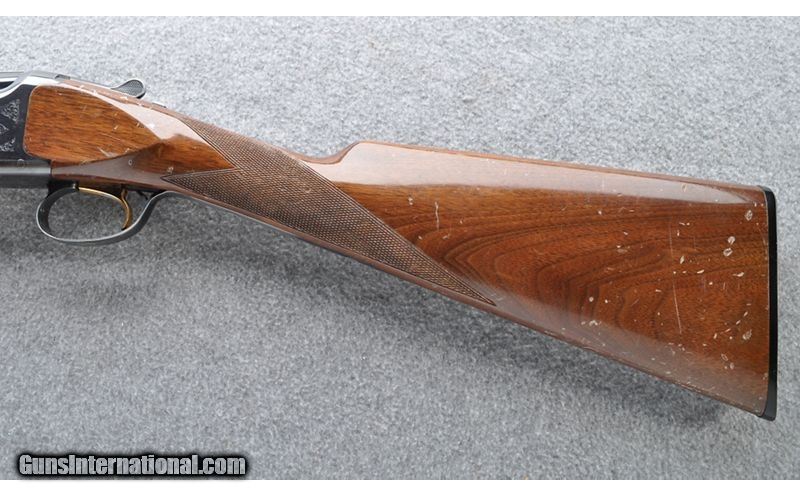 Description: The Browning Citori Upland Special presented here was made in 1986 and features an English straight grip buttstock and short barrels for close cover work. A quick to point and light to carry shotgun. 12 Gauge SOLD Chambers: 2 3/4" Only Metal Condition: "Good, showing years of carry wear at handling points, bottom of the receiver, tang, trigger guard and near the muzzle Wood Condition: "The stock shows a significant amount of dents, and scratches through the finish Bore Condition: Bright Barrels: 24" Vented rib with automatic ejectors Triggers: Single Selective at the top tang safety Stock Dimensions: 14" LOP Fore End: Checkered walnut with Schnabel tip and Deeley style release Butt Pad: Browning composite butt plate with small crack on left edge Weight: 6 Lbs. 12 Oz. Sights: Metallic bead front Chokes: "Invector chokes, Full, Modified, Improved Cylinder 2 Item Location: Grand Junction, CO |