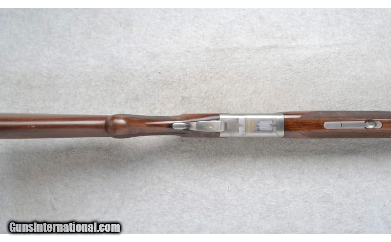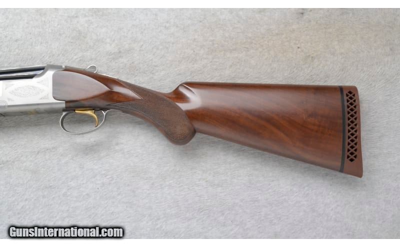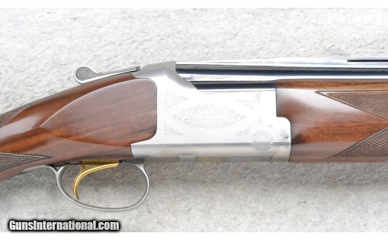 Description: This Browning Model Citori White Lightning is an over and under shotgun in 12 Ga. It has 28 inch barrels with ejectors and a top barrel ventilated rib. A metal bead front sight. With 3 inch chambers it has Invector-Plus Choke and comes with 2 choke tubes. It has a SST. The butt stock is a checkered grip walnut round knob pistol grip. The forearm is a checkered grip walnut. The receiver is lightly engraved. Made in Japan. 12 Gauge SOLD Chambers: 3 inch. Metal Condition: Very Good. A few very minor handling marks and a stain spot on the bottom of the receiver. Wood Condition: Very Good. Some light handling marks. Bore Condition: "Clean, bright and shiny. Barrels: 28 inch barrels with ejectors and a top barrel ventilated rib. Triggers: SST Stock Dimensions: LOP 14 1/8 inches. Fore End: Checkered grip walnut. Butt Pad: Browning brown rubber recoil pad. Weight: 8 Lb. 0 Oz. Sights: Metal front bead. Chokes: Invector-Plus Choke. Comes with a LM and LF choke tube. Item Location: Richfield, WI |
